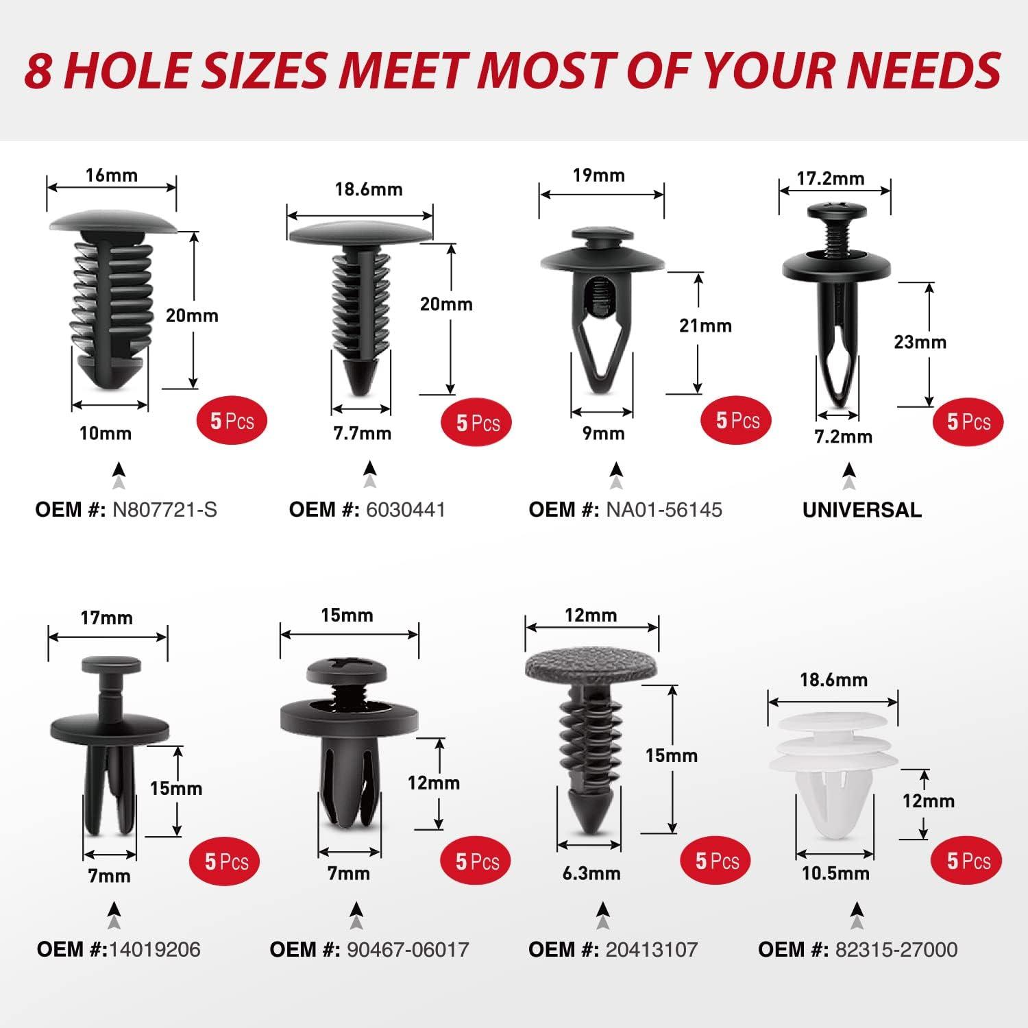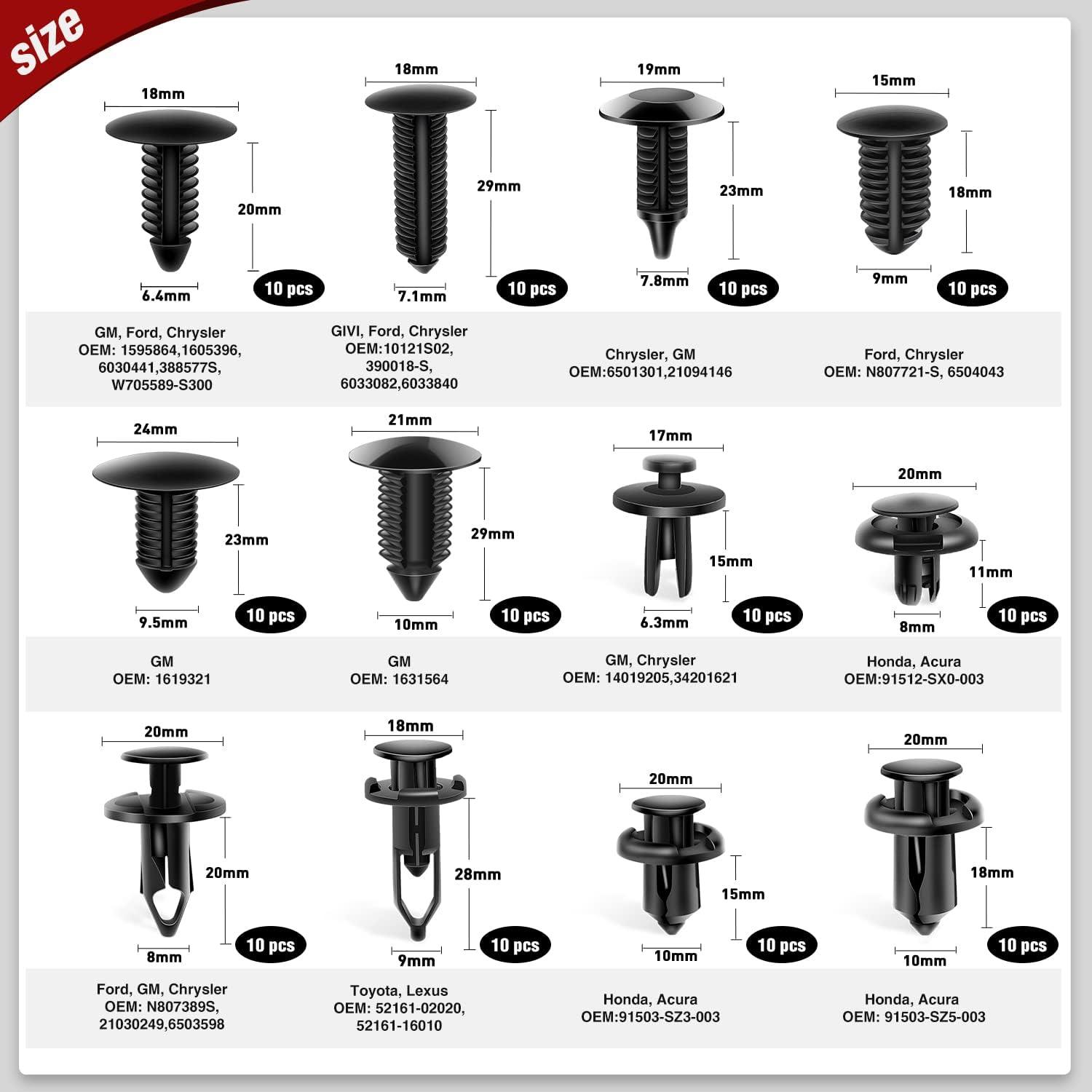 Nilight 240PCS Bumper Retainer Clips, Car Plastic Rivets Fasteners Remover Push Retainer Kit -Door Trim Panel Clips for Toyota GM Ford Honda Acura Chrysler,2 Years Warranty(400 Clips)