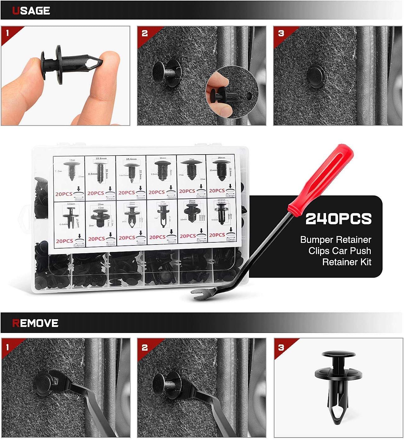 Nilight 240PCS Bumper Retainer Clips, Car Plastic Rivets Fasteners Remover Push Retainer Kit -Door Trim Panel Clips for Toyota GM Ford Honda Acura Chrysler,2 Years Warranty(148 Clips Tools)