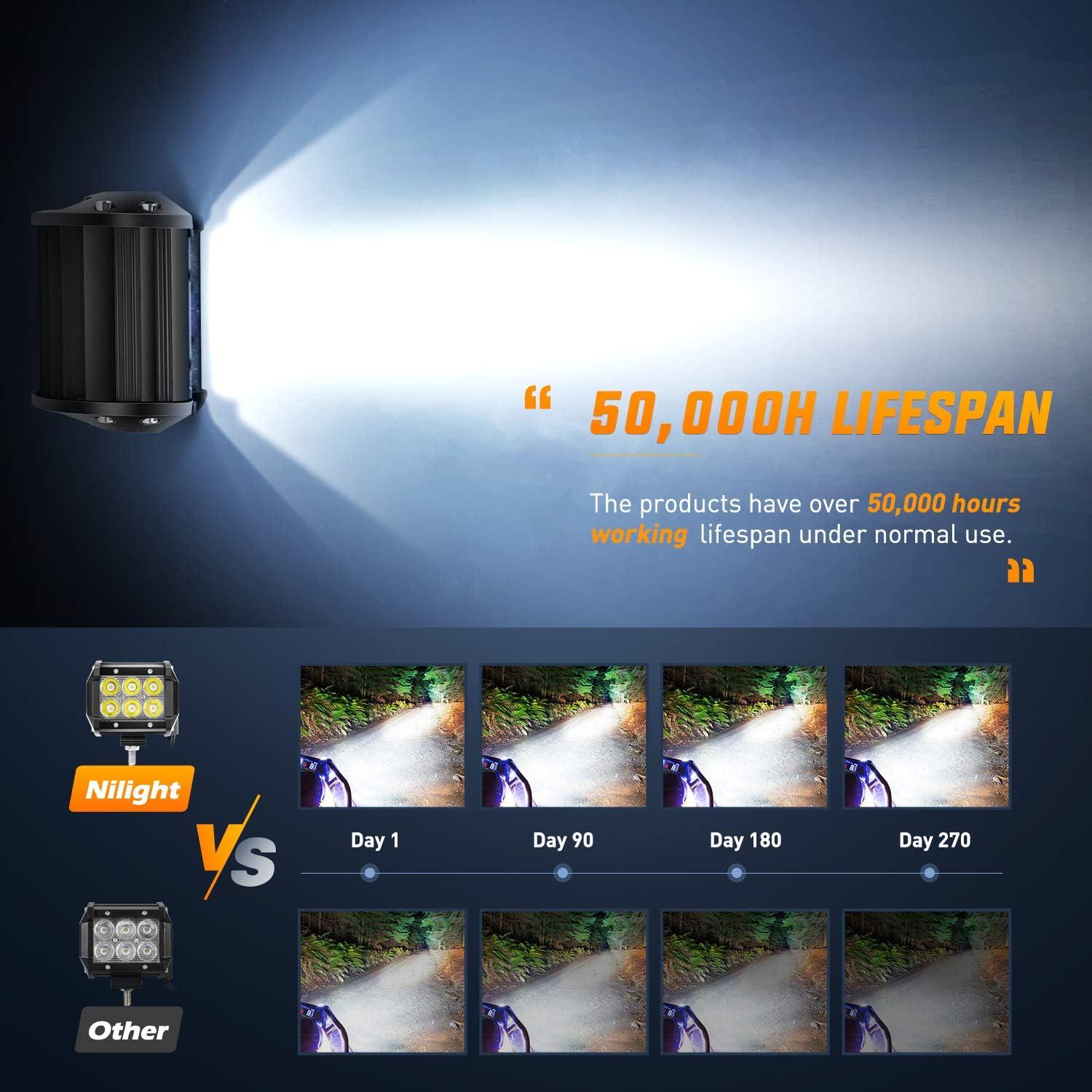 Nilight ZH009 LED Light Bar 2PCS 18W Spot Off Road Lights with 16AWG Wiring Harness Kit-2 Lead(Led Pods 4Pcs+Wiring Harness)