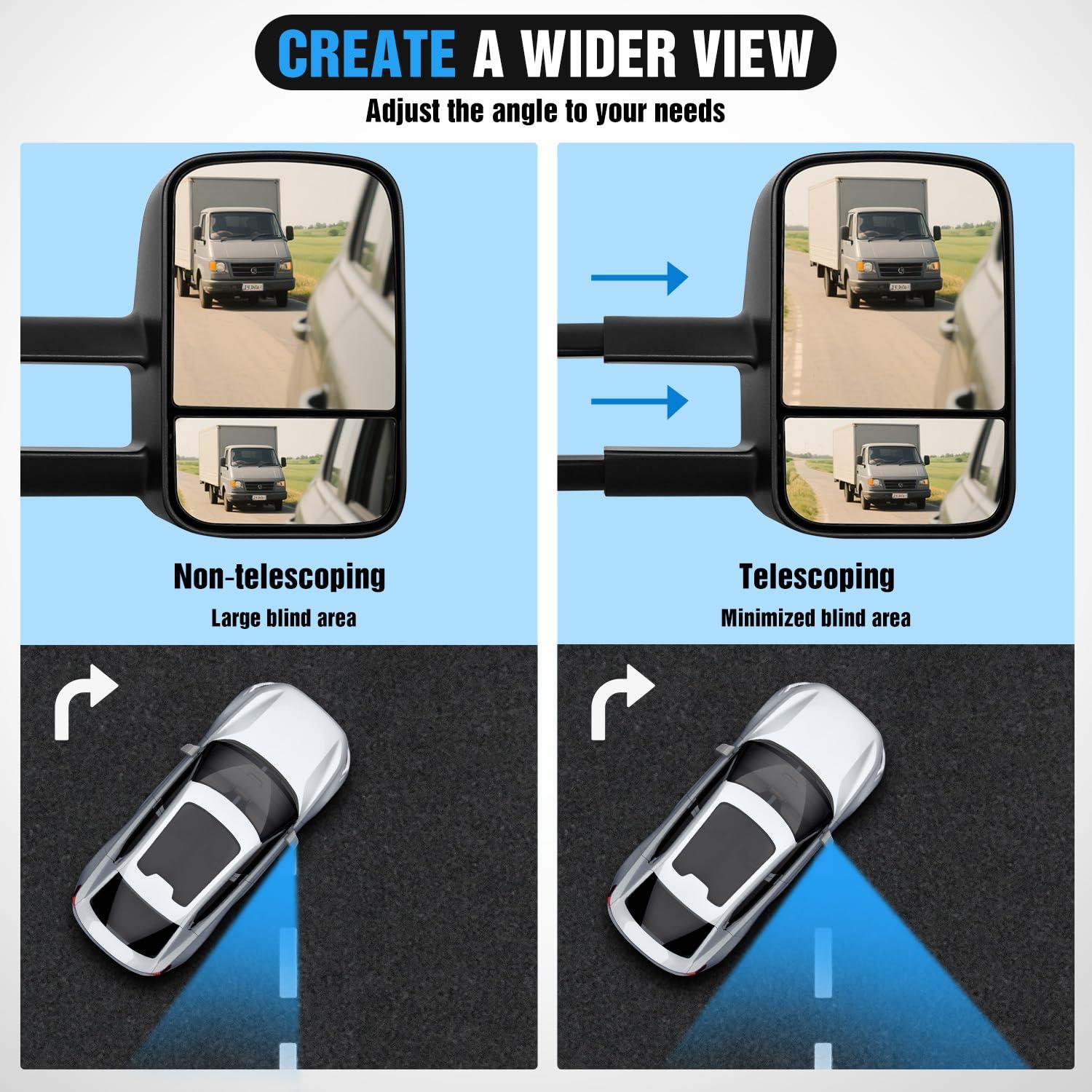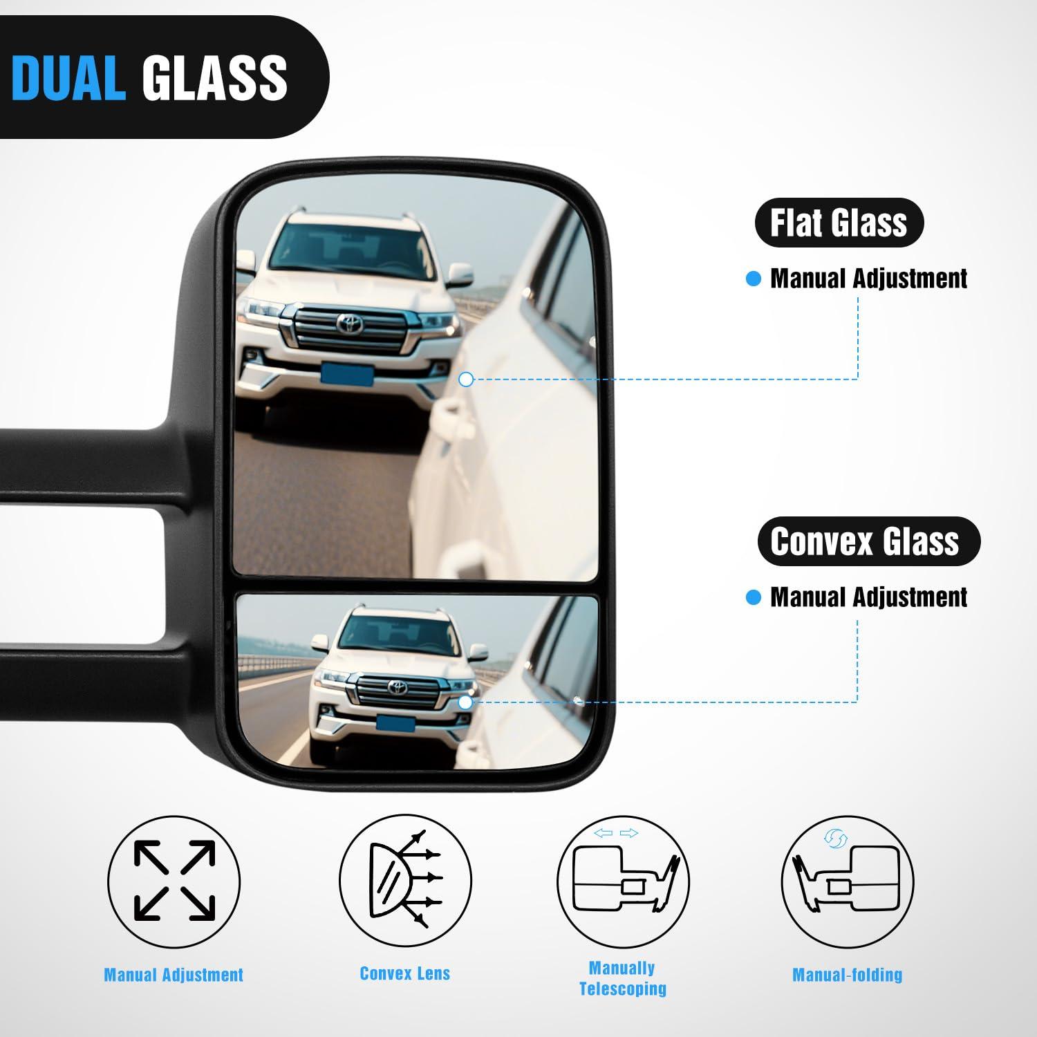 Nilight Towing Mirrors Manual Adjusted Flat Convex Glass Telescoping Folding Compatible With 1999-2002 Chevy Silverado GMC Sierra 1500 2500 3500 Suburban Tahoe Avalanche Yukon(1999-2002 Chevy/GMC)