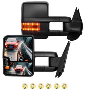 Nilight Towing Mirrors Manual Adjusted Flat Convex Glass Telescoping Folding Compatible With 1999-2002 Chevy Silverado GMC Sierra 1500 2500 3500 Suburban Tahoe Avalanche Yukon(2007-2014 Chevy/GMC w/Signals Puddle Light)