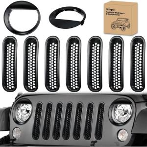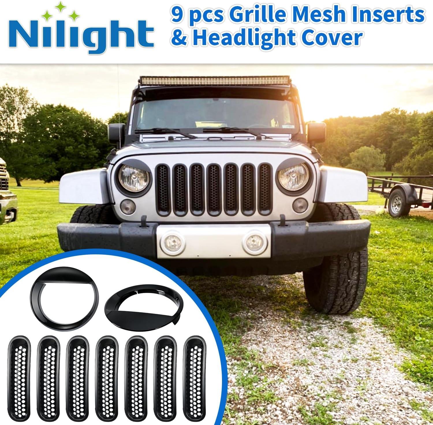 Nilight Grill Inserts fit for Jeep Wrangler Front Grille Mesh Inserts & Headlight Cover Set for JK JKU Unlimited Sports Sahara Freedom Rubicon 2007-2018 Clip-in Trim Exterior Accessories Black 9 Pcs