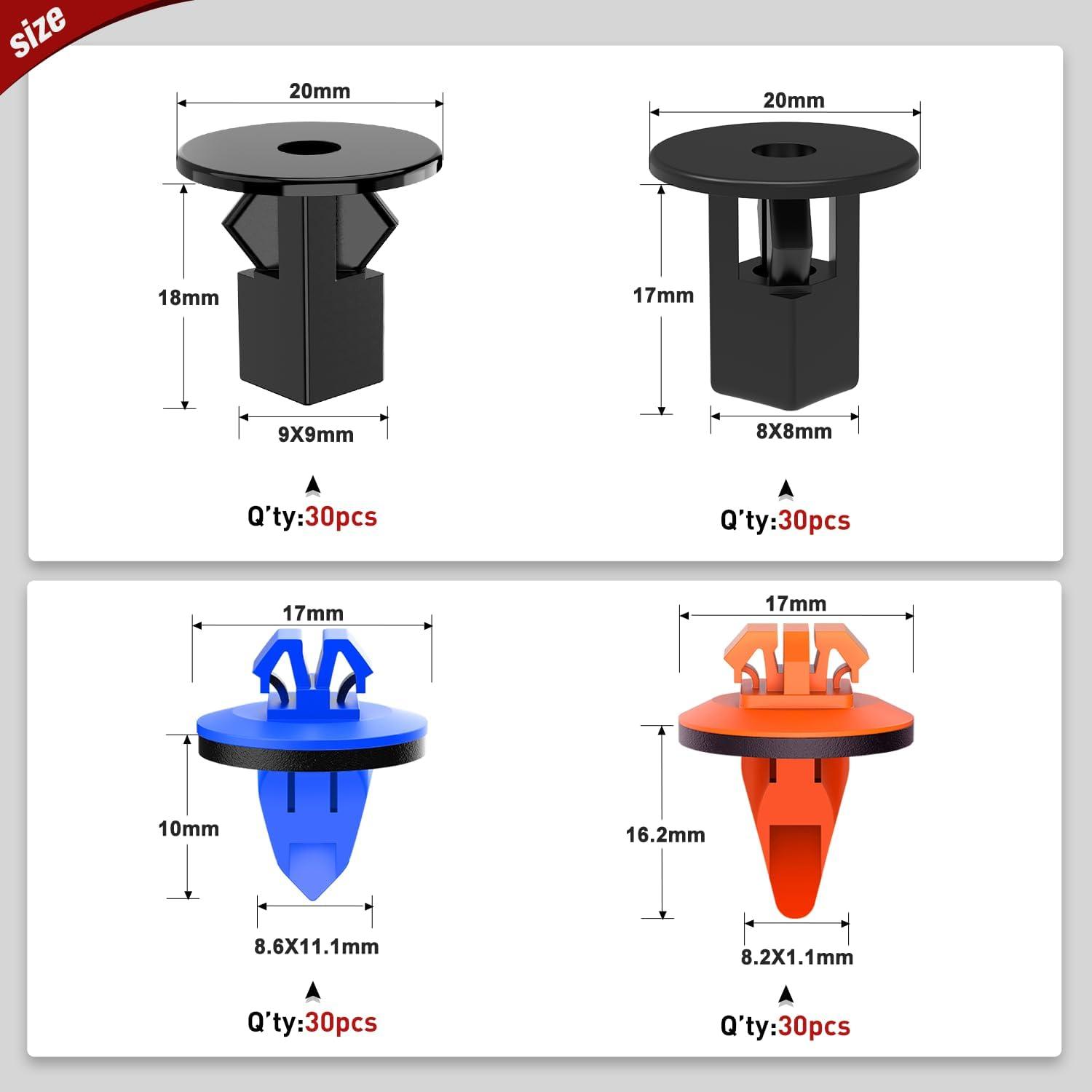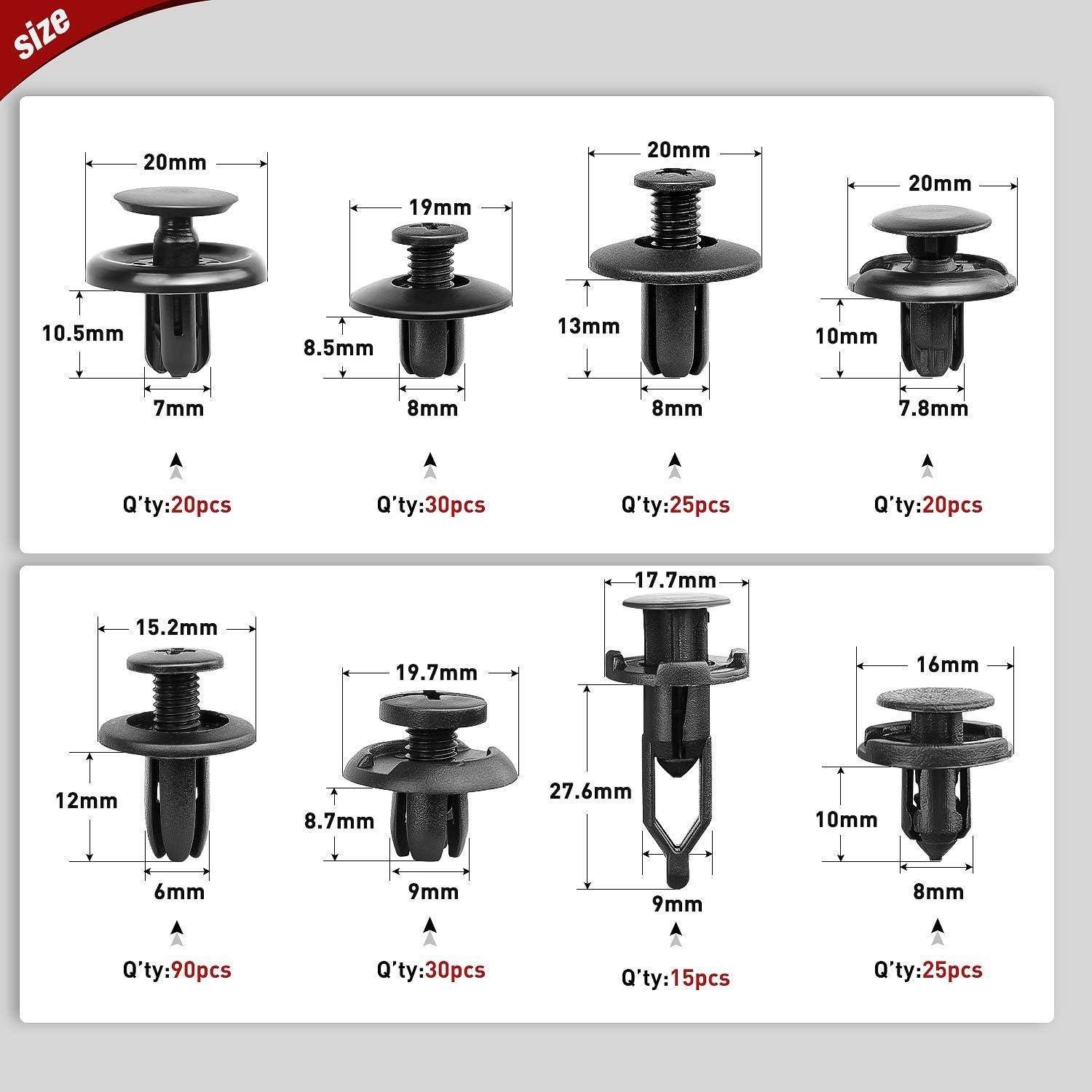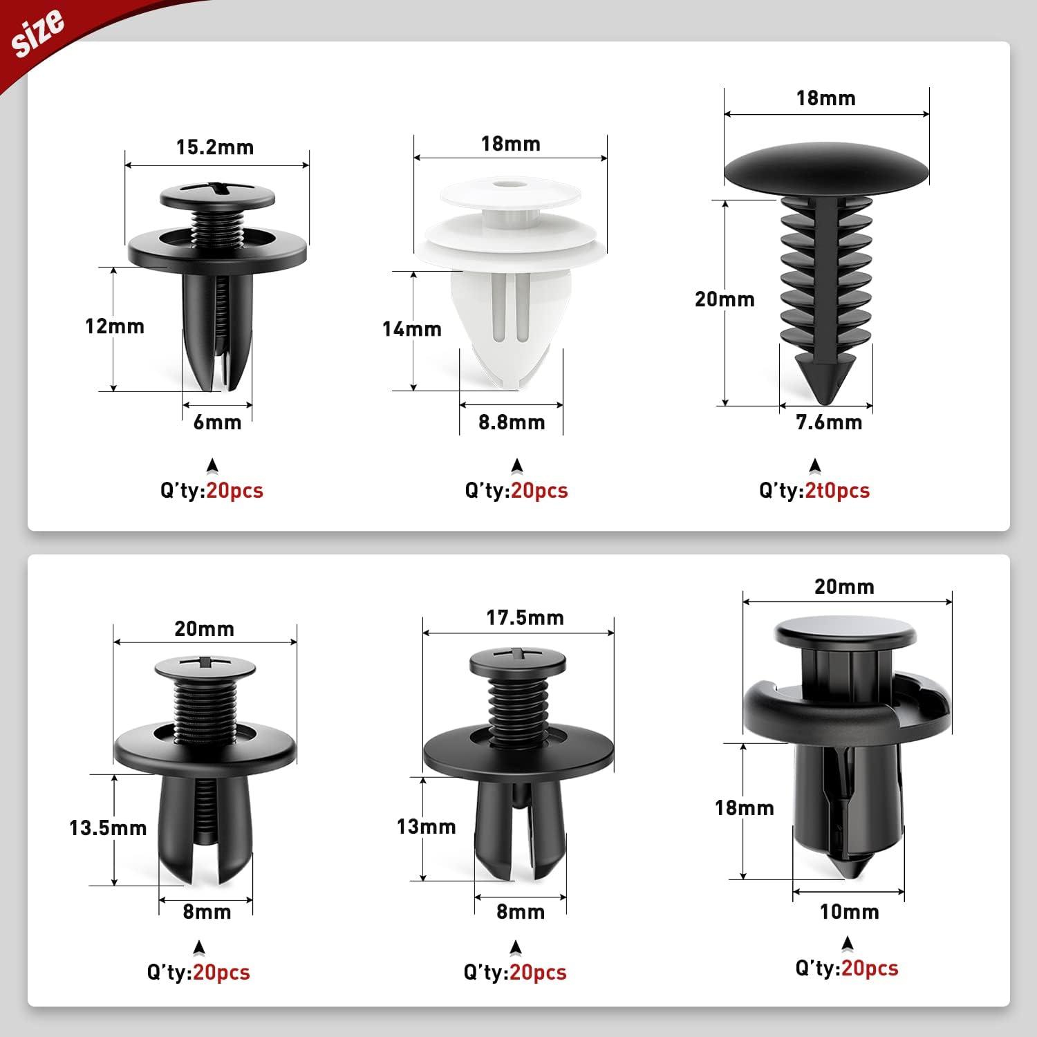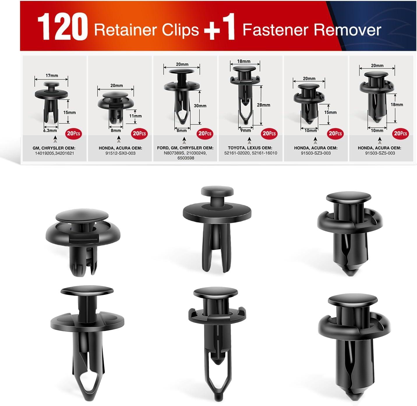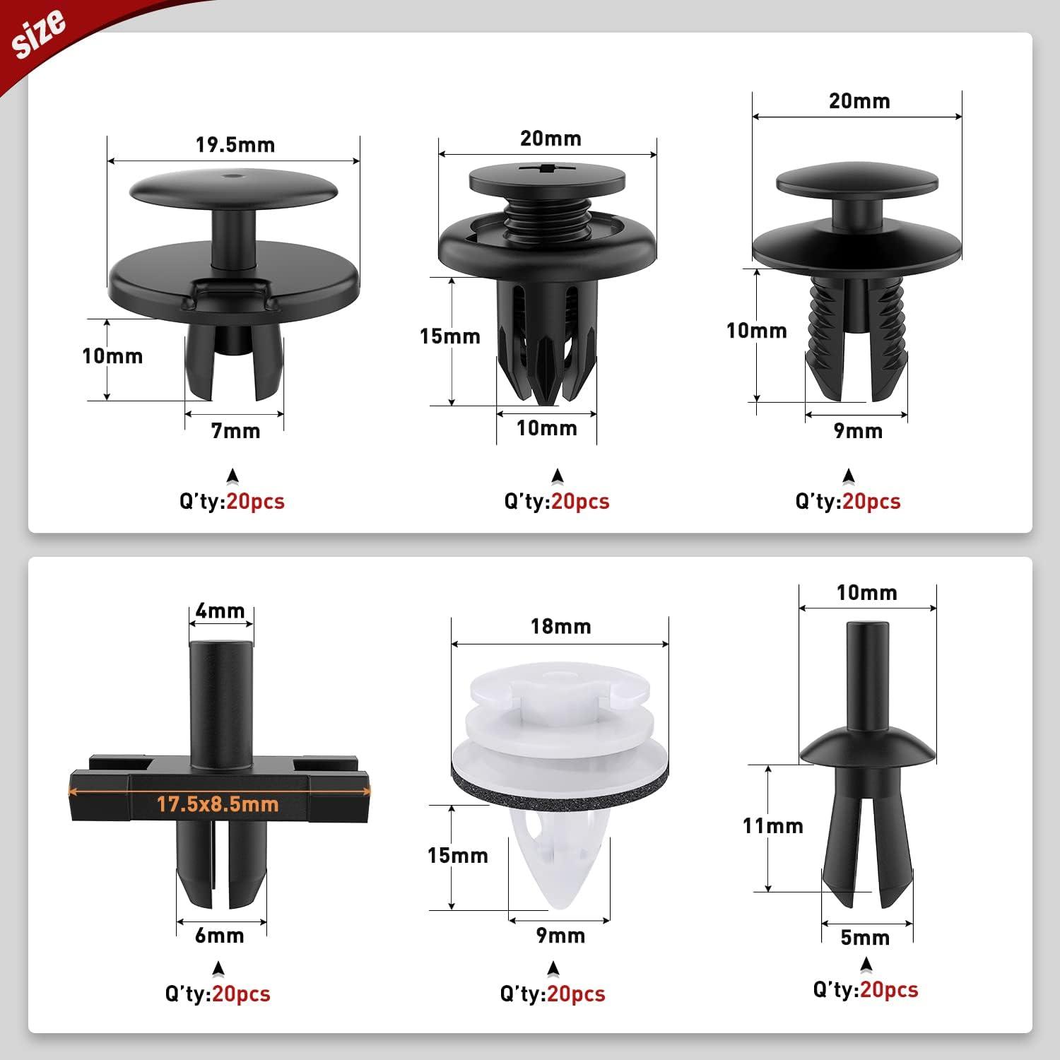 Nilight 121PCS Car Bumper Retainer Clips 6mm 6.5mm 7mm 8mm 9.5mm 9.8mm Expansion Screws Replacement Kit Door Trim Panel Clips Bumper Push Rivet Clips for Toyota Honda GM Mazda