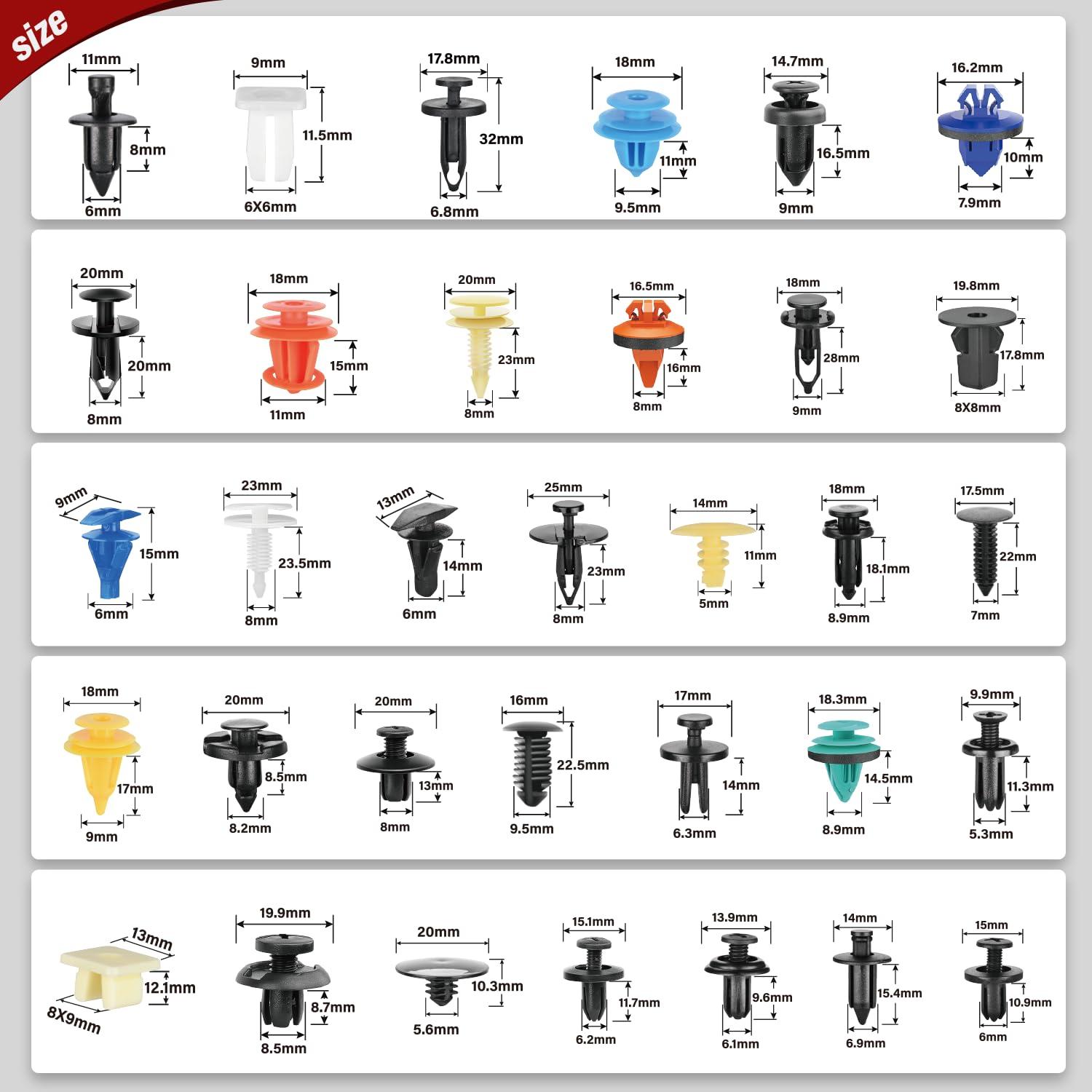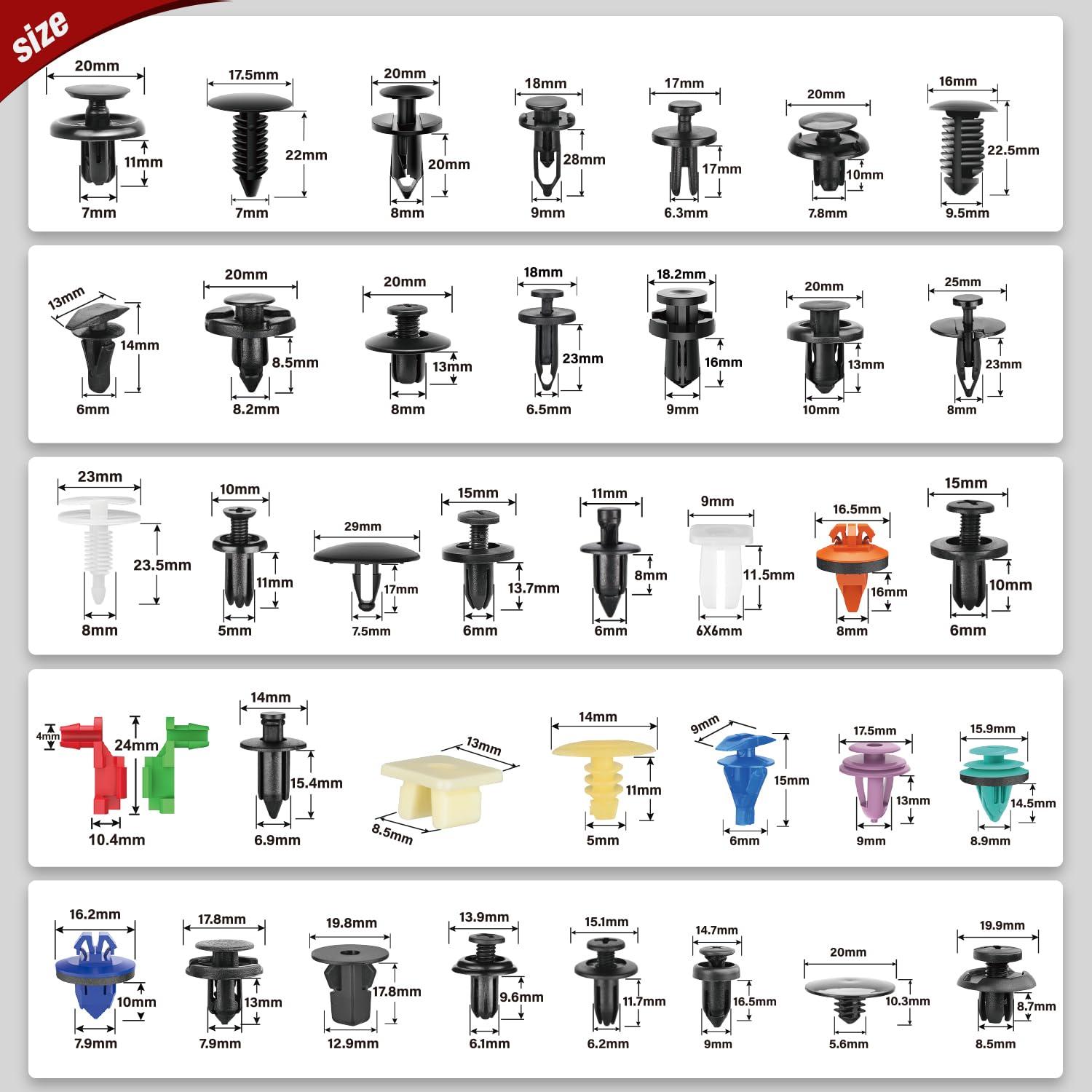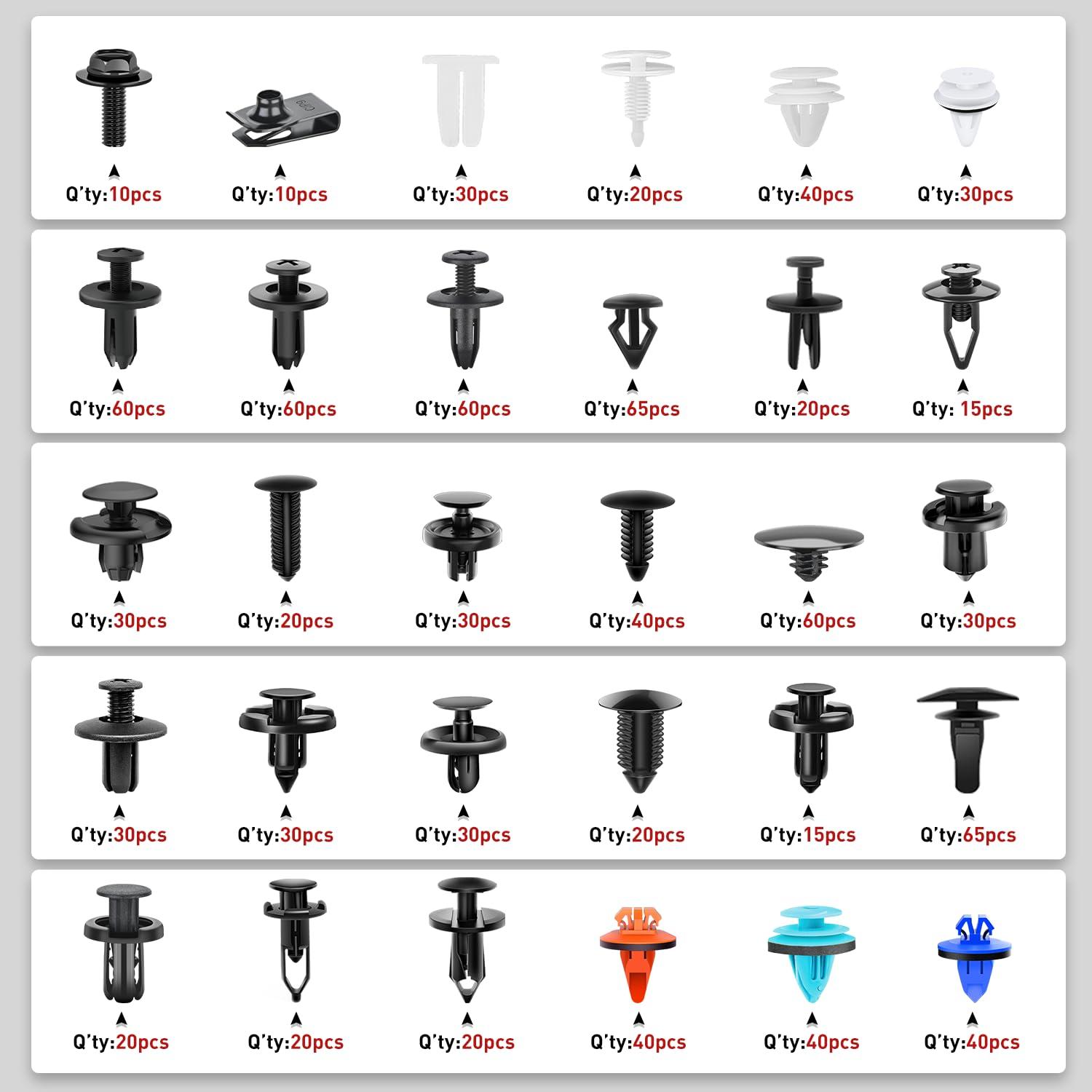 Nilight – CL-86 635Pcs Car Push Retainer Clips-16 Most Popular Sizes Nylon Bumper Fender Rivets Kit with 10 Cable Ties and Fasteners Remover for Toyota GM Ford Honda Acura Chrysler