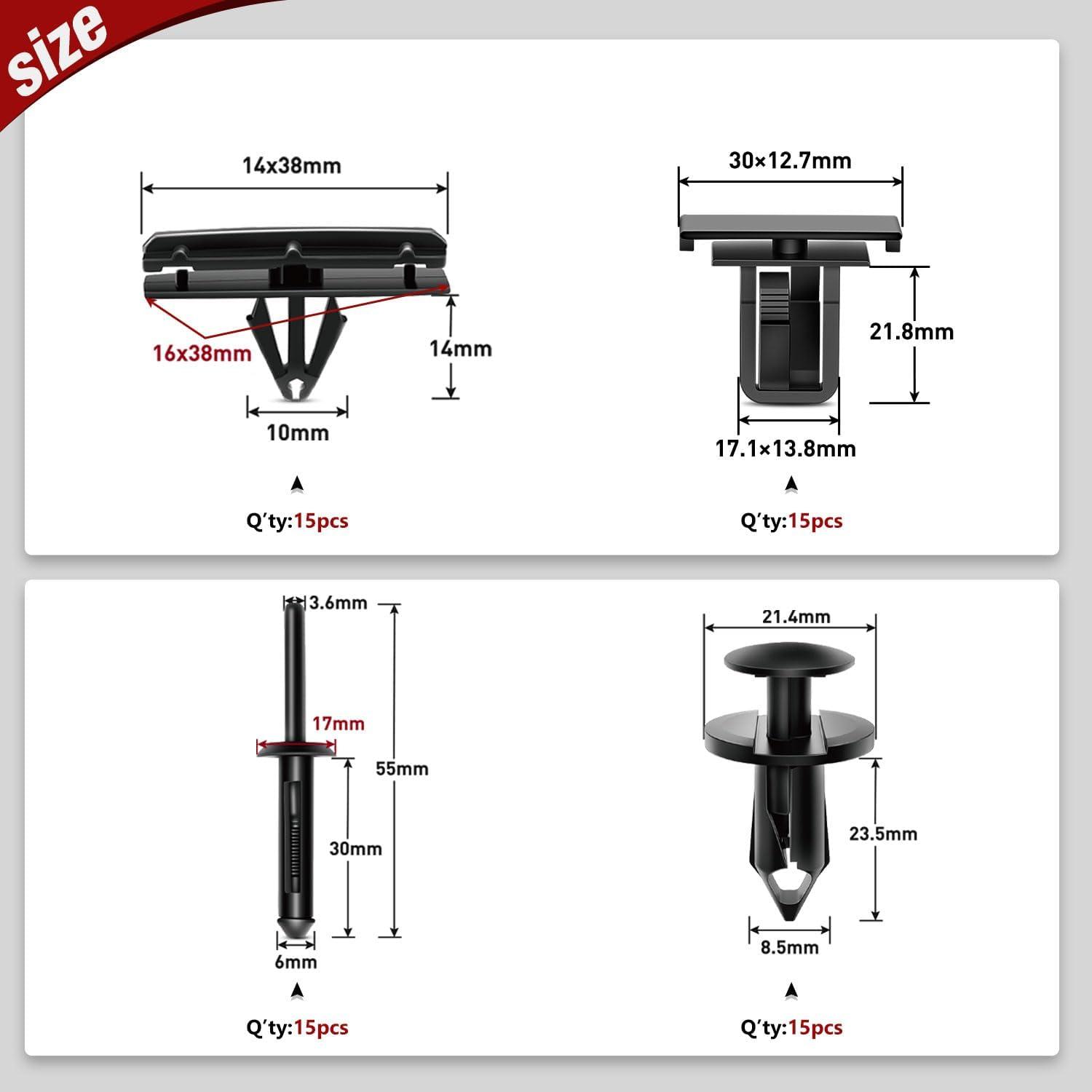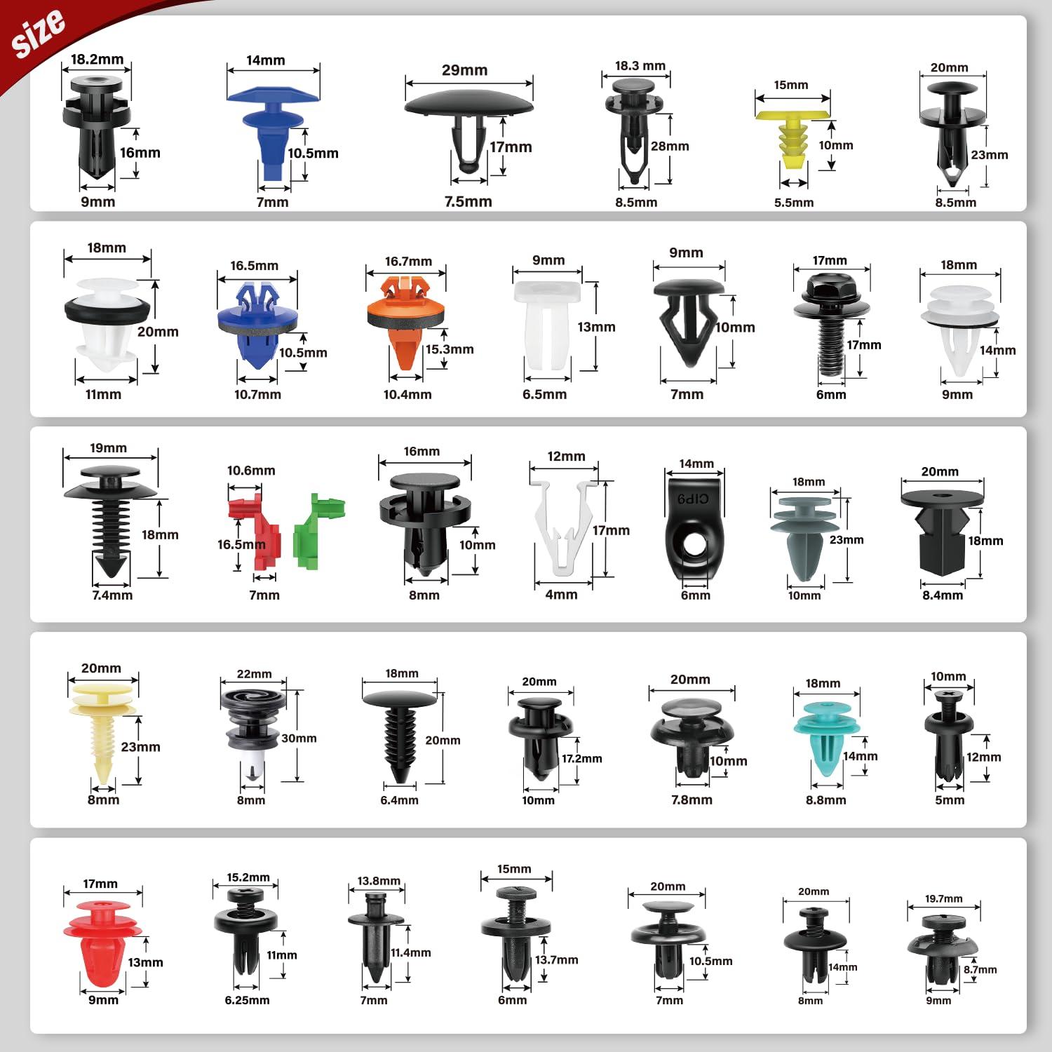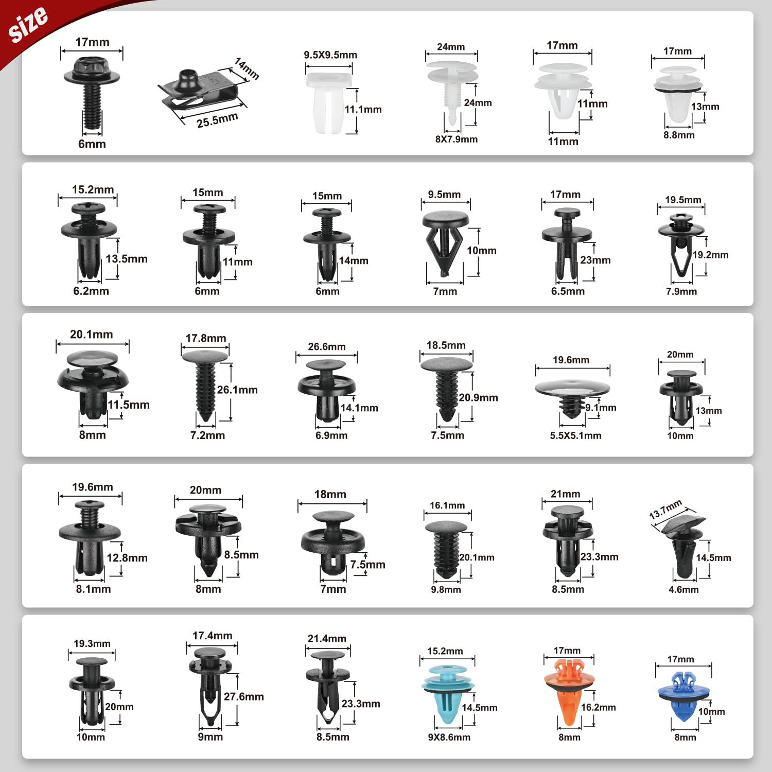 Nilight – CL-86 635Pcs Car Push Retainer Clips-16 Most Popular Sizes Nylon Bumper Fender Rivets Kit with 10 Cable Ties and Fasteners Remover for Toyota GM Ford Honda Acura Chrysler