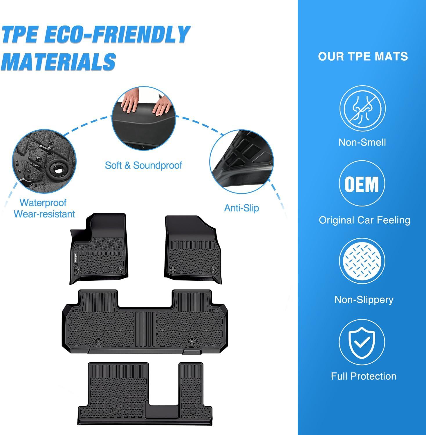 Nilight TPE Floor Mats for 2021 2022 2023 2024 2025 Chevy Chevrolet Tahoe GMC Yukon Cadillac Escalade Bench Seating, All Weather Custom Fit Heavy Duty Floor Liners(2009-2017 Chevy Traverse)
