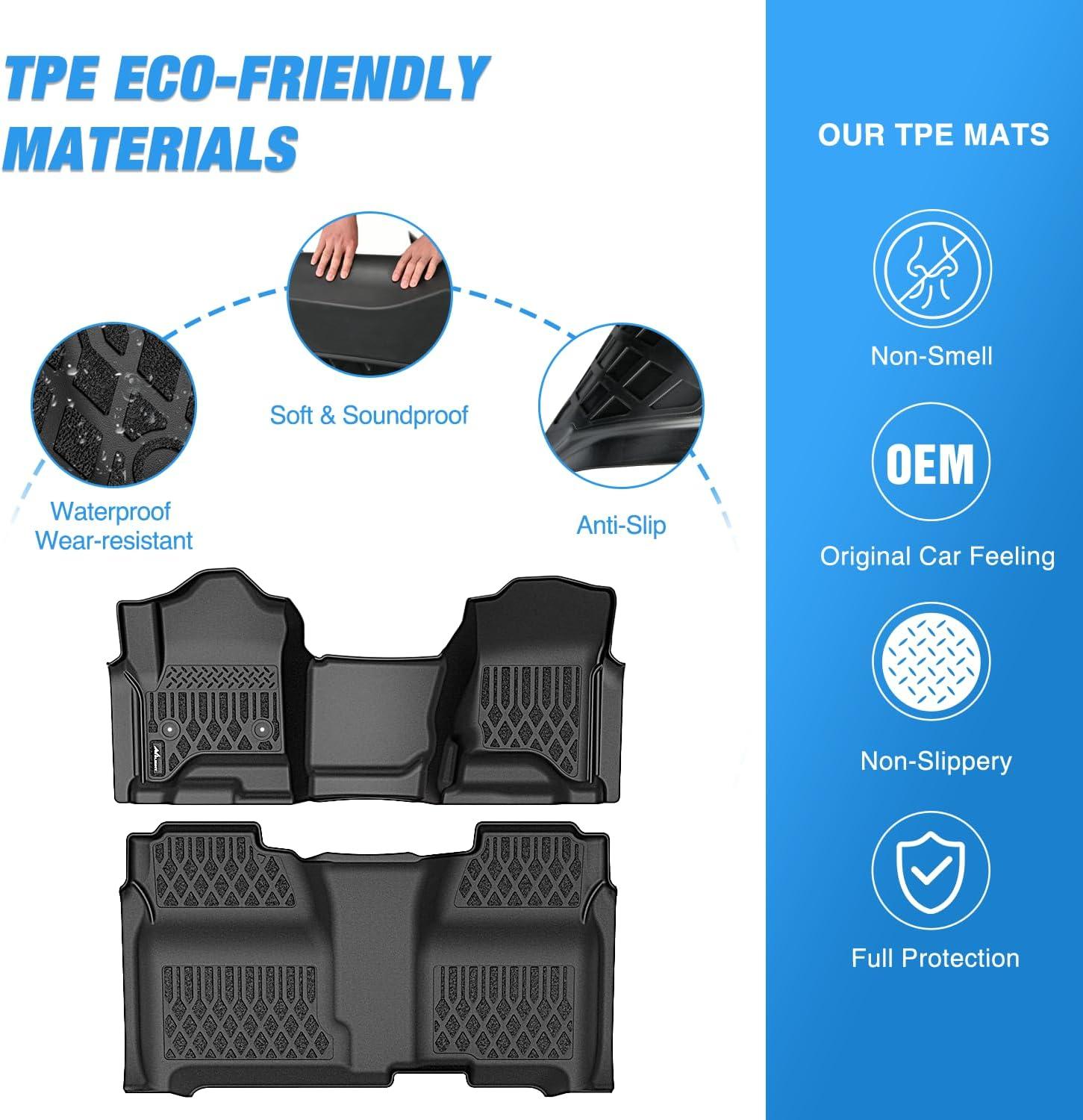 Nilight TPE Floor Mats for 2021 2022 2023 2024 2025 Chevy Chevrolet Tahoe GMC Yukon Cadillac Escalade Bench Seating, All Weather Custom Fit Heavy Duty Floor Liners(2014-2018 Silverado GMC Sierra|Crew Cab|Bench Seat)