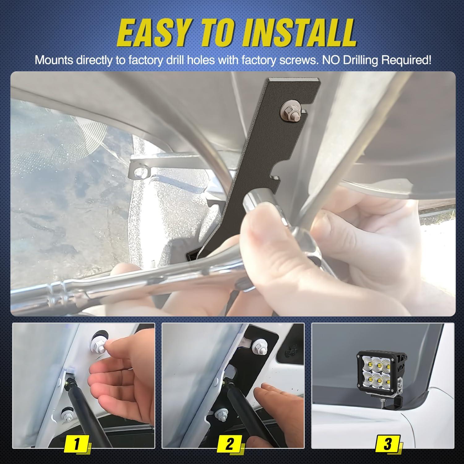 Nilight 2PCS Lower Windshield Hinge Mounting Brackets A-Pillar Brackets for Offroad LED Fog Light Pods for 2021 2022 2023 2024 Ford Bronco(For Chevy/GMC 2015-2022)