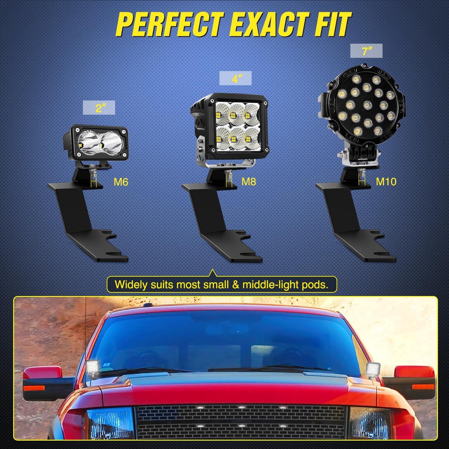 Nilight 2PCS Lower Windshield Hinge Mounting Brackets A-Pillar Brackets for Offroad LED Fog Light Pods for 2021 2022 2023 2024 Ford Bronco(For F150 2004-2014)