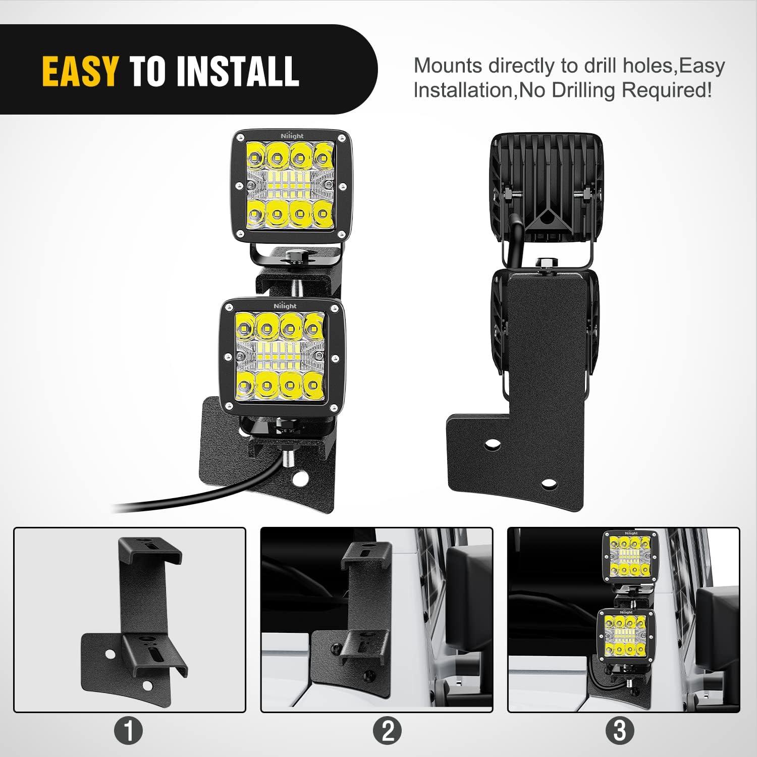 Nilight 2Pcs Windshield Hinge Mounting Brackets Dual A-Pillar for Offroad LED Fog Light Pods for 2018 2019 2020 2021 2022 2023 Wrangler JL/2020-2023 Gladiator JT , 2 Years Warranty,Black(Dual A-Pillar JK 2007-2017)