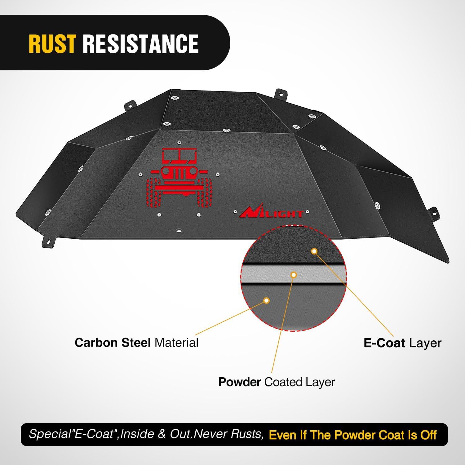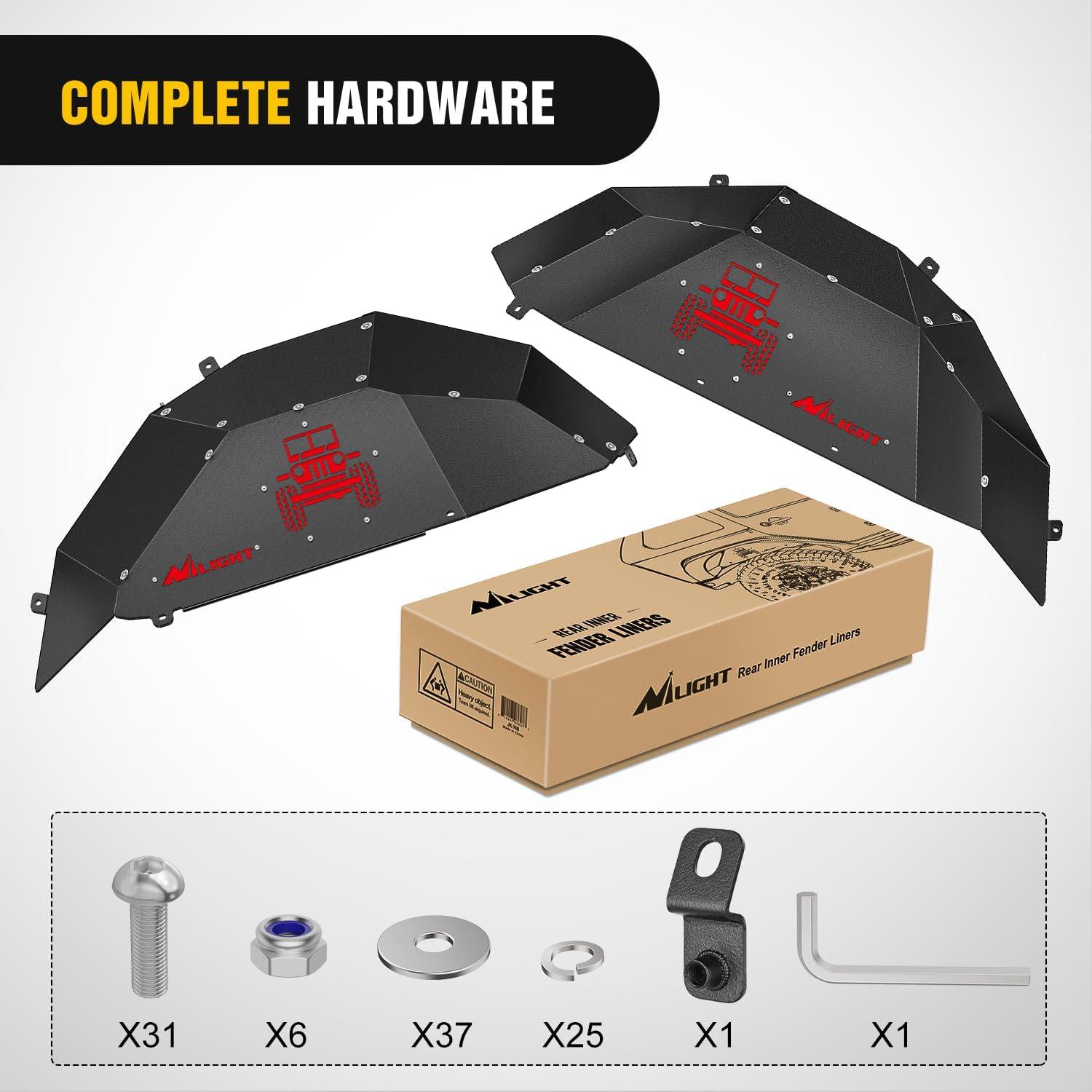 Nilight Off-Road Fender Flares Kit Compatible with 2007-2018 Wrangler JK (2/4 Doors) Heavy-Duty Solid Steel Black Textured Fenders for Unlimited JK Front & Rear Flat-4pcs(JK-63D)(For 2018-2025 Rubicon)