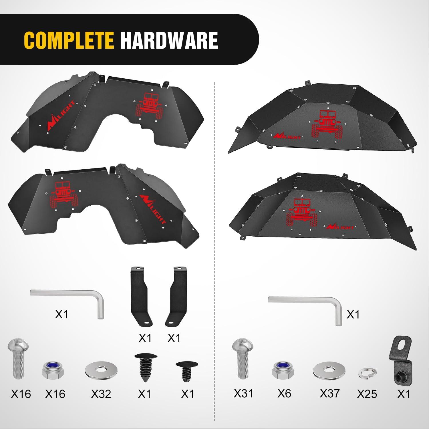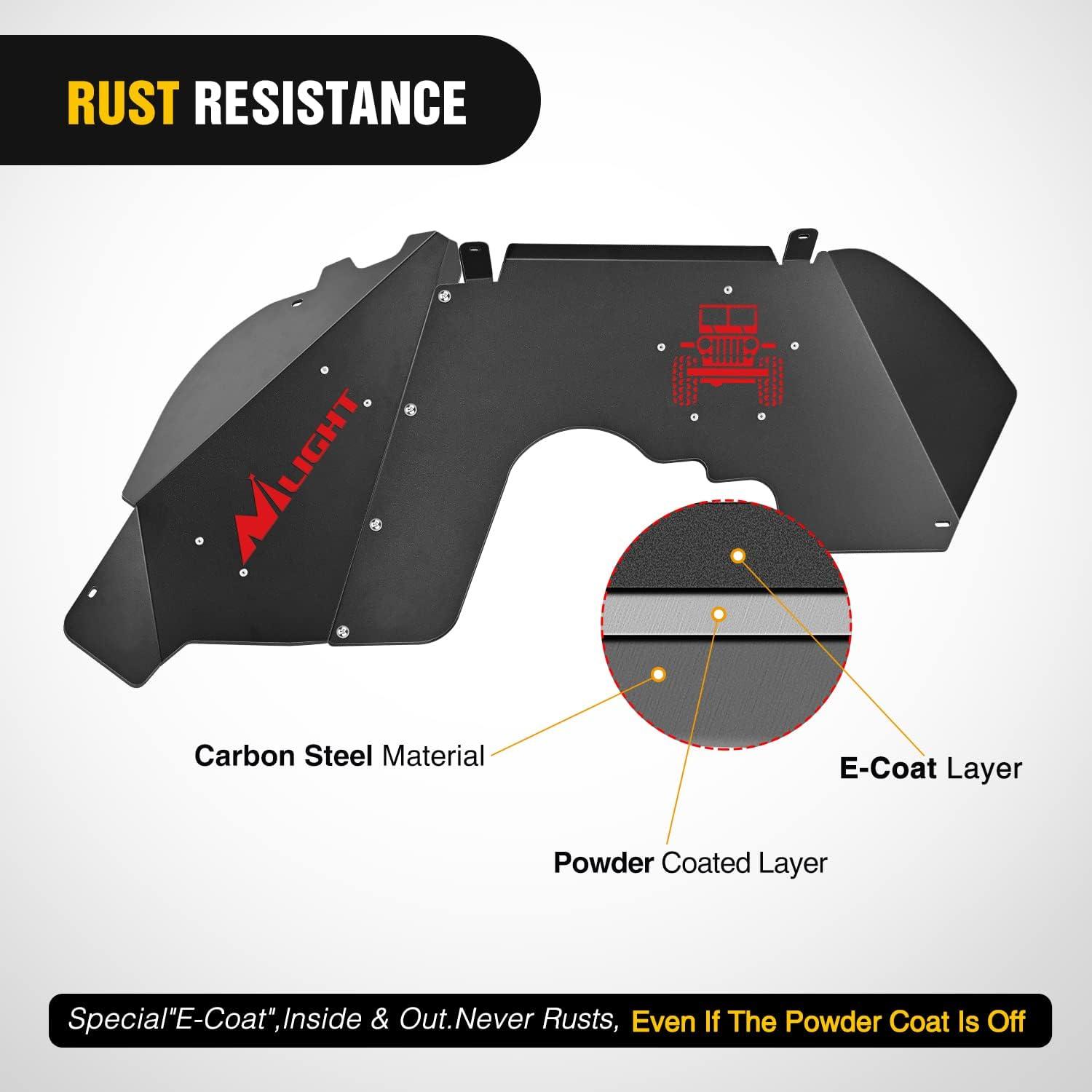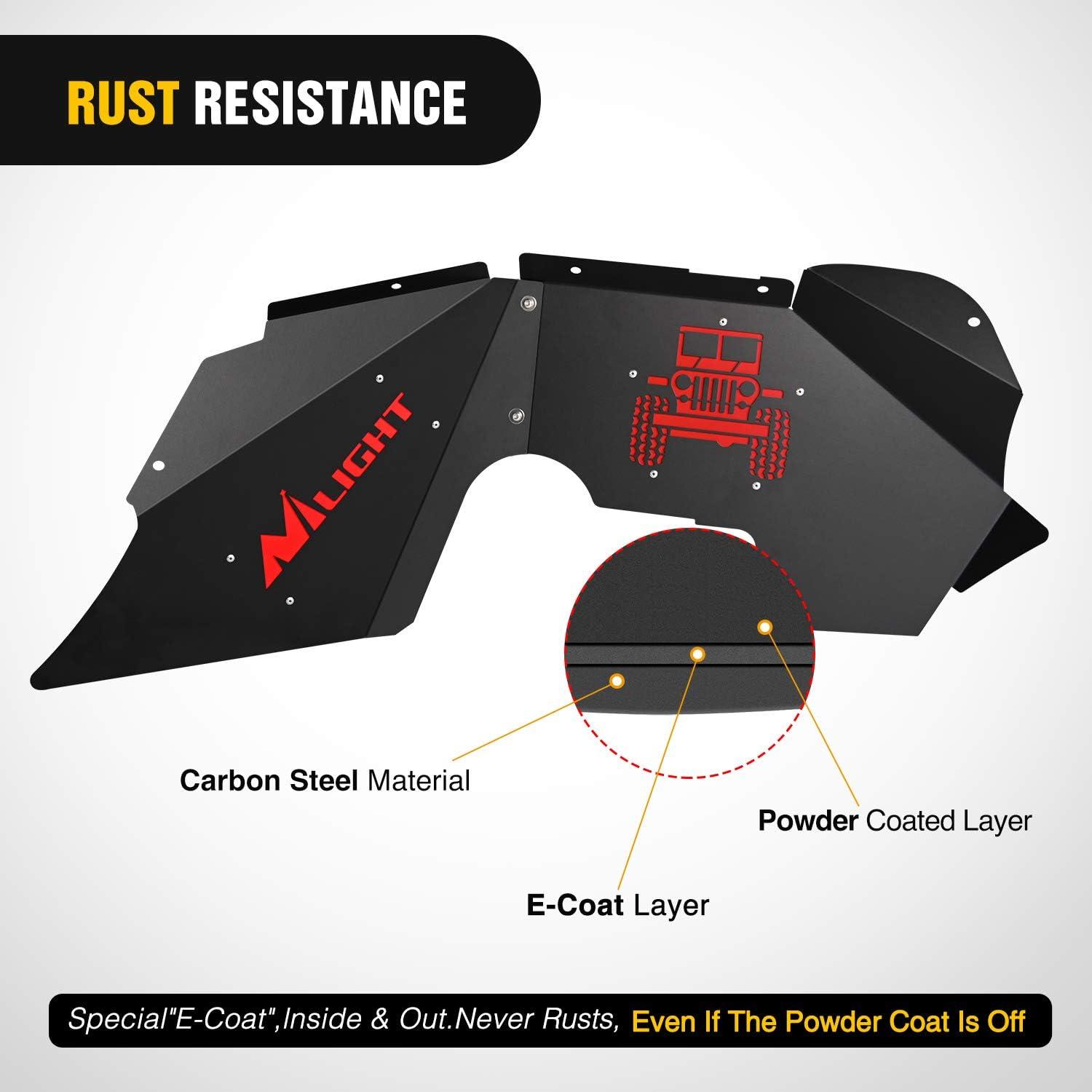 Nilight Off-Road Fender Flares Kit Compatible with 2007-2018 Wrangler JK (2/4 Doors) Heavy-Duty Solid Steel Black Textured Fenders for Unlimited JK Front & Rear Flat-4pcs(JK-63D)(For 2018-2025 JL)