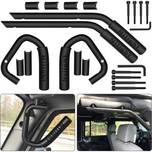 Nilight Front & Rear Grab Handles Aluminum Roll Bar Grip Handles for 2007-2018 Wrangler JK JKU Sports Sahara Freedom Rubicon X & Unlimited, 2 Years Warranty, Black