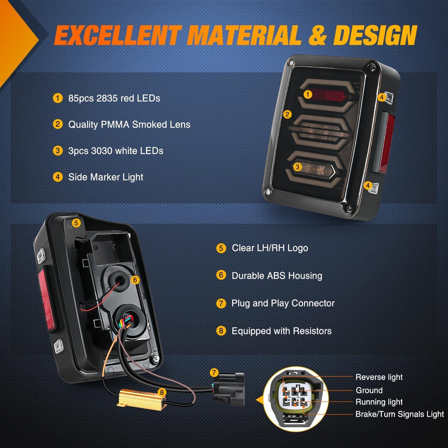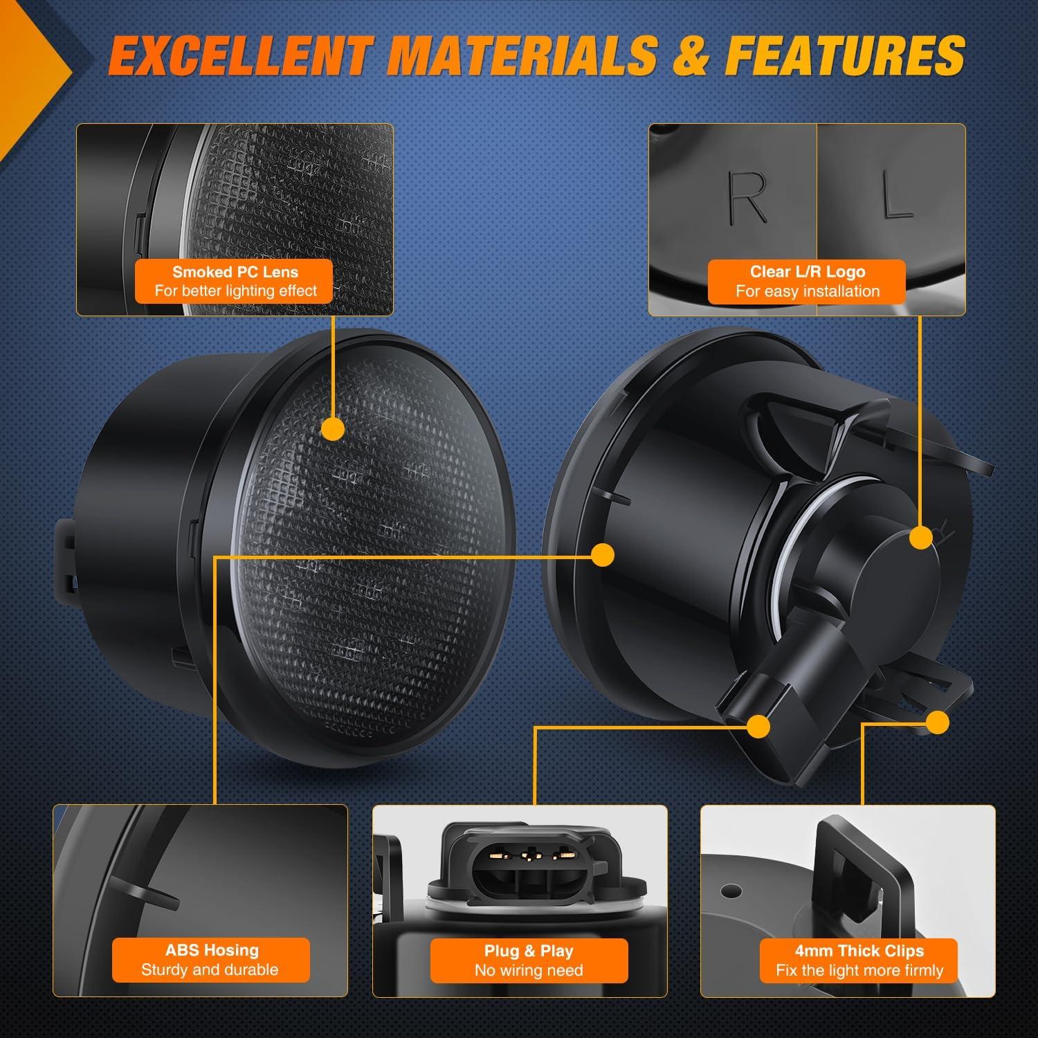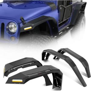 Nilight JK Wide Flat Front & Rear Fender Flares Fit for 2007-2018 Jeep Wrangler JK 2Door (Not fit 4 Door) 4Pcs Off-Road Wheel Fenders Mud Guards w/LED Lights Turn Signal Lights DRL, Heavy-Duty Steel