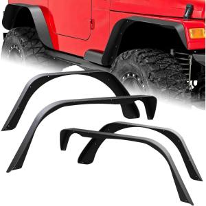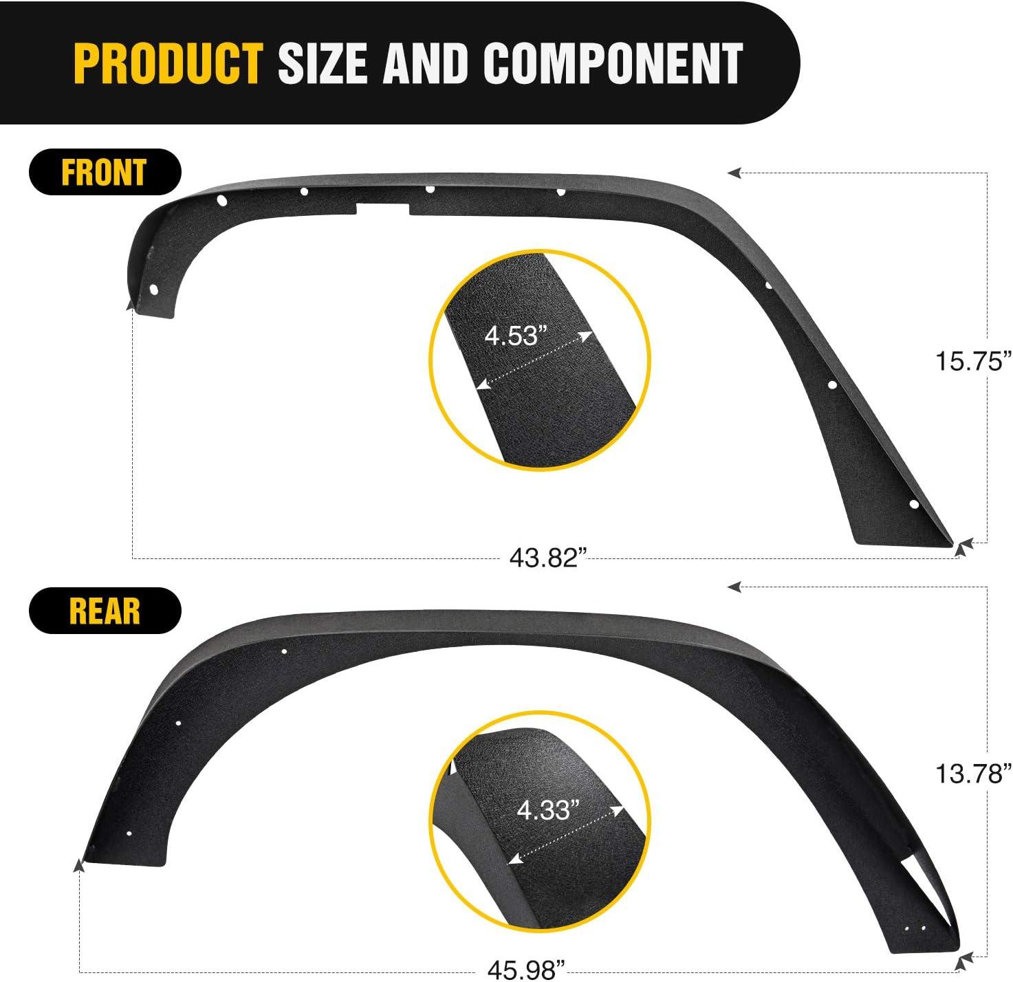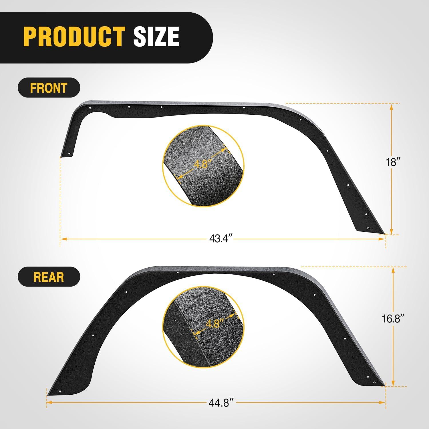 Nilight Off-Road Fender Flares Kit Compatible with 2007-2018 Wrangler JK (2/4 Doors) Heavy-Duty Solid Steel Black Textured Fenders for Unlimited JK Front & Rear Flat-4pcs(JK-63D)(For 1987-1995 YJ)
