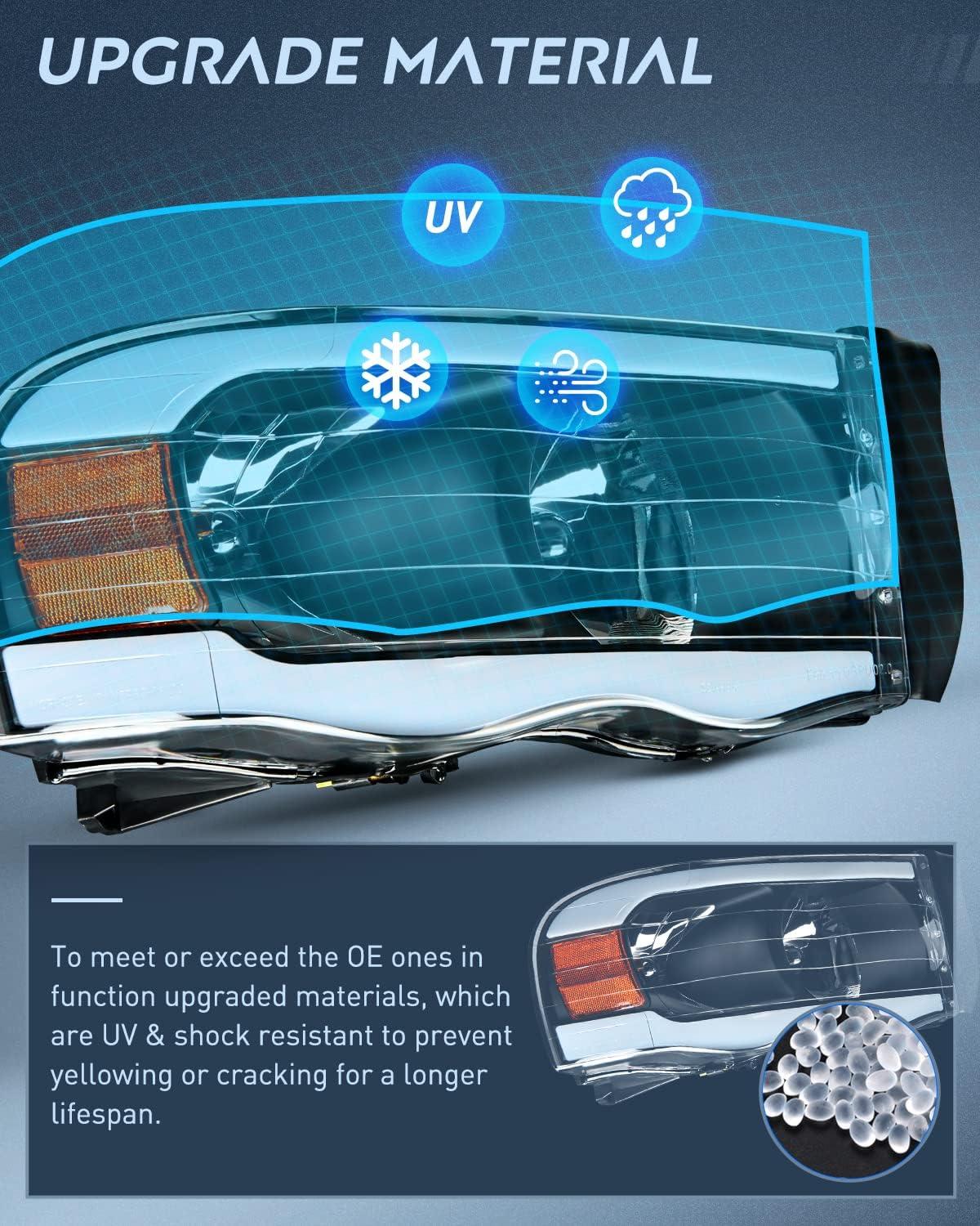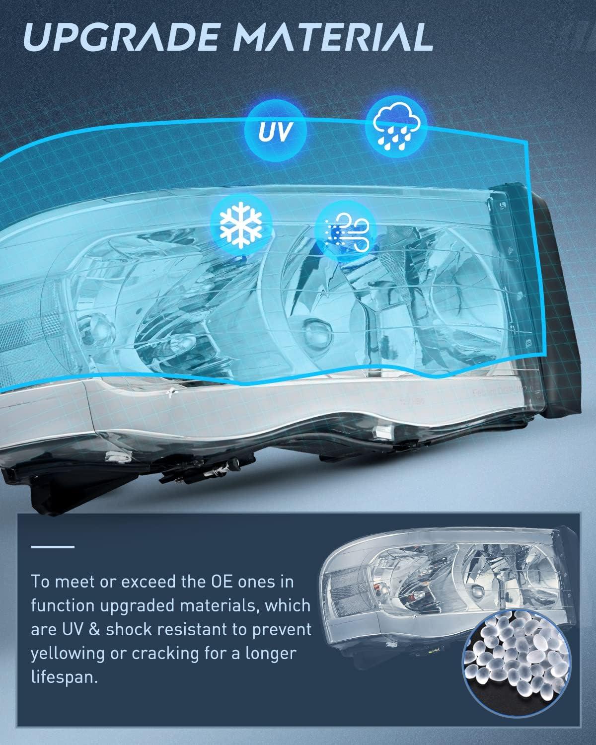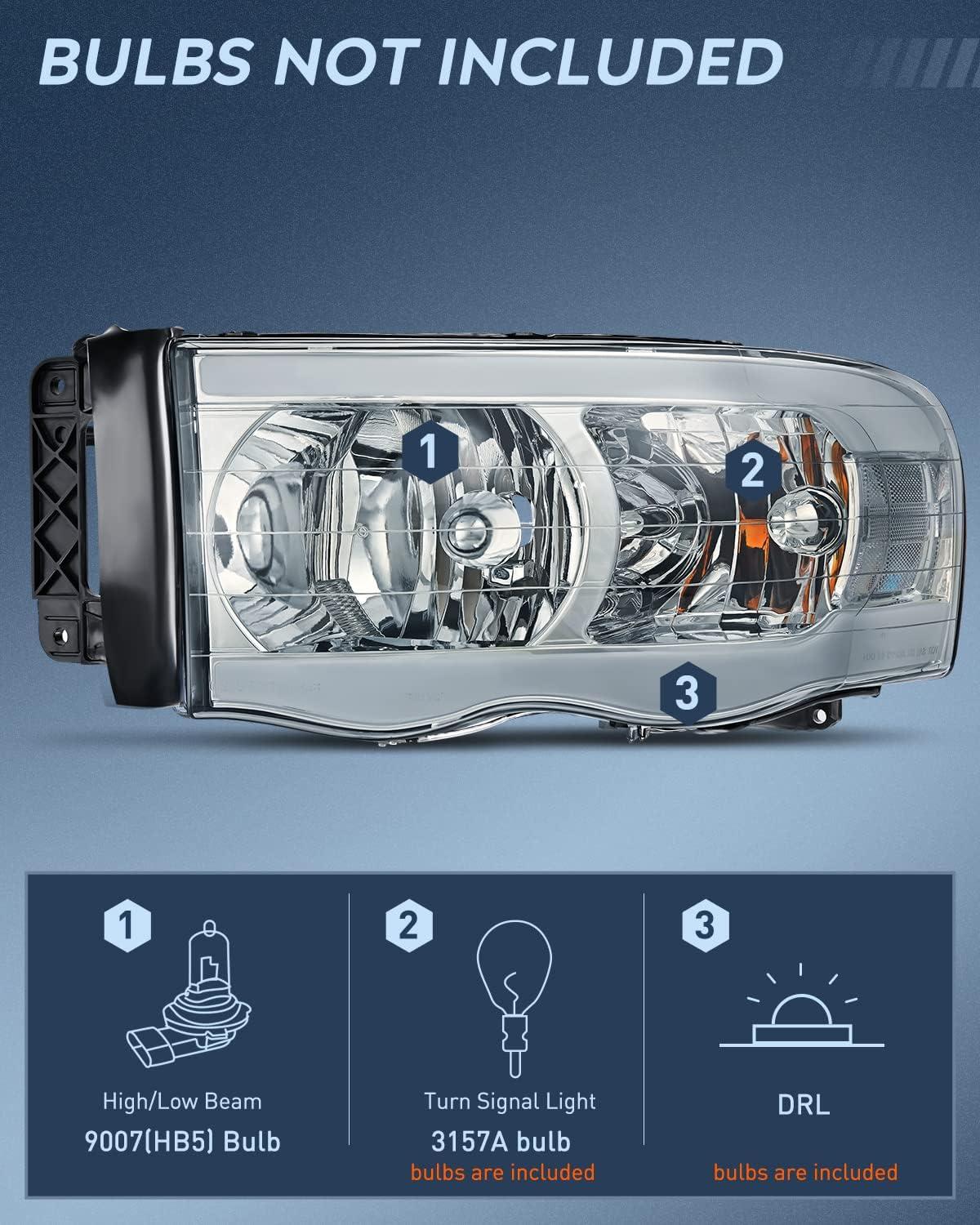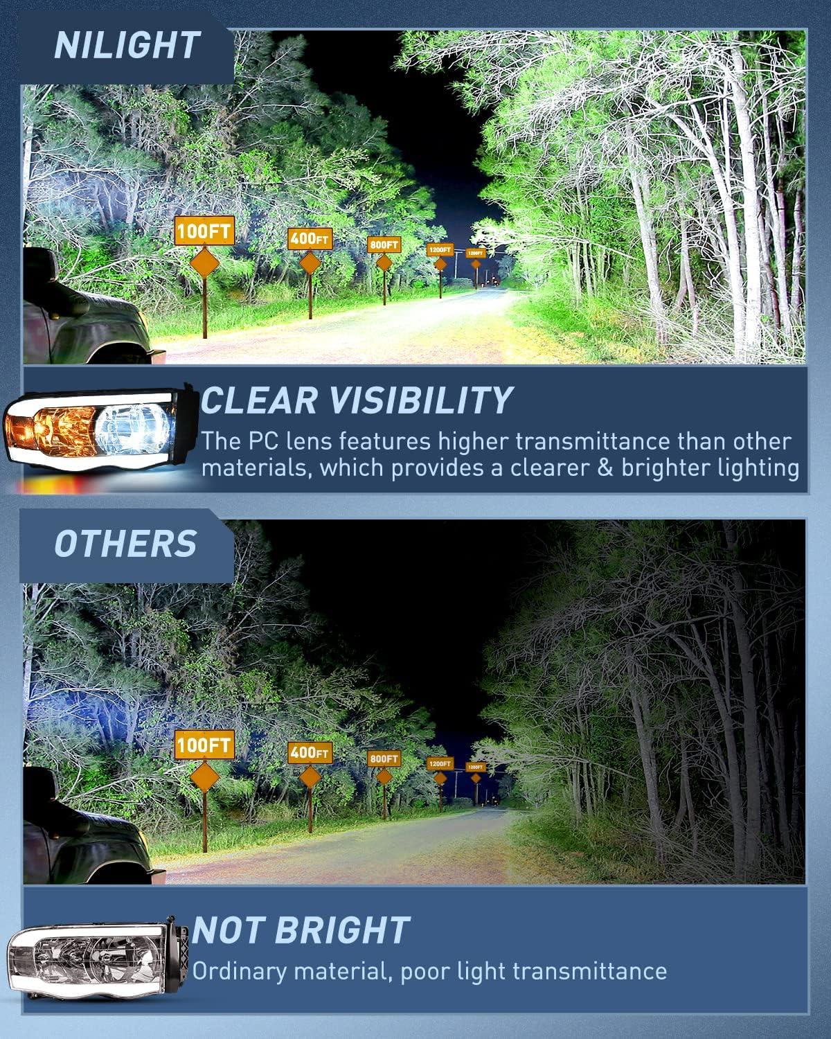 Nilight 2002 2003 2004 2005 Ram 1500 2500 3500 Headlight Assembly Chrome Housing Amber Corner Clear Lens Headlamp Replacement Driver and Passenger Side 2 Pack(Pair of Driver and Passenger Side)