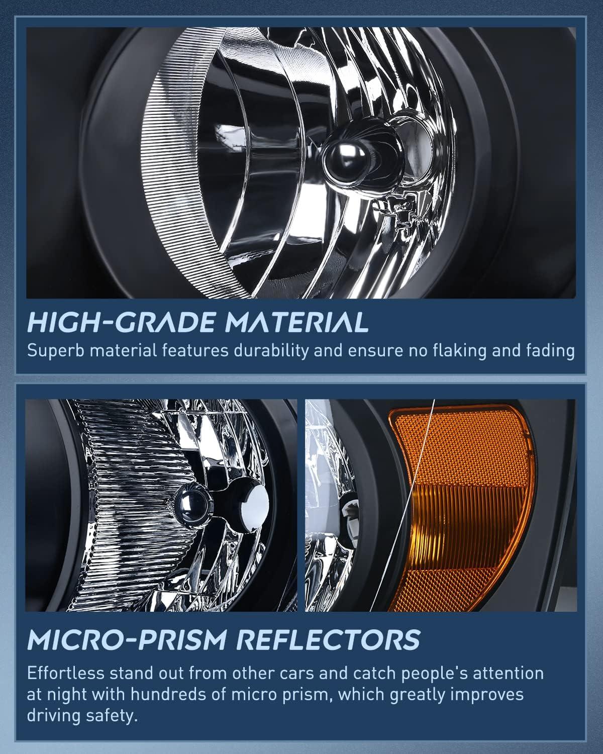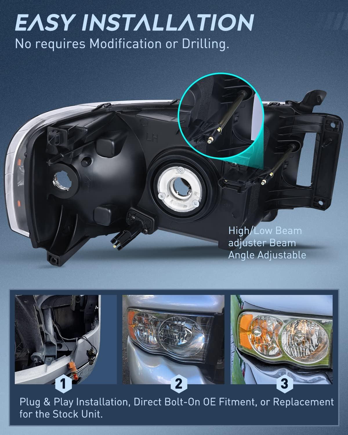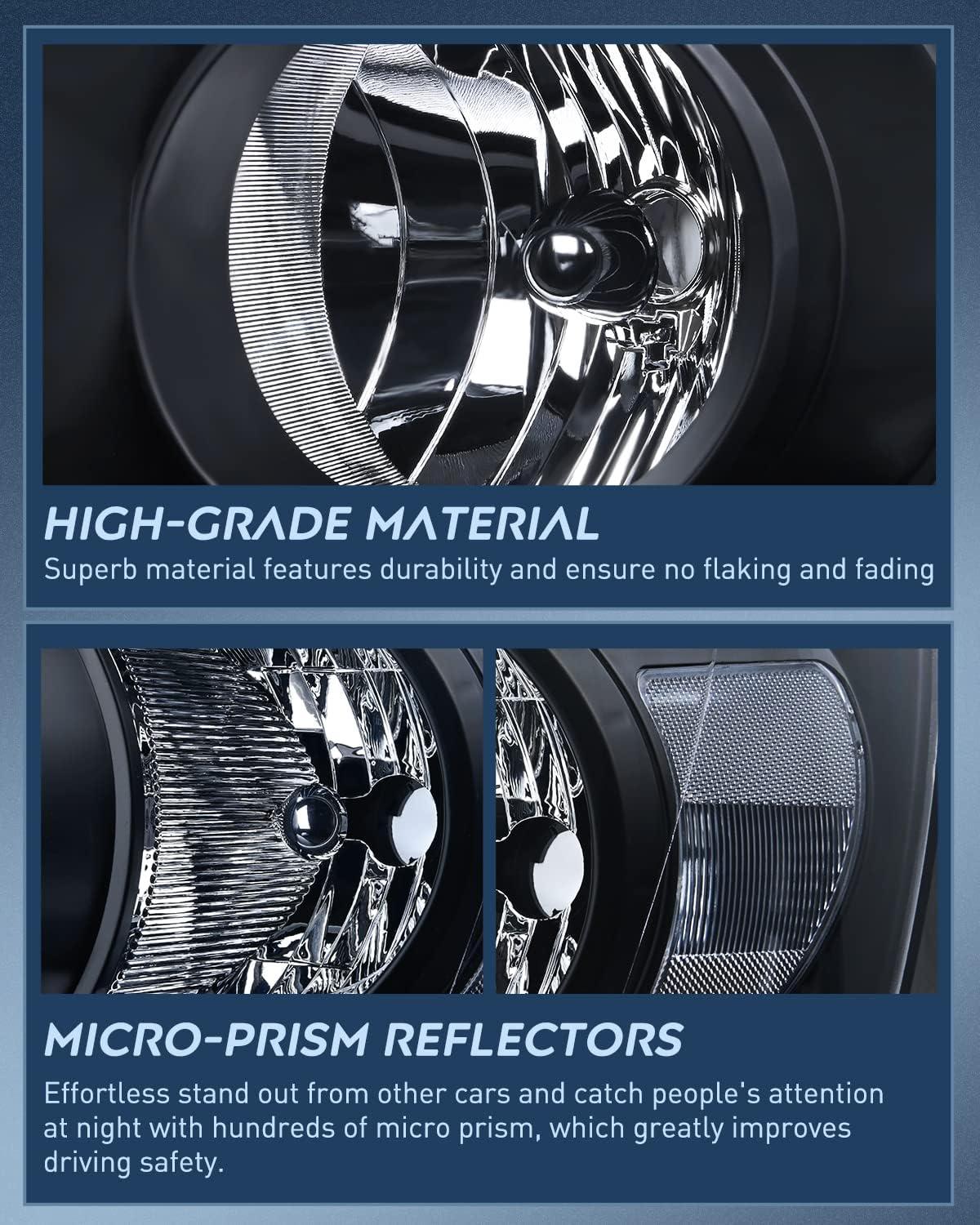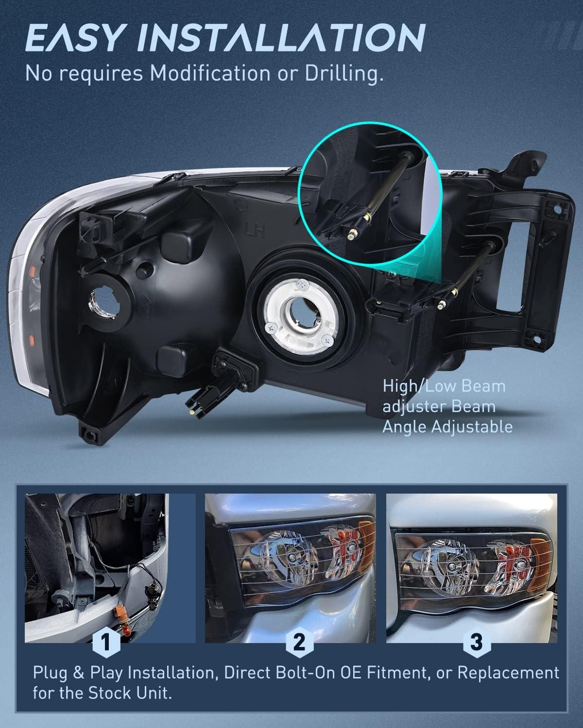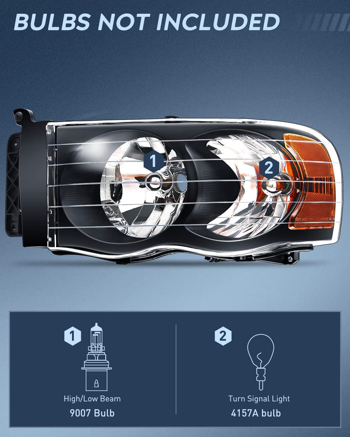 Nilight 2002 2003 2004 2005 Ram 1500 2500 3500 Headlight Assembly Chrome Housing Amber Corner Clear Lens Headlamp Replacement Driver and Passenger Side 2 Pack(Black Housing + Amber Reflector)