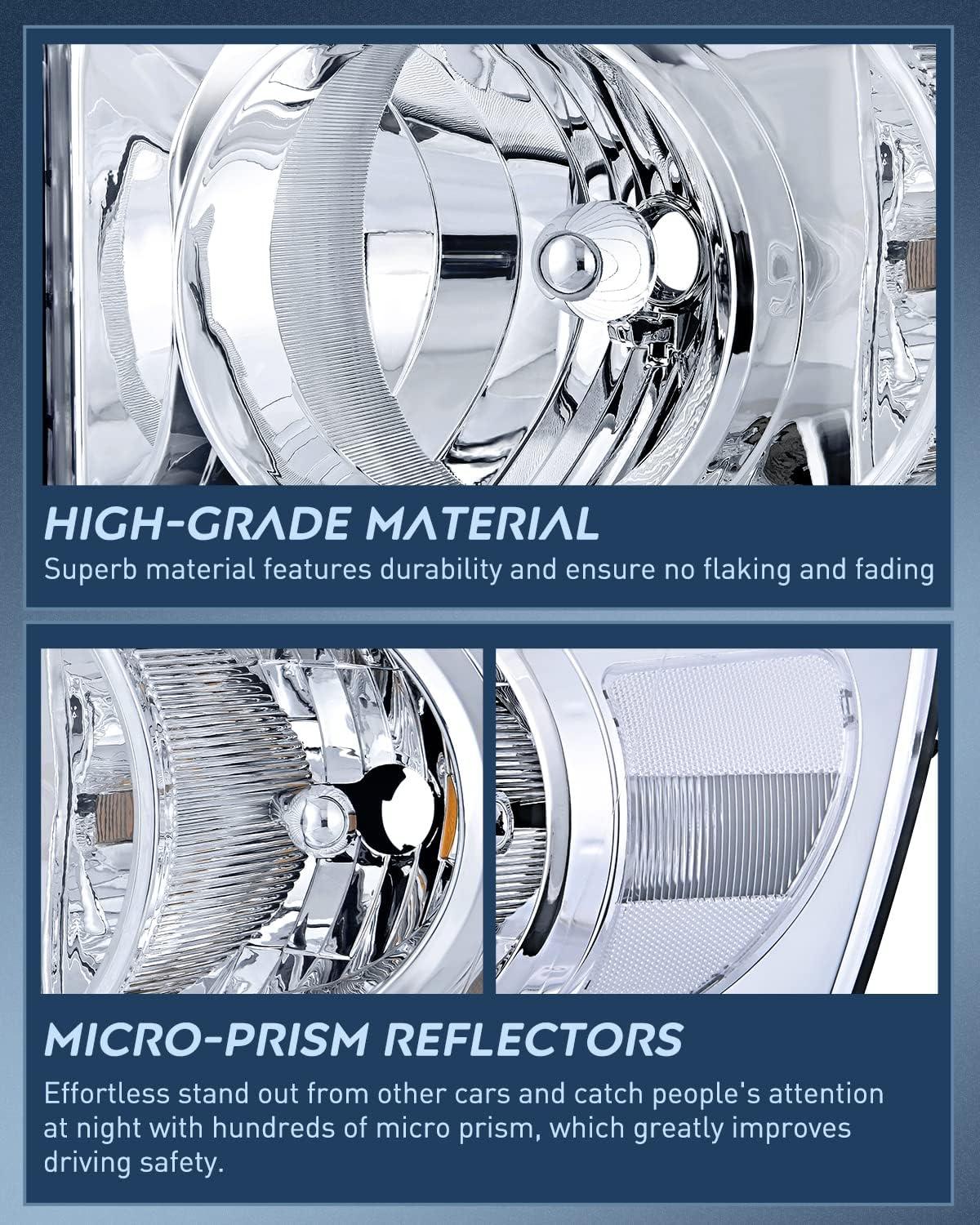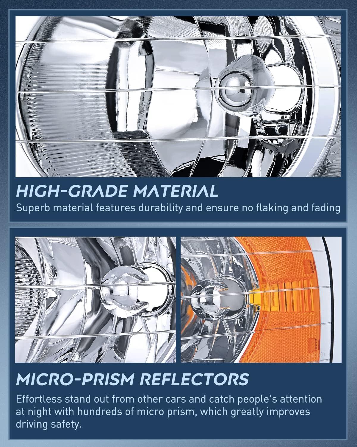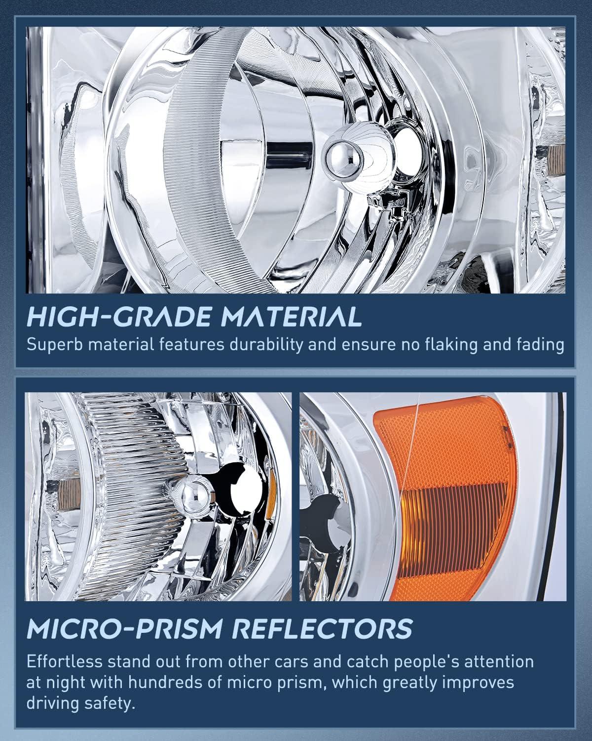 Nilight 2002 2003 2004 2005 Ram 1500 2500 3500 Headlight Assembly Chrome Housing Amber Corner Clear Lens Headlamp Replacement Driver and Passenger Side 2 Pack(Chrome Housing + Amber Reflector)