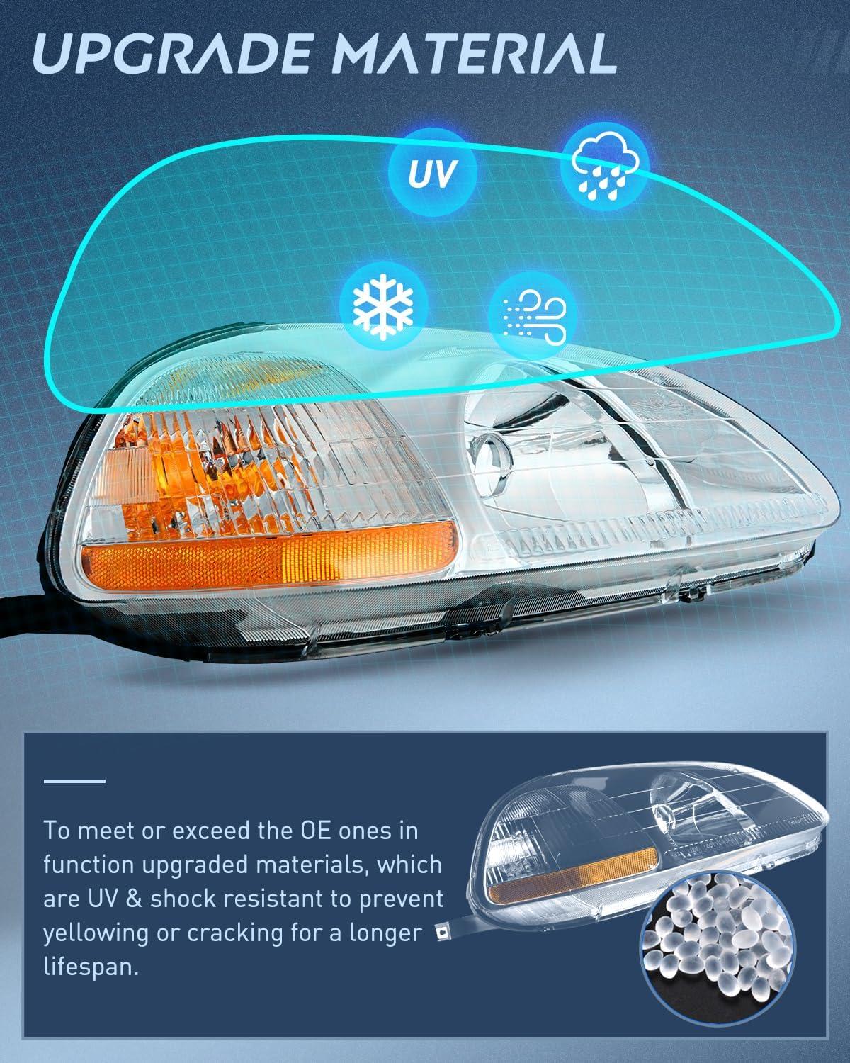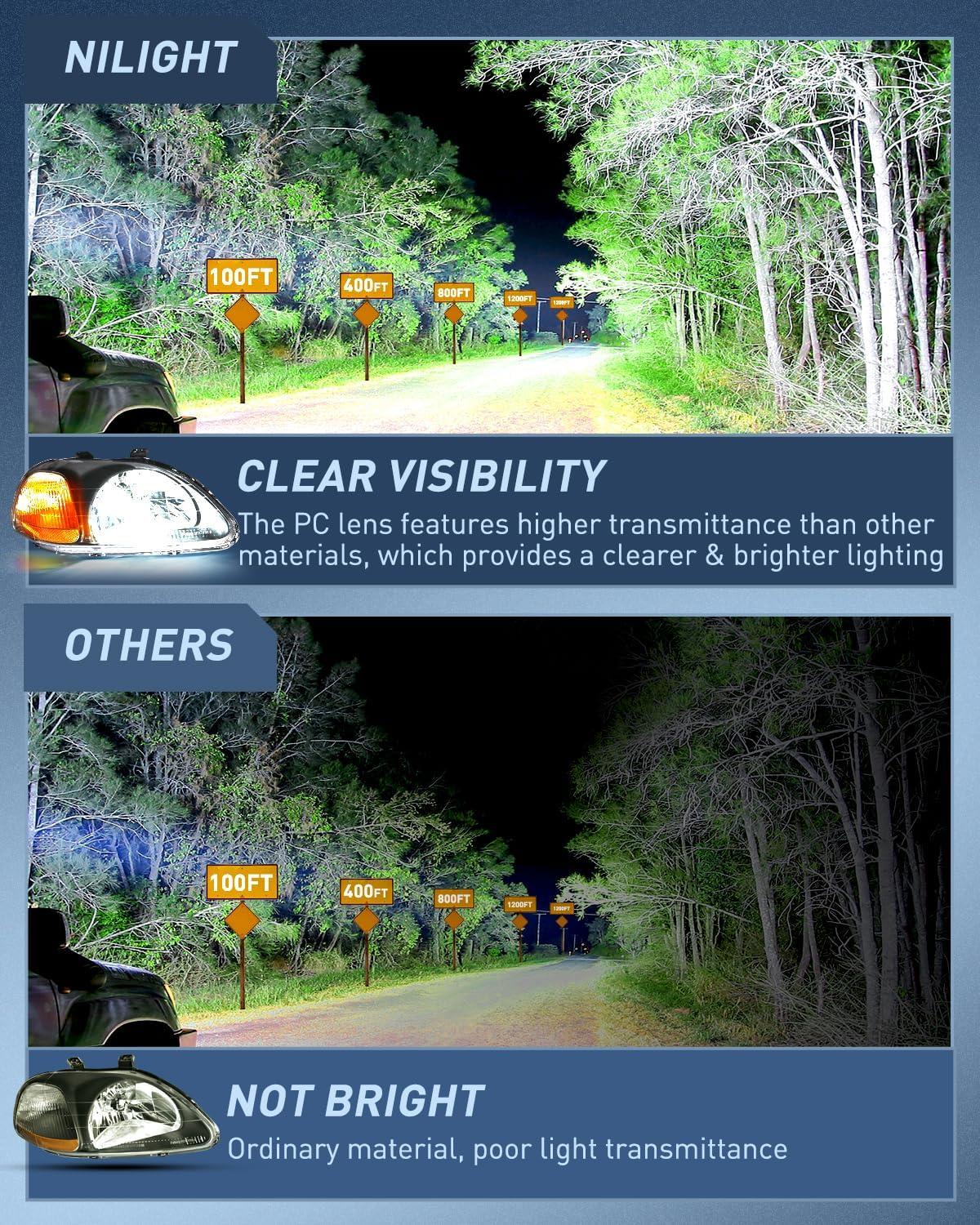 Nilight 2006 2007 2008 2009 2010 2011 Civic Headlights Amber Sedan 4 Door Only Headlights Assembly Headlamp Replacement,Driver and Passenger Side,Black Housing Amber Reflector(Chrome Housing + Amber Reflector)