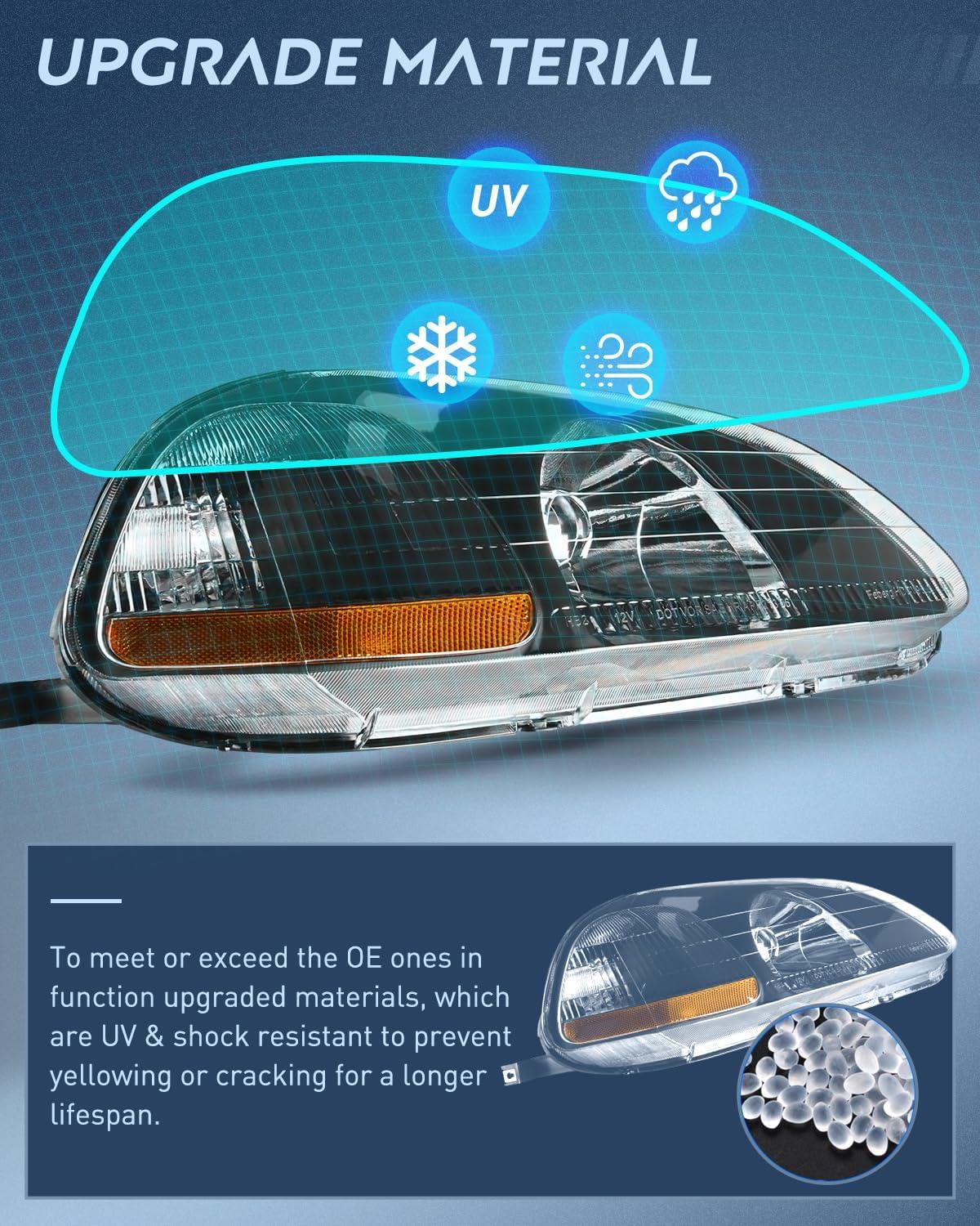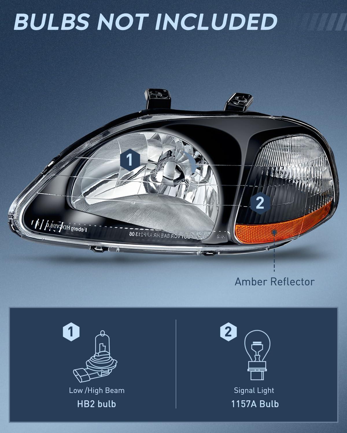 Nilight 2006 2007 2008 2009 2010 2011 Civic Headlights Amber Sedan 4 Door Only Headlights Assembly Headlamp Replacement,Driver and Passenger Side,Black Housing Amber Reflector(Black Housing + Amber Reflector)