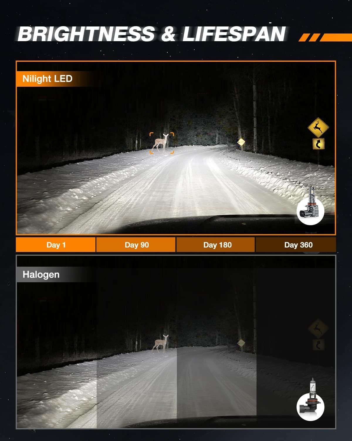 Nilight 9005/HB3 LED Bulbs, 350% Brighter Halogen and Fog Lights Replacement, 10000lm LED Bulbs, Compact Size, 6000K Cool White, Pack of 2(White)