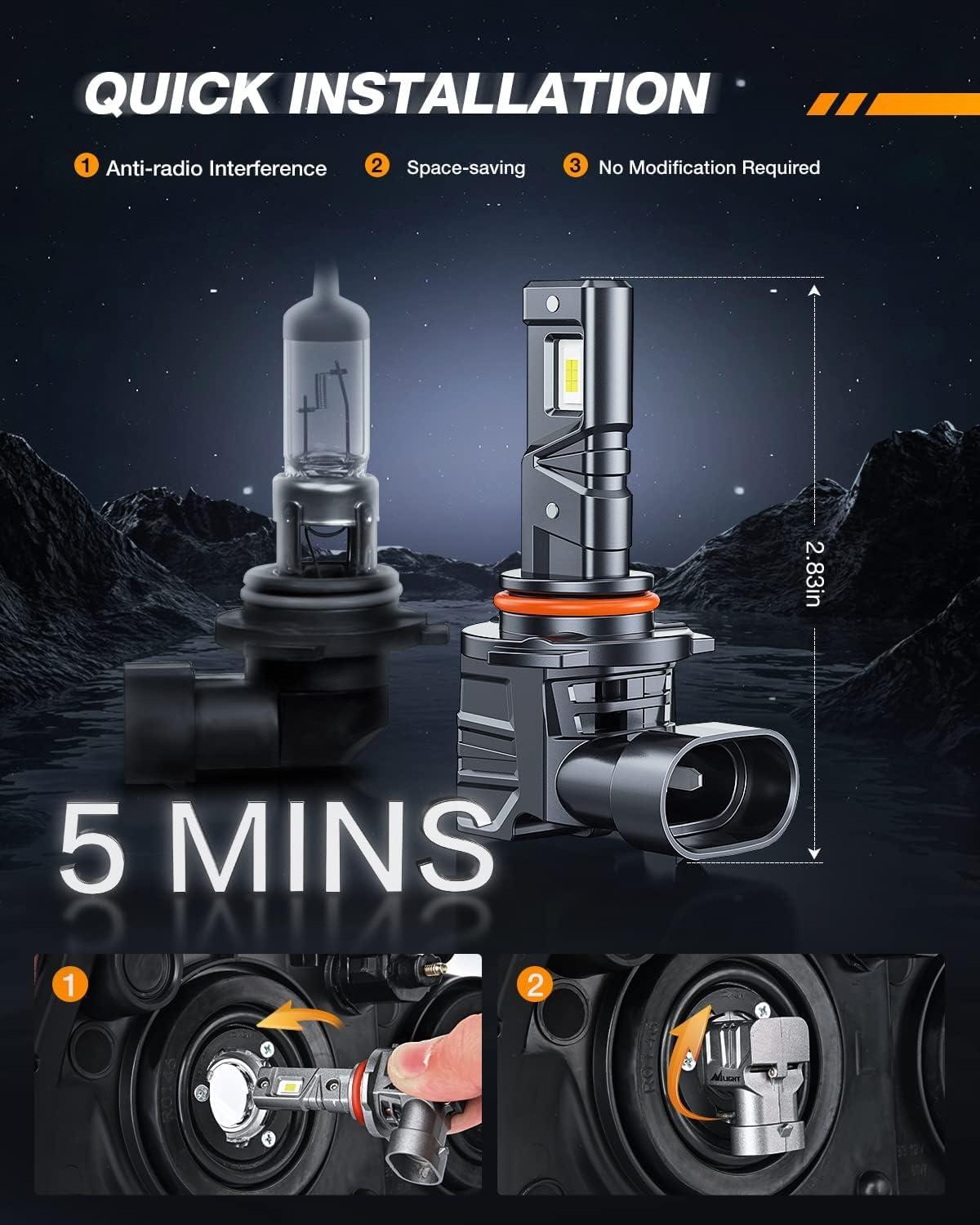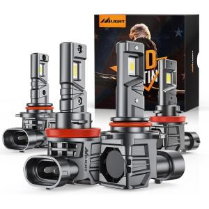 Nilight 9005/HB3 H11/H9 LED Bulbs, Wireless LED Driving Lights Combo, Halogen and Fog Lights Replacement, 6000K Cool White, Mini Size, 4 Pack(9005+H11)