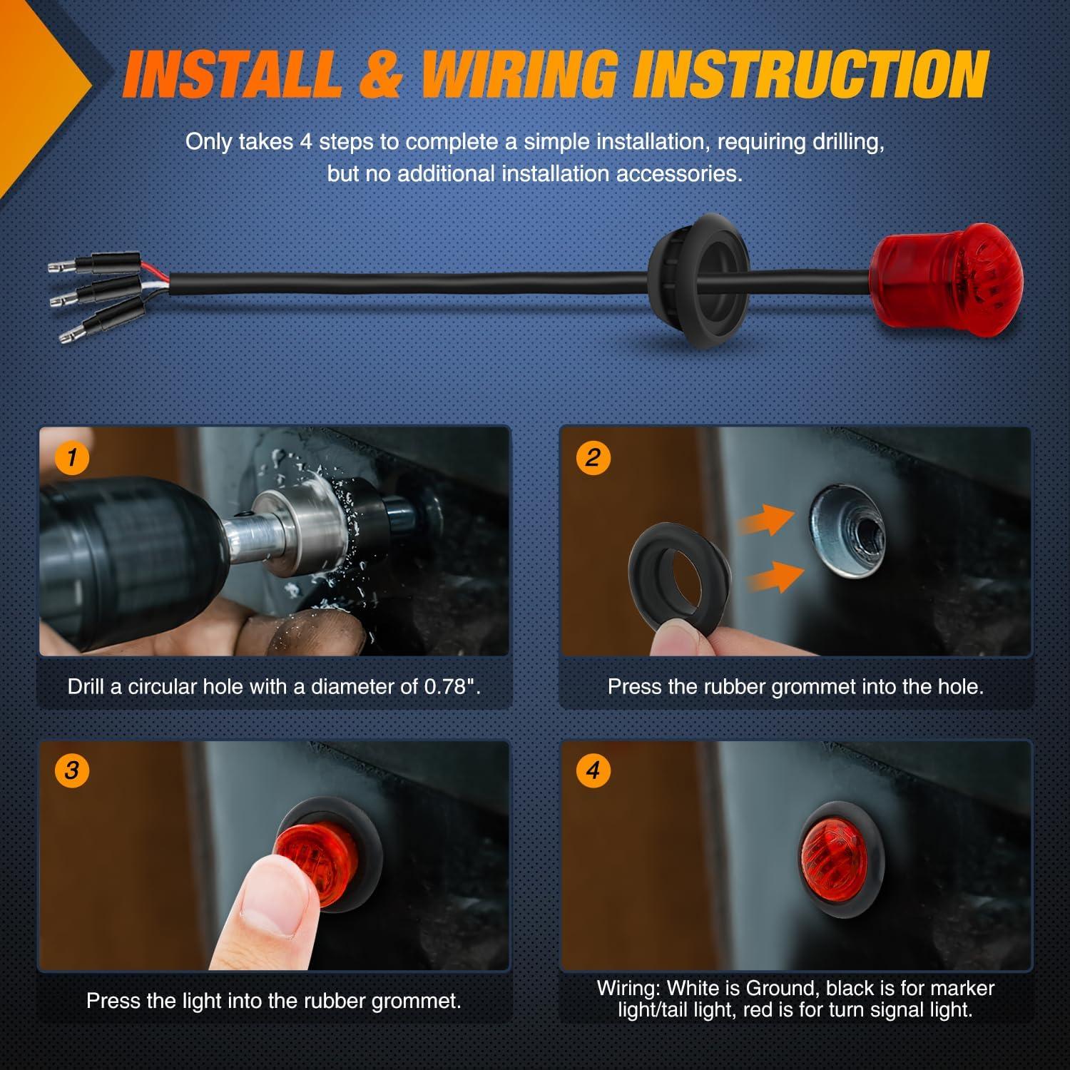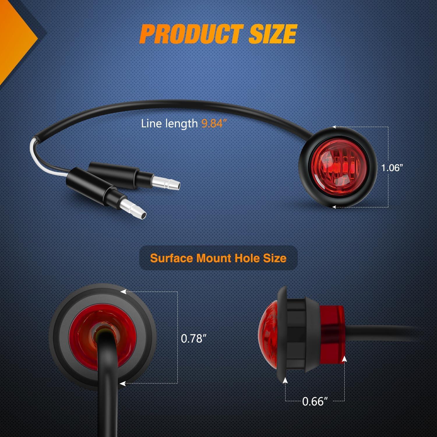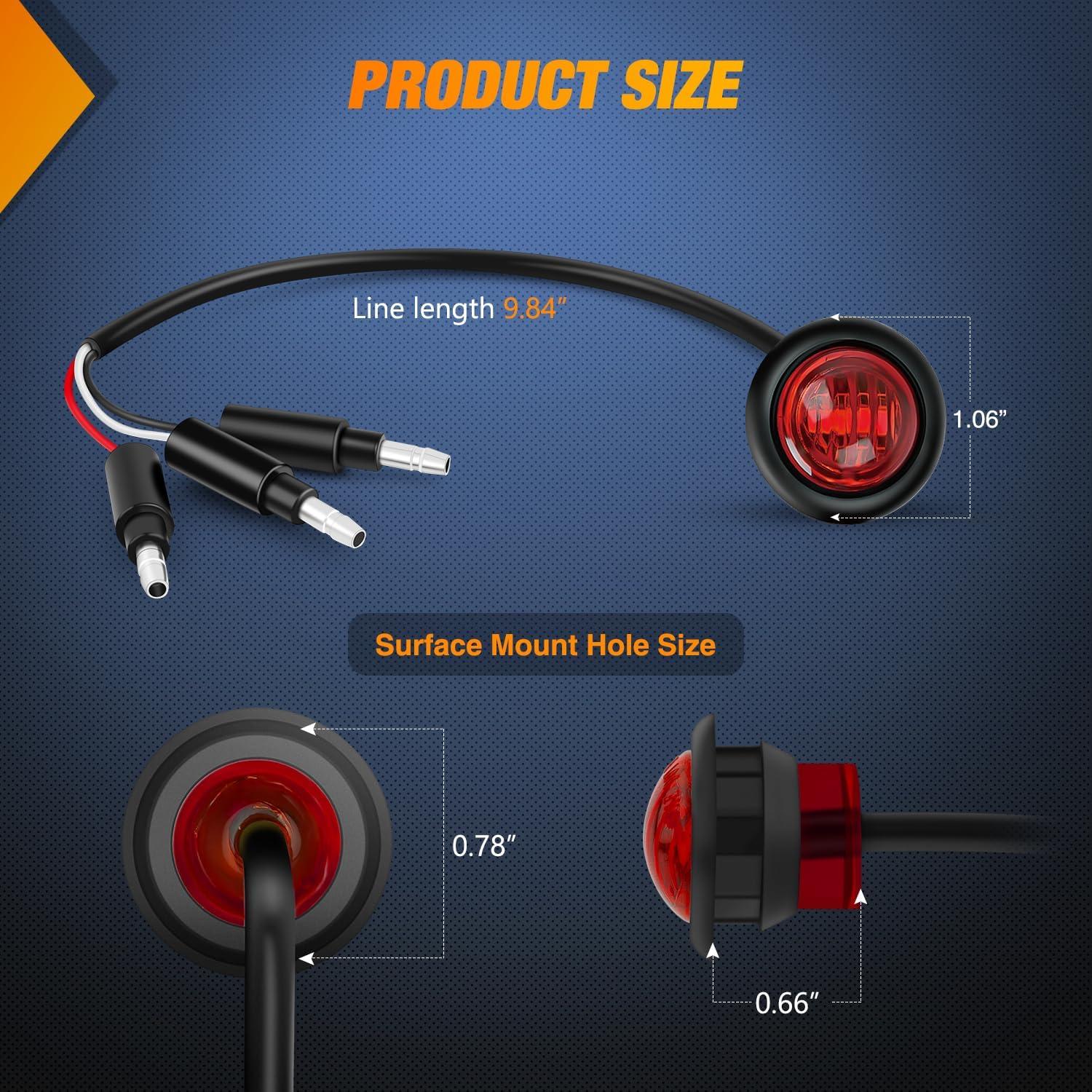 Nilight TL-03 10 PCS 3/4” Round Clearance LED Front Rear Side Indicator Bullet Marker Light for Truck RV Car Bus Trailer Van Caravan Boat (12V, Amber)(Amber Red 10Pcs)