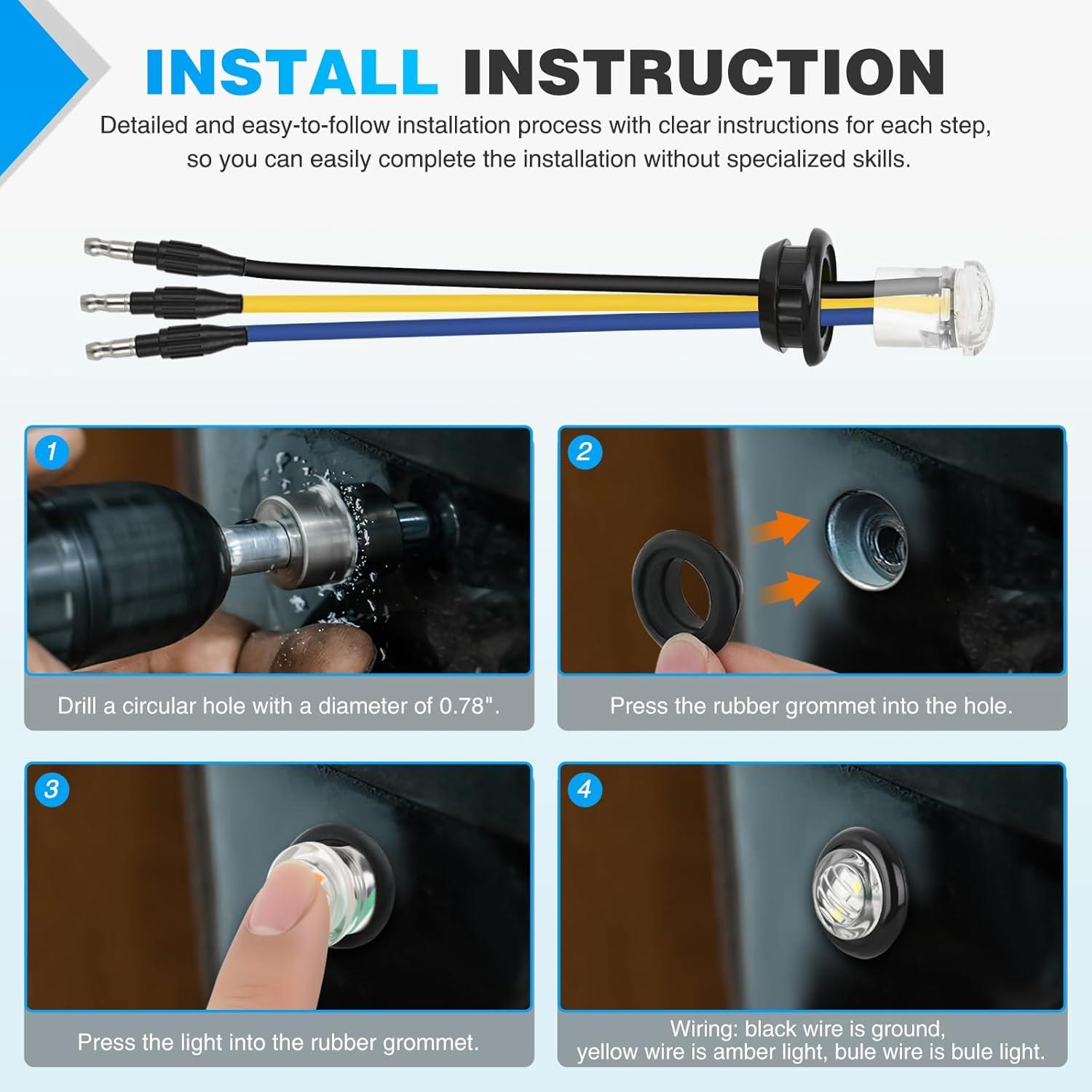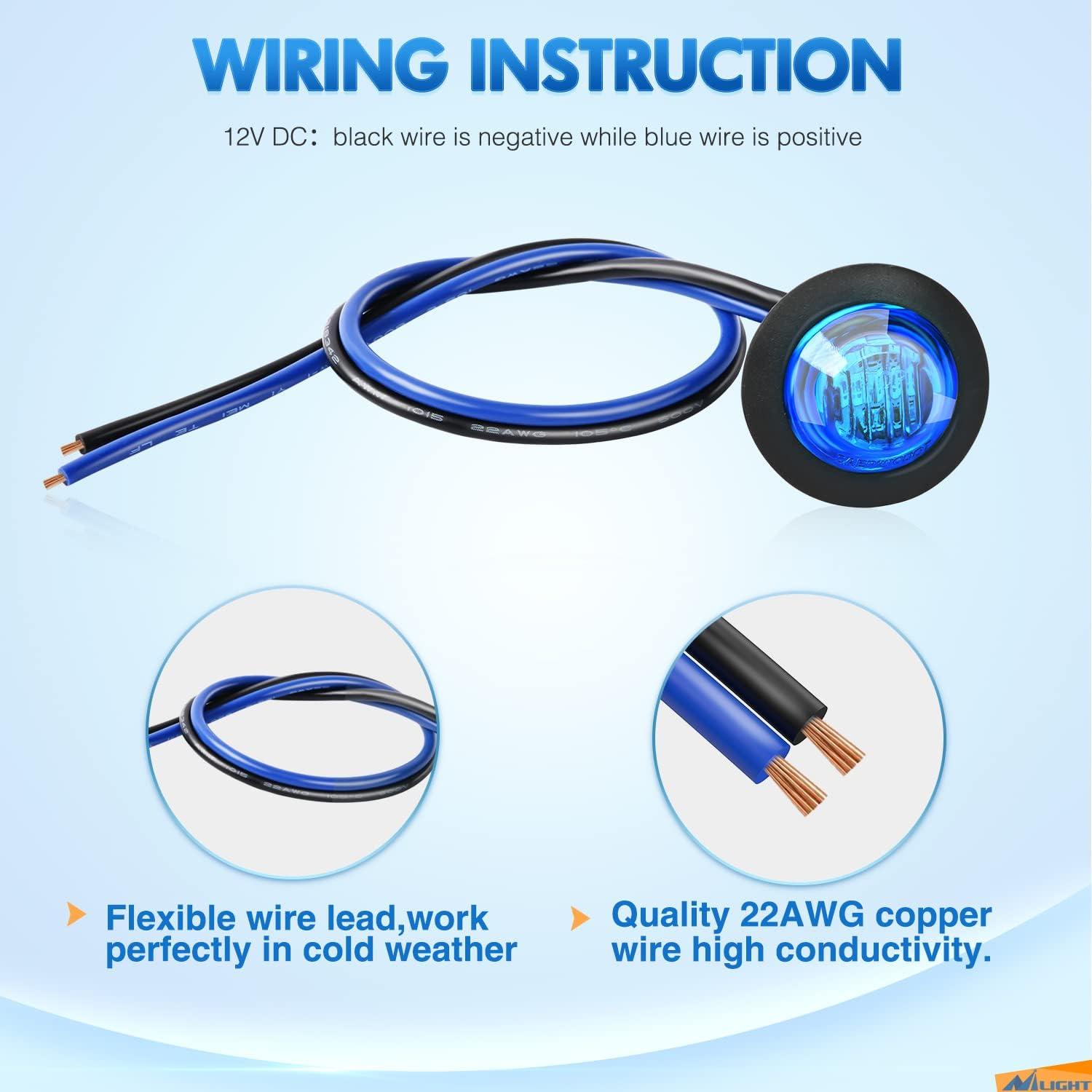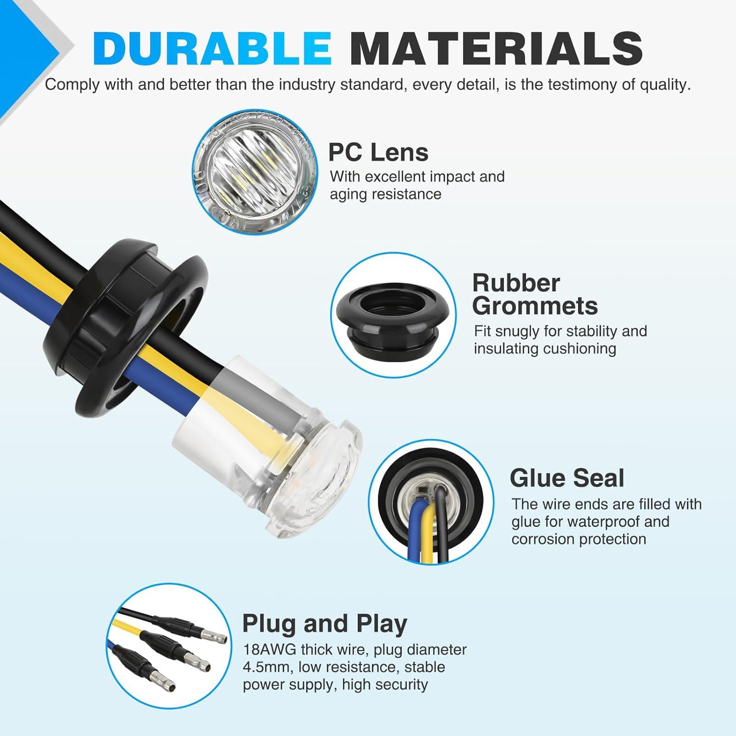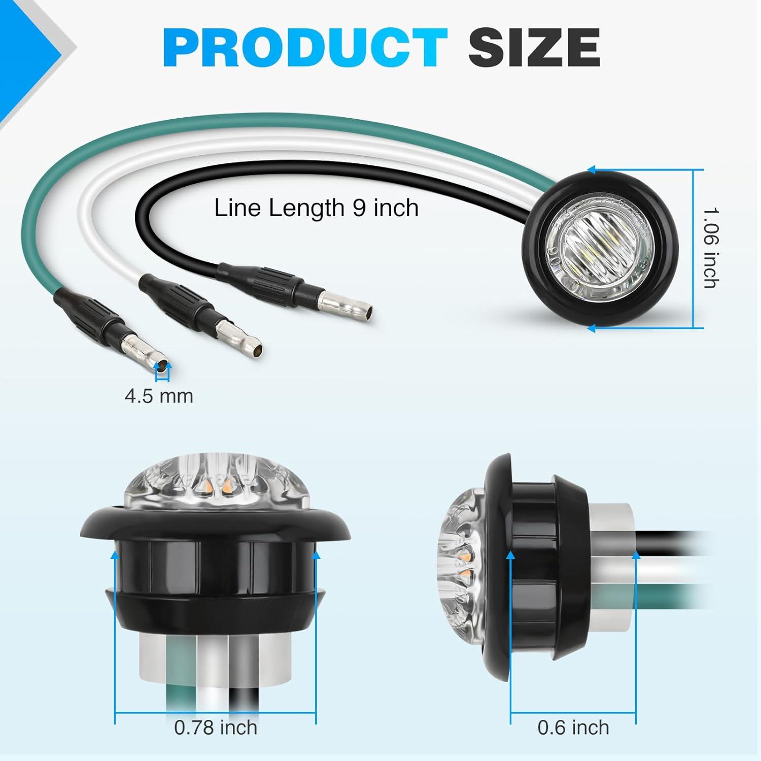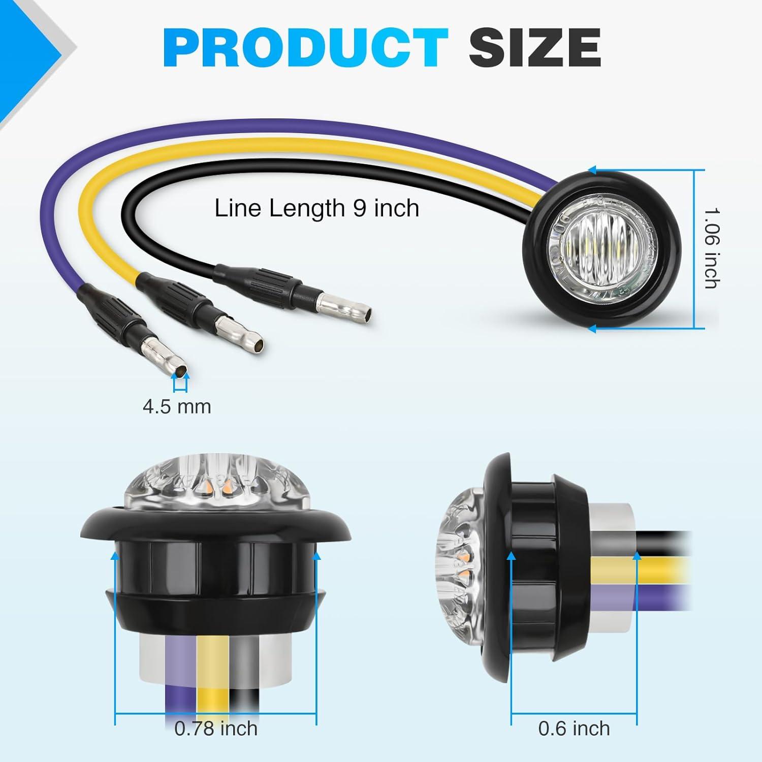 Nilight TL-03 10 PCS 3/4” Round Clearance LED Front Rear Side Indicator Bullet Marker Light for Truck RV Car Bus Trailer Van Caravan Boat (12V, Amber)(Blue White 10Pcs)