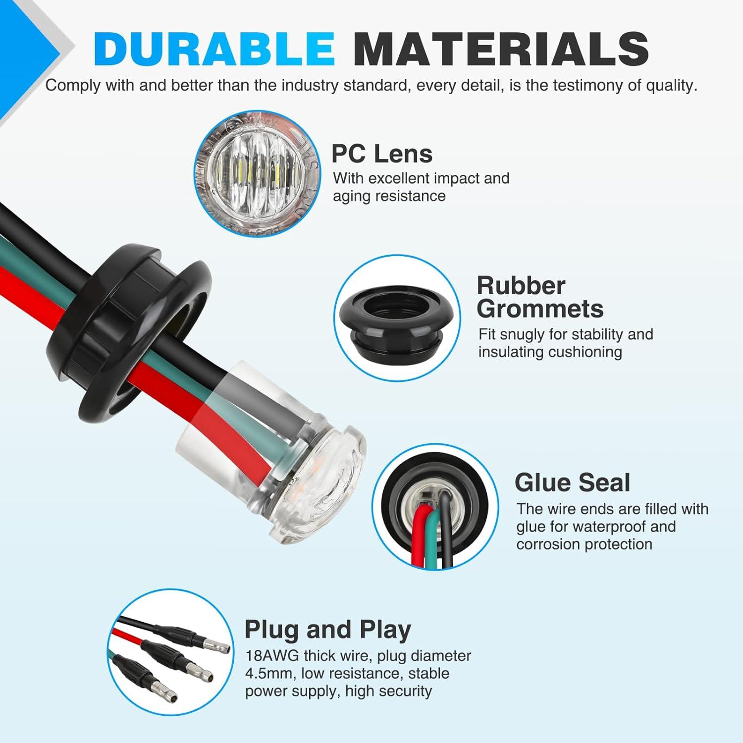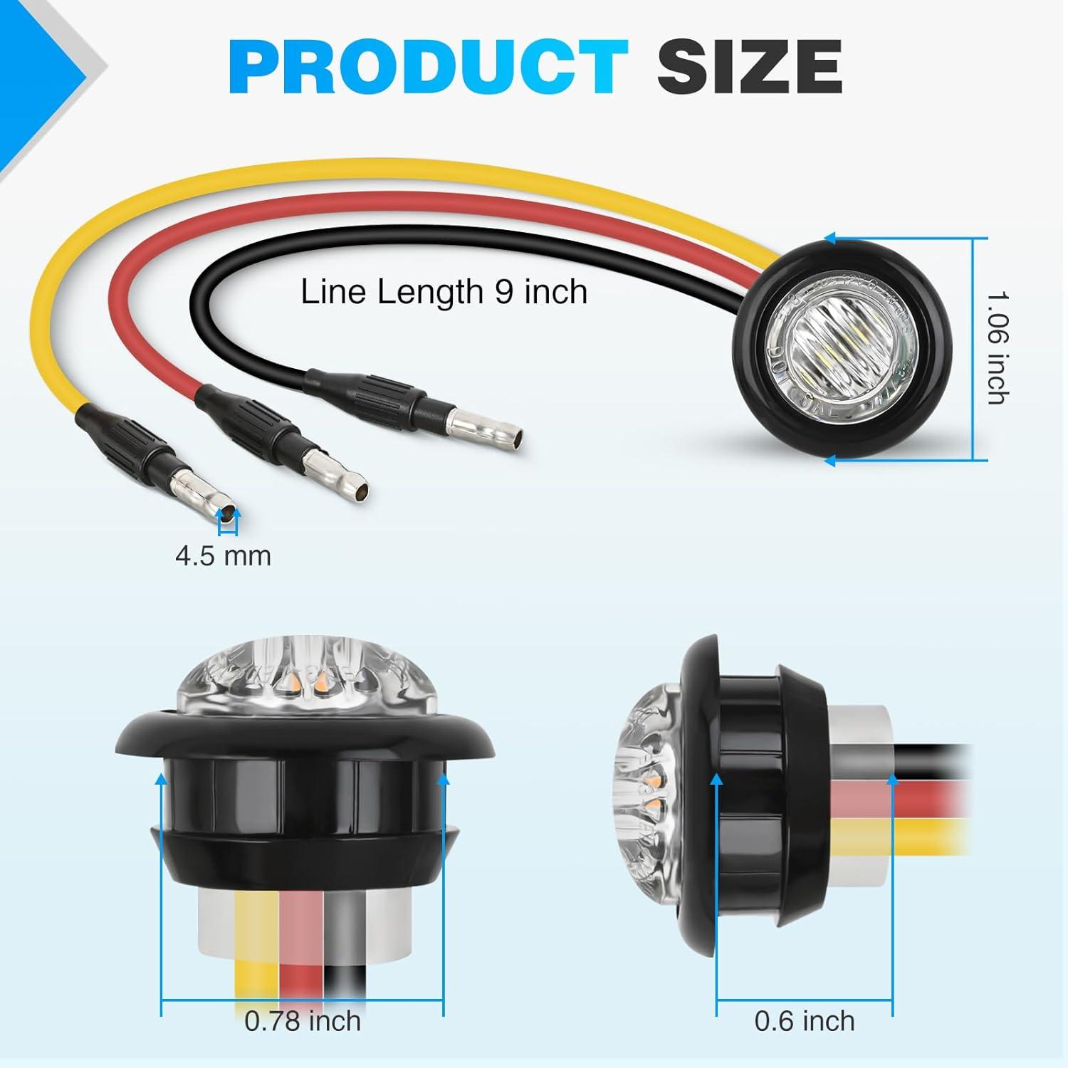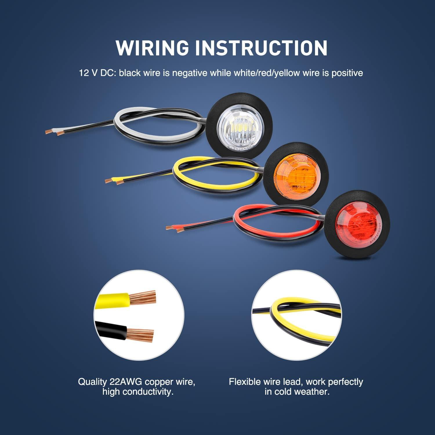 Nilight TL-03 10 PCS 3/4” Round Clearance LED Front Rear Side Indicator Bullet Marker Light for Truck RV Car Bus Trailer Van Caravan Boat (12V, Amber)(30Pcs Amber Red White)