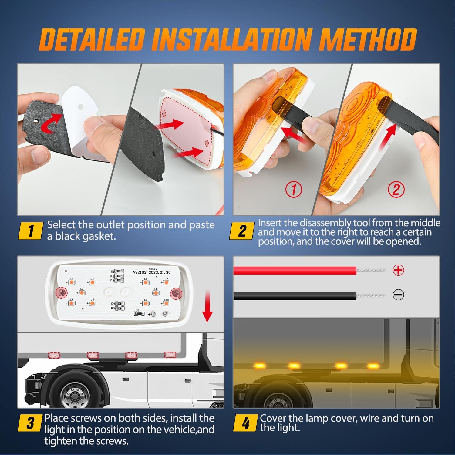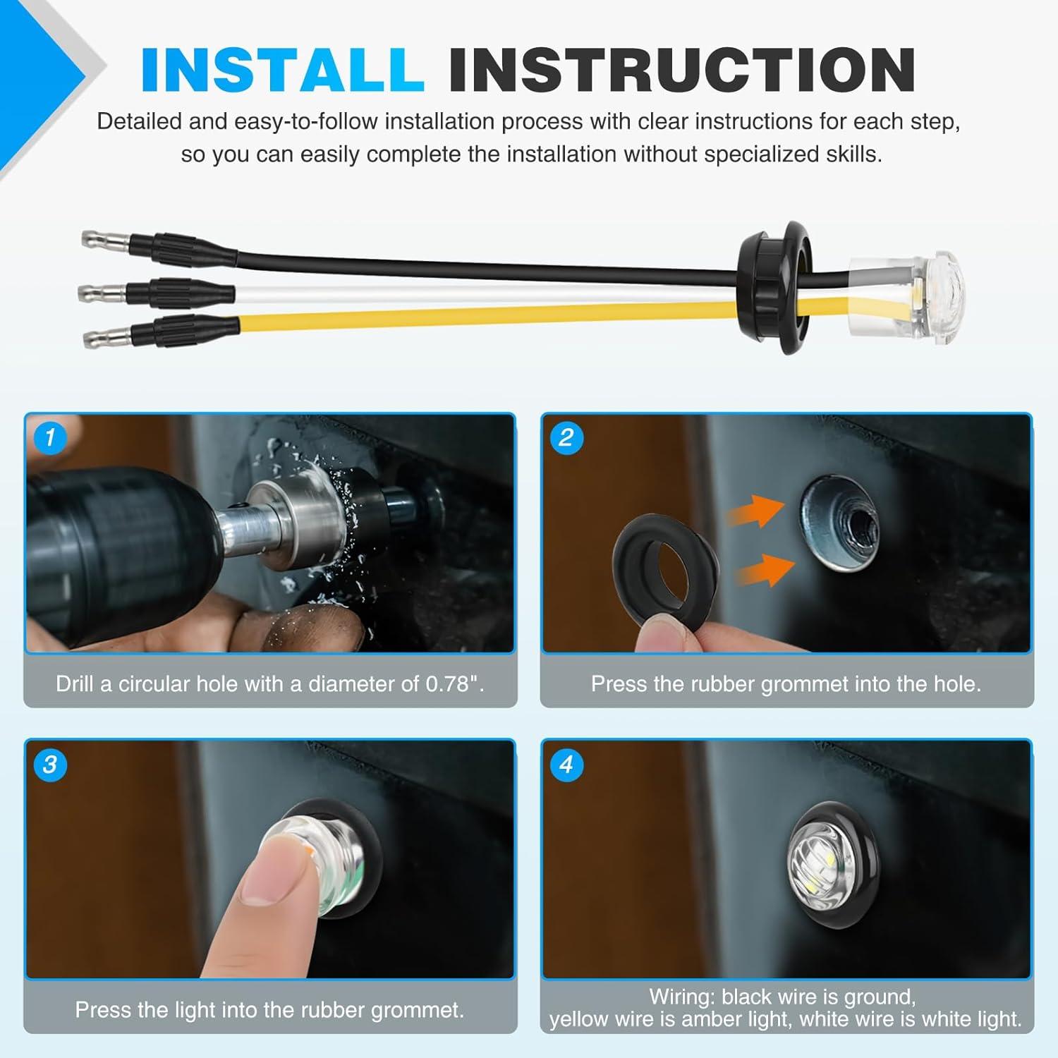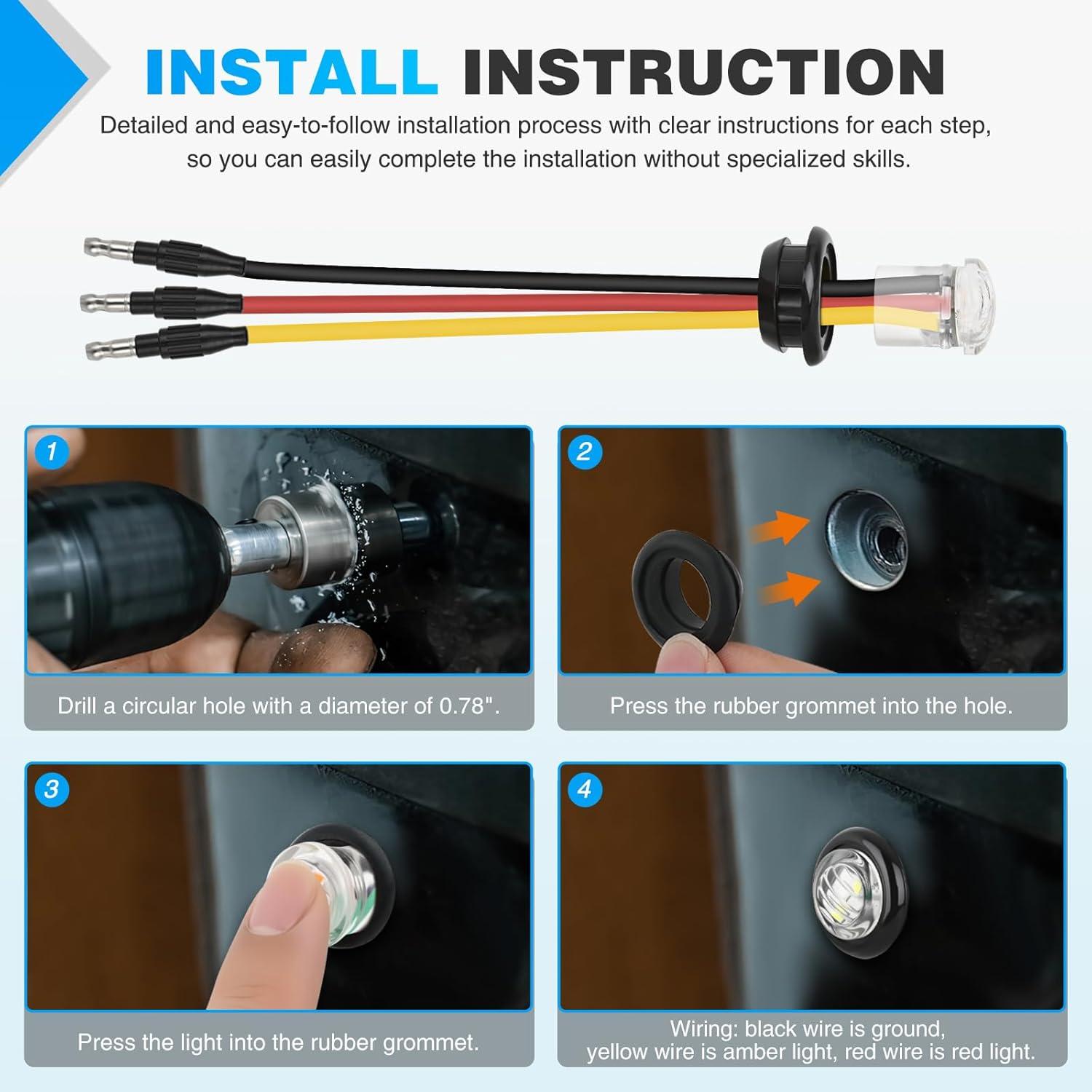 Nilight TL-03 10 PCS 3/4” Round Clearance LED Front Rear Side Indicator Bullet Marker Light for Truck RV Car Bus Trailer Van Caravan Boat (12V, Amber)(Amber White 10Pcs)