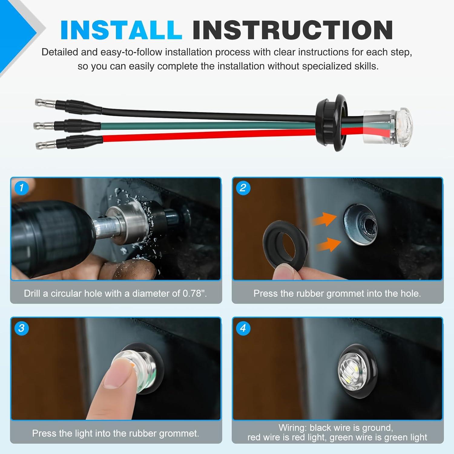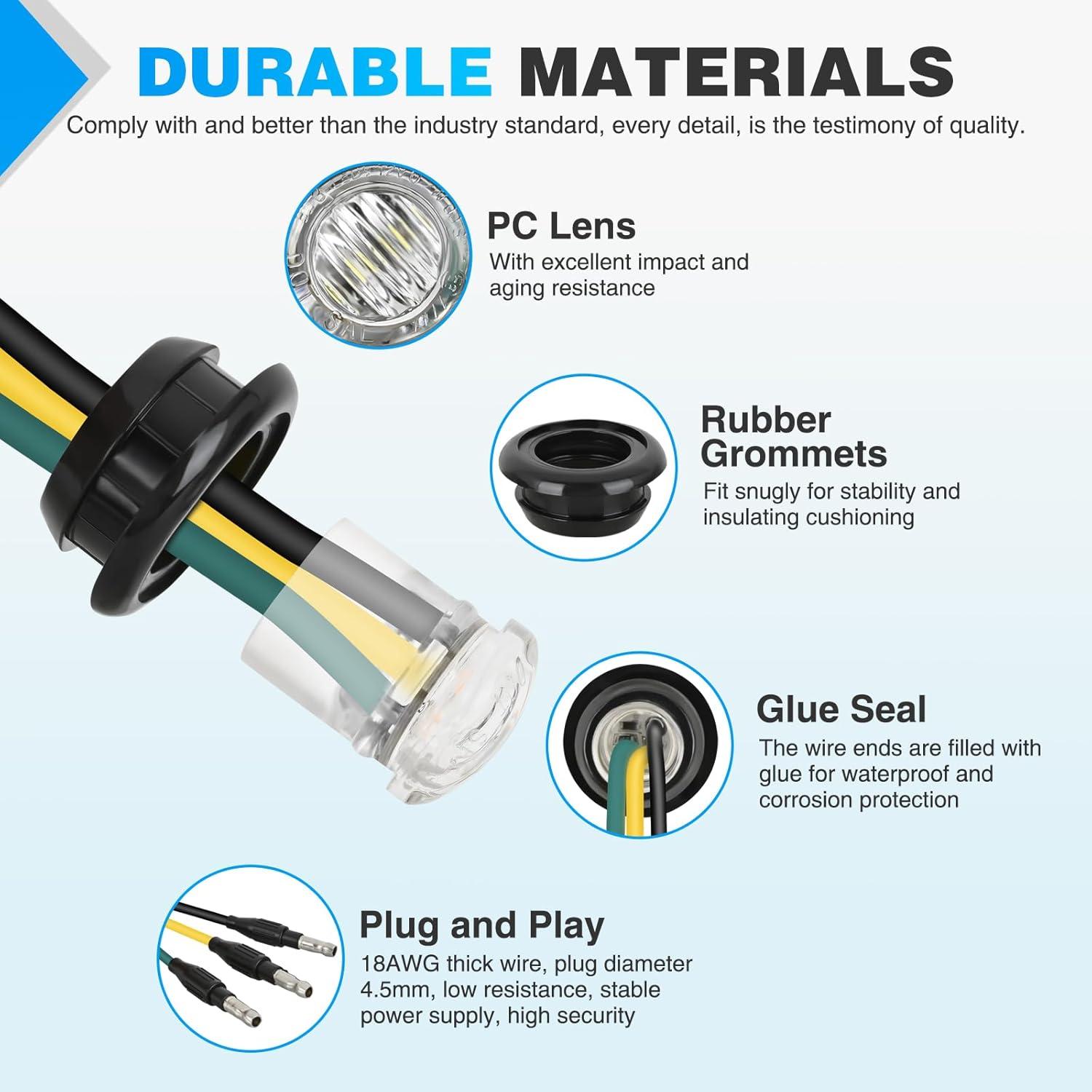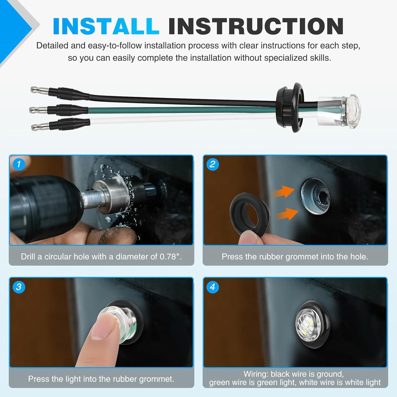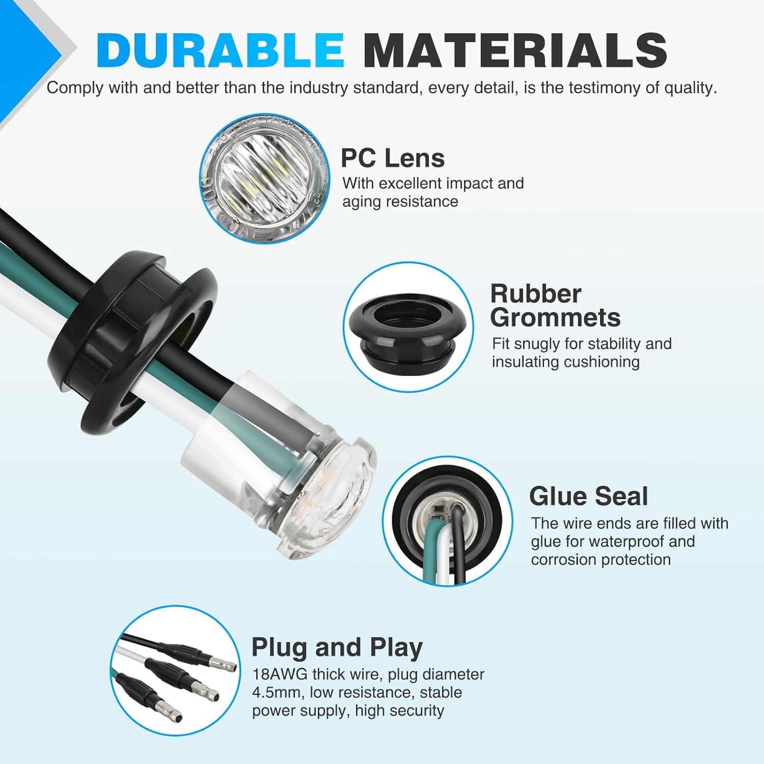 Nilight TL-03 10 PCS 3/4” Round Clearance LED Front Rear Side Indicator Bullet Marker Light for Truck RV Car Bus Trailer Van Caravan Boat (12V, Amber)(Green White 10Pcs)