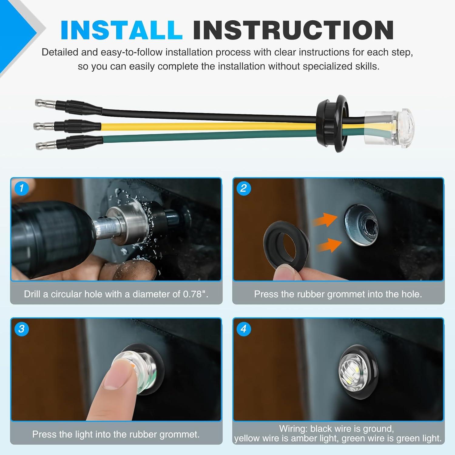 Nilight TL-03 10 PCS 3/4” Round Clearance LED Front Rear Side Indicator Bullet Marker Light for Truck RV Car Bus Trailer Van Caravan Boat (12V, Amber)(Amber Green 10Pcs)