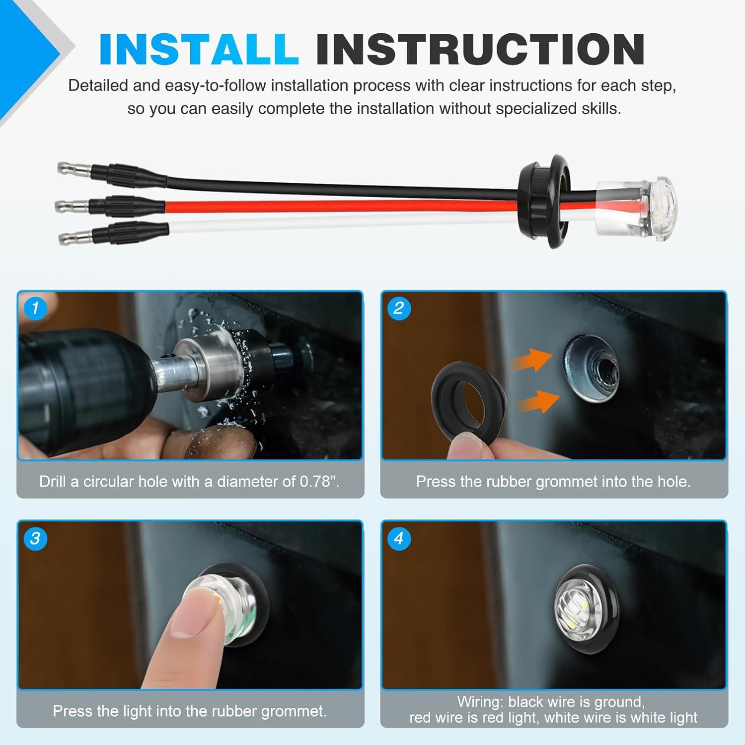 Nilight TL-03 10 PCS 3/4” Round Clearance LED Front Rear Side Indicator Bullet Marker Light for Truck RV Car Bus Trailer Van Caravan Boat (12V, Amber)(Red White 10Pcs)