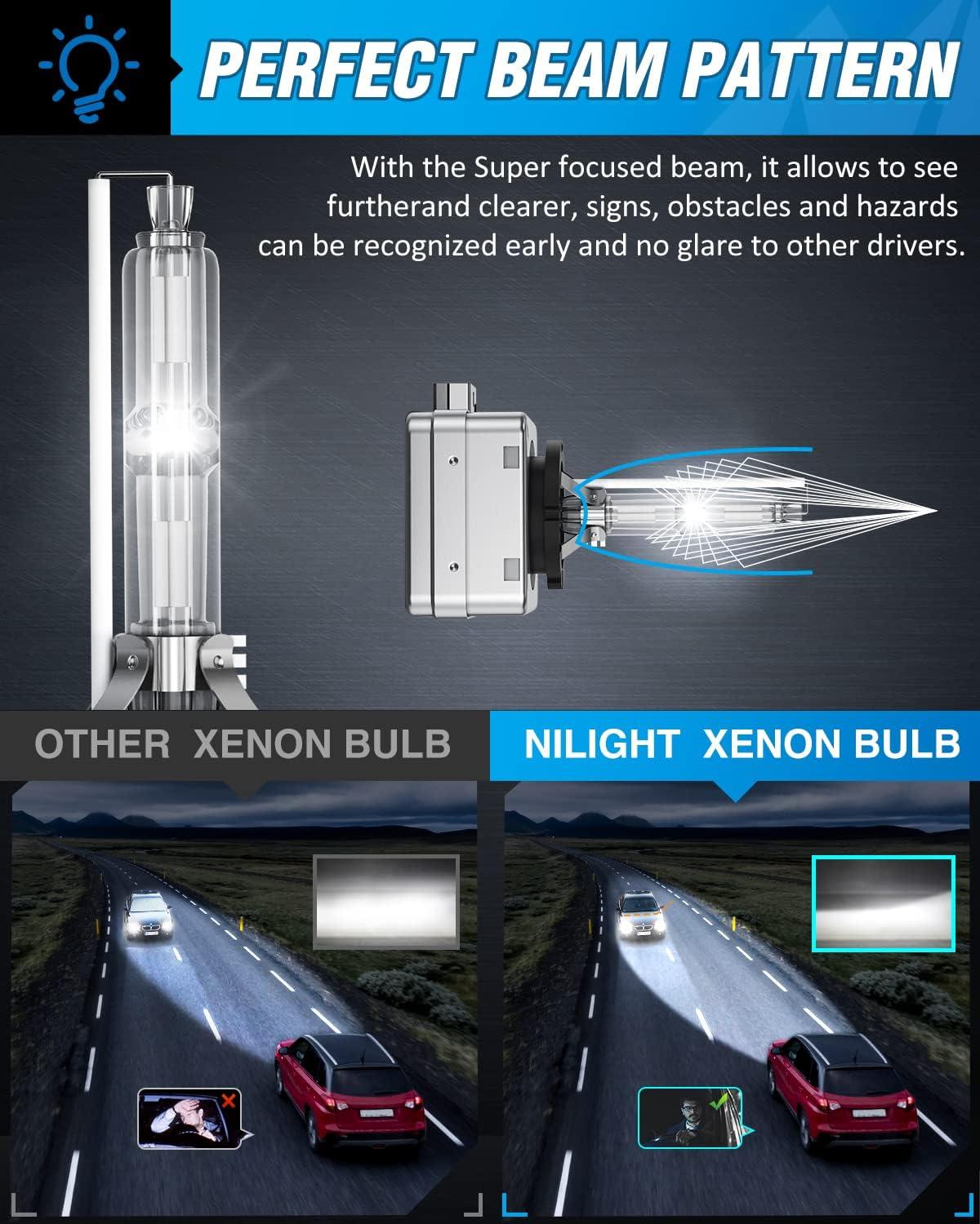 Nilight D3S HID Headlight Bulbs, Super Bright D3S HID Bulb 6000K Diamond White High Low Beam HID Xenon Bulbs Replacement, 2-Pack