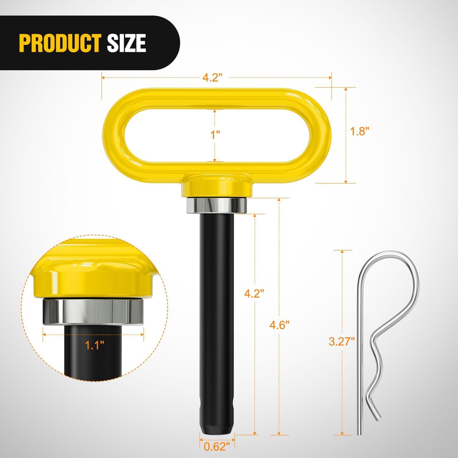 Nilight 1/2 Inch Diameter Heavy Duty Ultra Strong Neodymium Magnet Trailer Hitch Pin Green for Lawn Mower, Tractor, Towing Cargo, ATV Trailer(5/8 Inch Trailer Hitch Pin(Yellow))