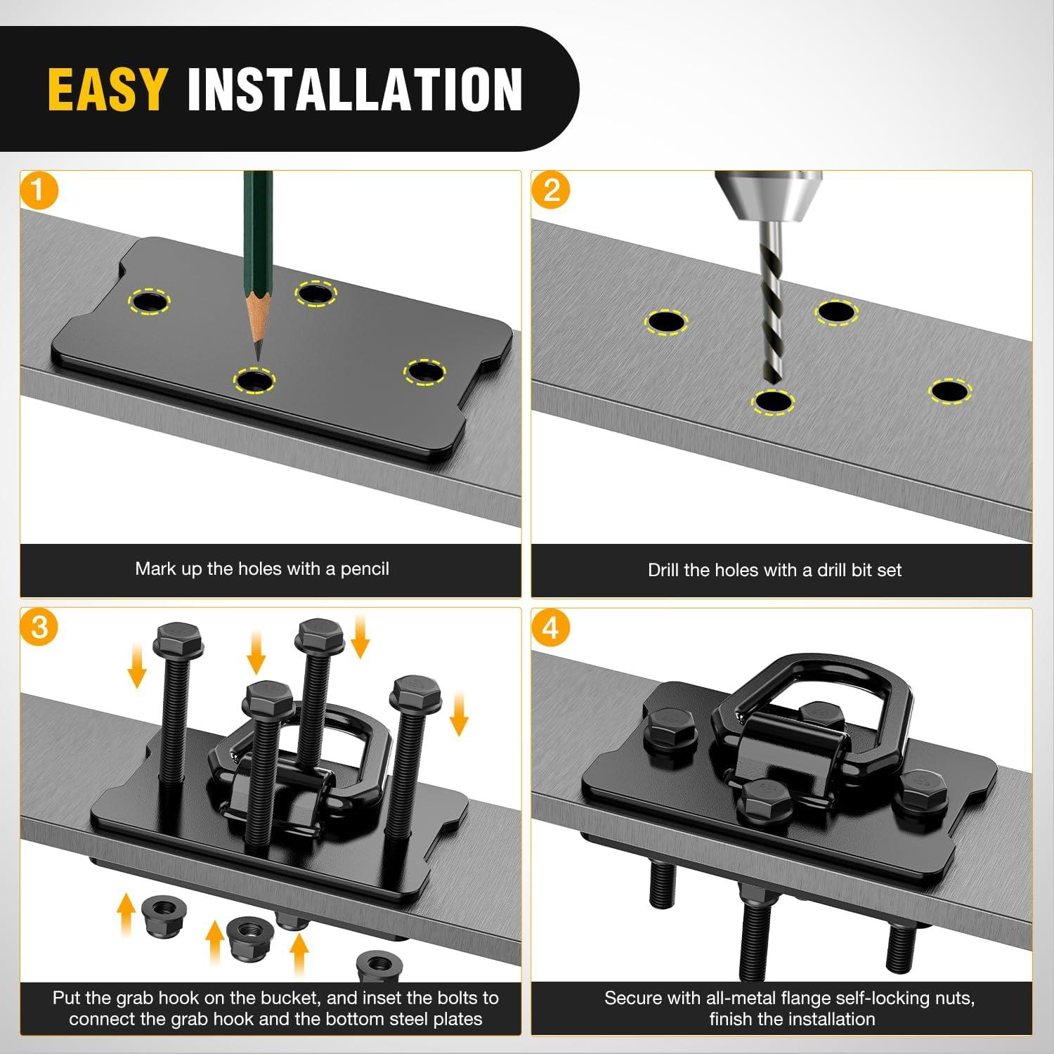 Nilight 2Pcs 1/2″ D Rings for Trailers Heavy Duty Trailer Tie Down Rings, Incl. Mounting Hardware, Forged Steel Bolt-On Grab with Back Plates Compatible with Tractor RV UTV Truck, Max 12000Lbs, Black