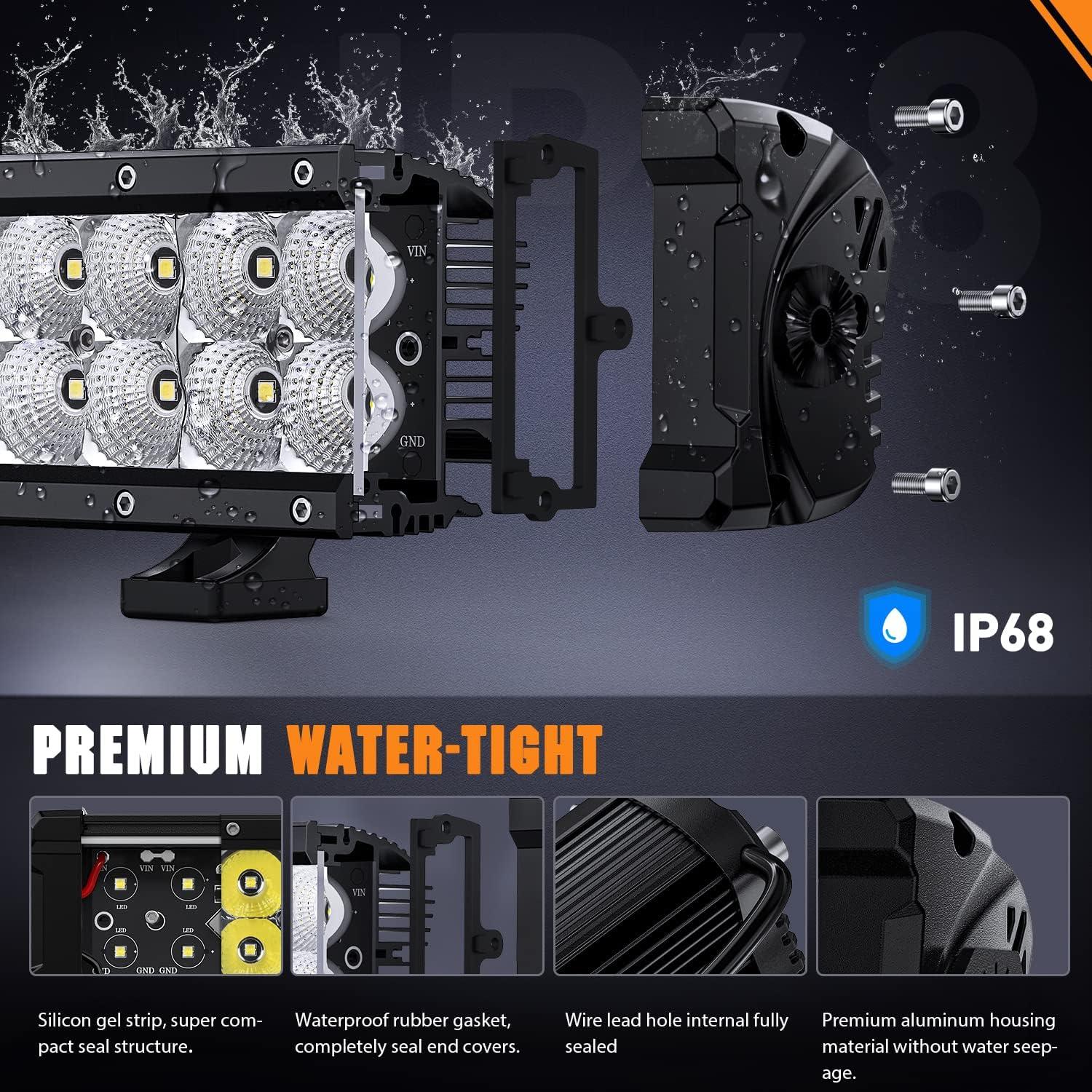 Nilight 18030C-A Amber 2PCS 5Inch 72W Double Row Flood Bar 10800Lumens Driving Fog Led Off Road Lights for Trucks Jeep ATV UTV SUV Boat Marine,2 Years Warranty, Yellow,White(5.5Inch Side Shooter Light + Wiring harness)
