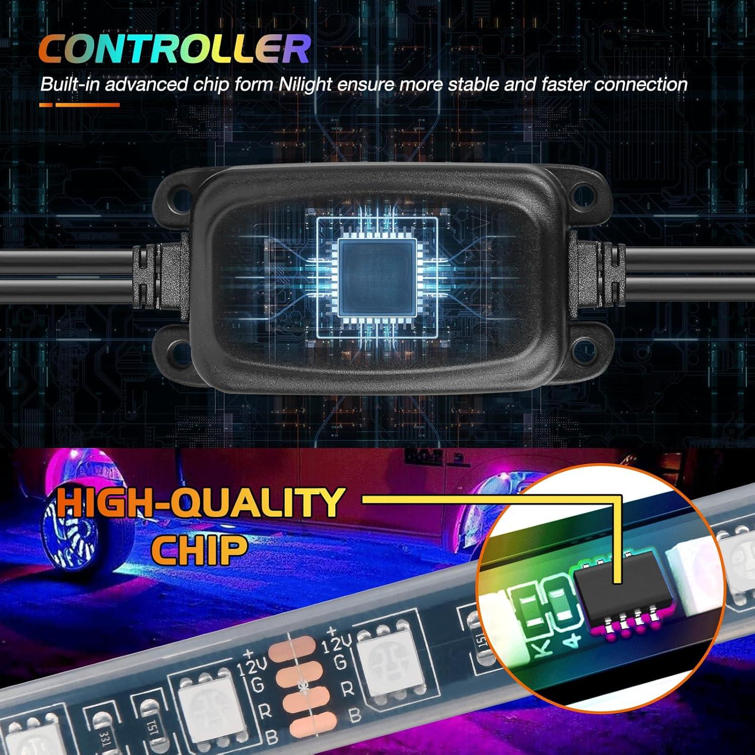 Nilight 4Pcs Car Underglow Neon Accent Strip Lights 252 LEDs RGB 8 Color Sound Active Function Music Mode with Wireless Remote Control Underbody Light Strips for Cars Van SUV Truck(Underglow Light Strip RGB)