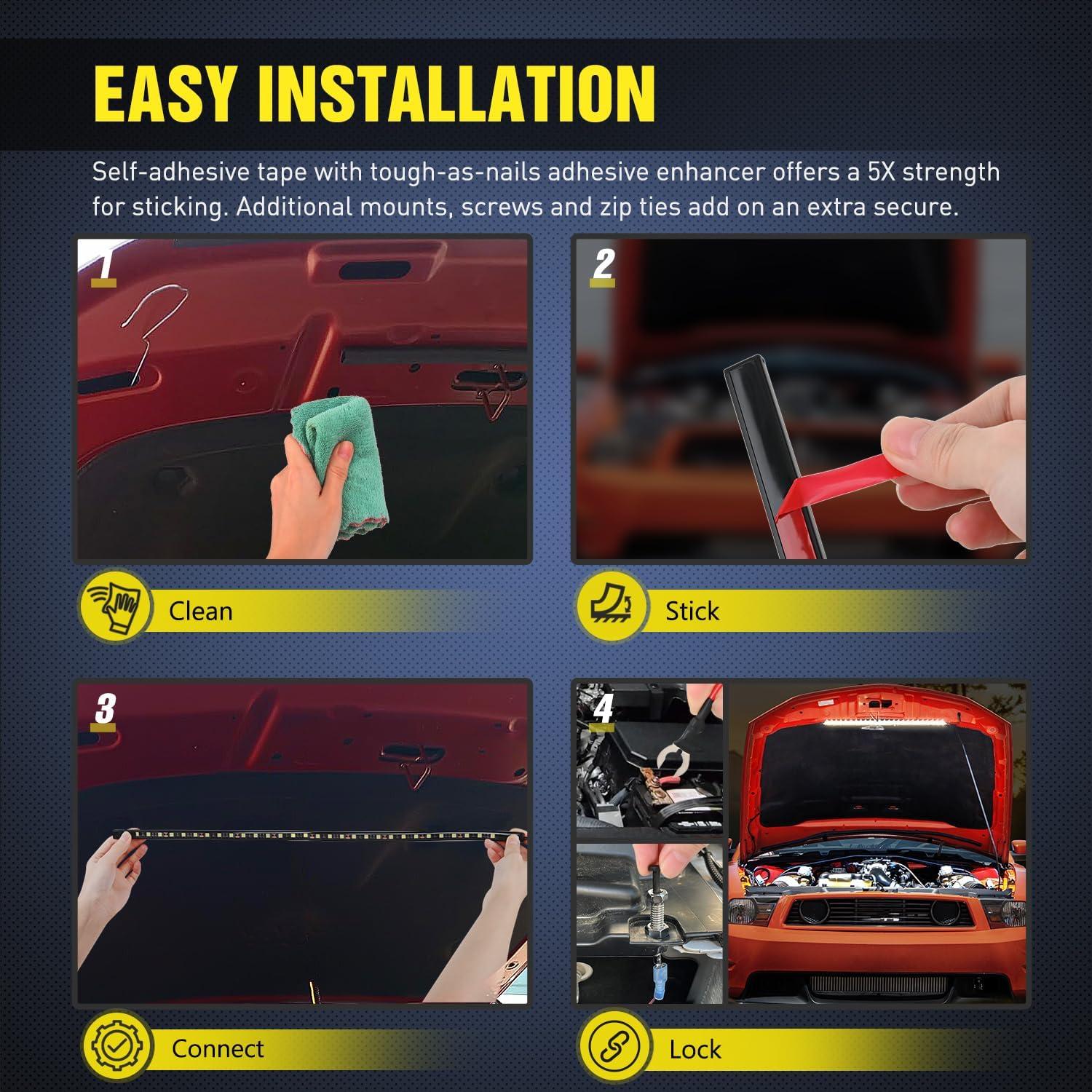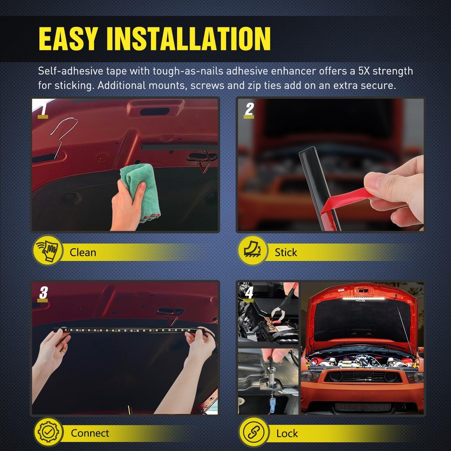 Nilight Under Hood Light Strip 21 LED Waterproof Underhood Work Lights with On/Off Switch Blade Fuse Engine Bay Repair Lamp White 12V for Car Truck SUV(for Ram Dakota Charger & Wrangler Grand Cherokee)