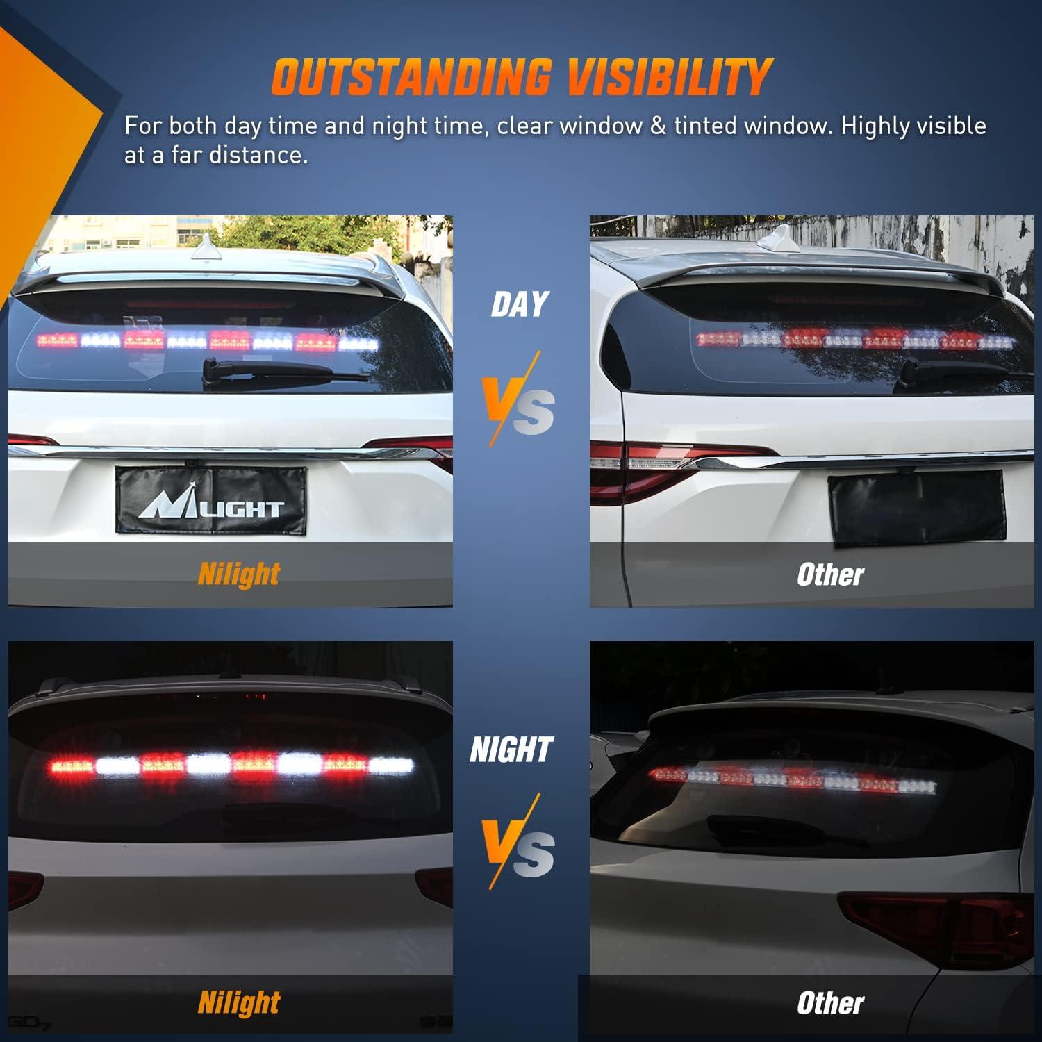 Nilight Traffic Advisor Emergency Strobe Light Bar 35Inch 32LED 21 Flash Patterns Directional Safety Warning Lights with Cigar Lighter on Trucks Police Cars Construction Vehicles(Red Mix White)