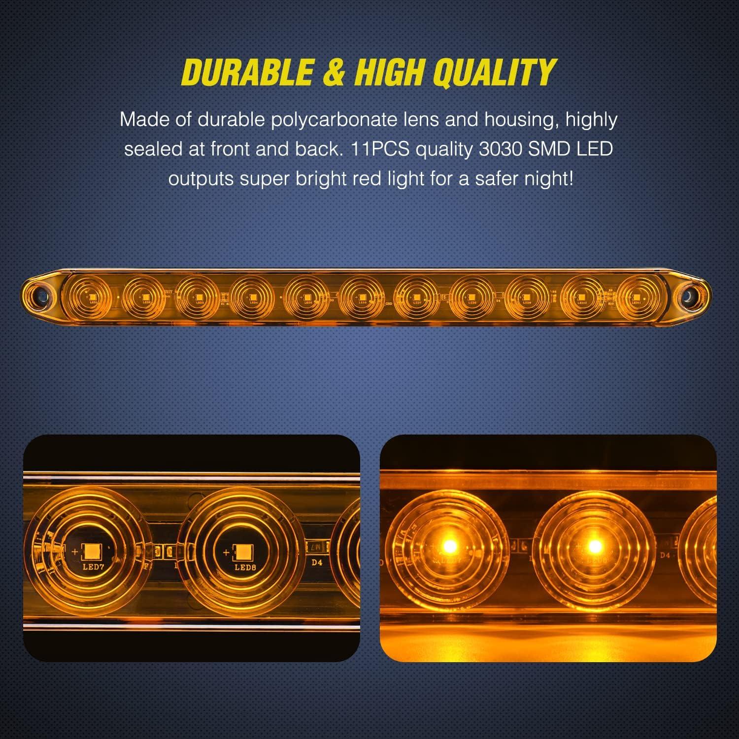 Nilight Trailer Light 16Inch 12 LED Red Running Brake Sequential Turn Signals Lights Waterproof Rear Maker ID Bar for 12V Boat Truck RV(Amber 16Inch 11 LED)