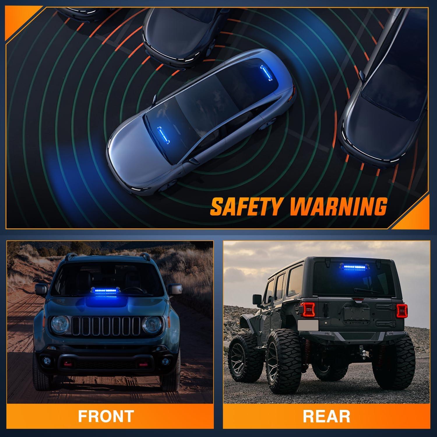 Nilight 12LED Magnetic Wireless Trailer Lights 2PCS Rechargeable Portable Hazard Beacon Warning Light Blue Emergency Strobe Light for Trucks Trailers Vehicles Cars Bus Surface Mount