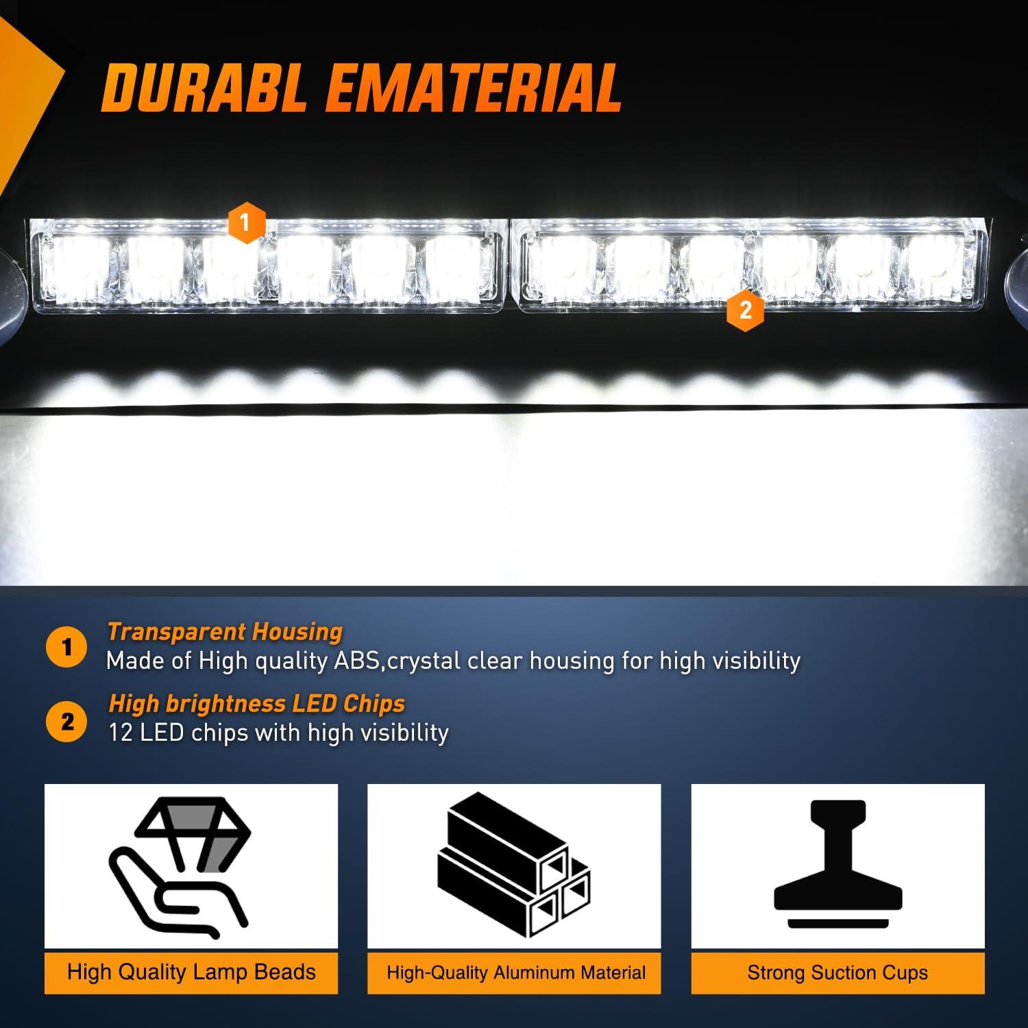 Nilight 12LED Magnetic Wireless Trailer Lights 2PCS Rechargeable Portable Hazard Beacon Warning Light White Emergency Strobe Light for Trucks Trailers Vehicles Cars Bus Surface Mount