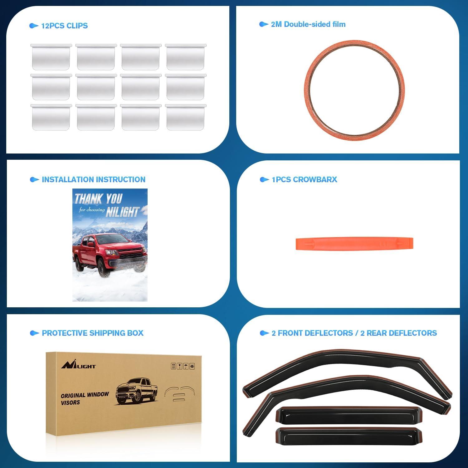 Nilight Durable Rain Guards for Toyota Tacoma Double Cab 2016 2017 2018 2019 2020 2021 2022 2023 Window Deflectors, Vent Window Visors, 4 Pieces(For 2010-2024 Toyota 4Runner)