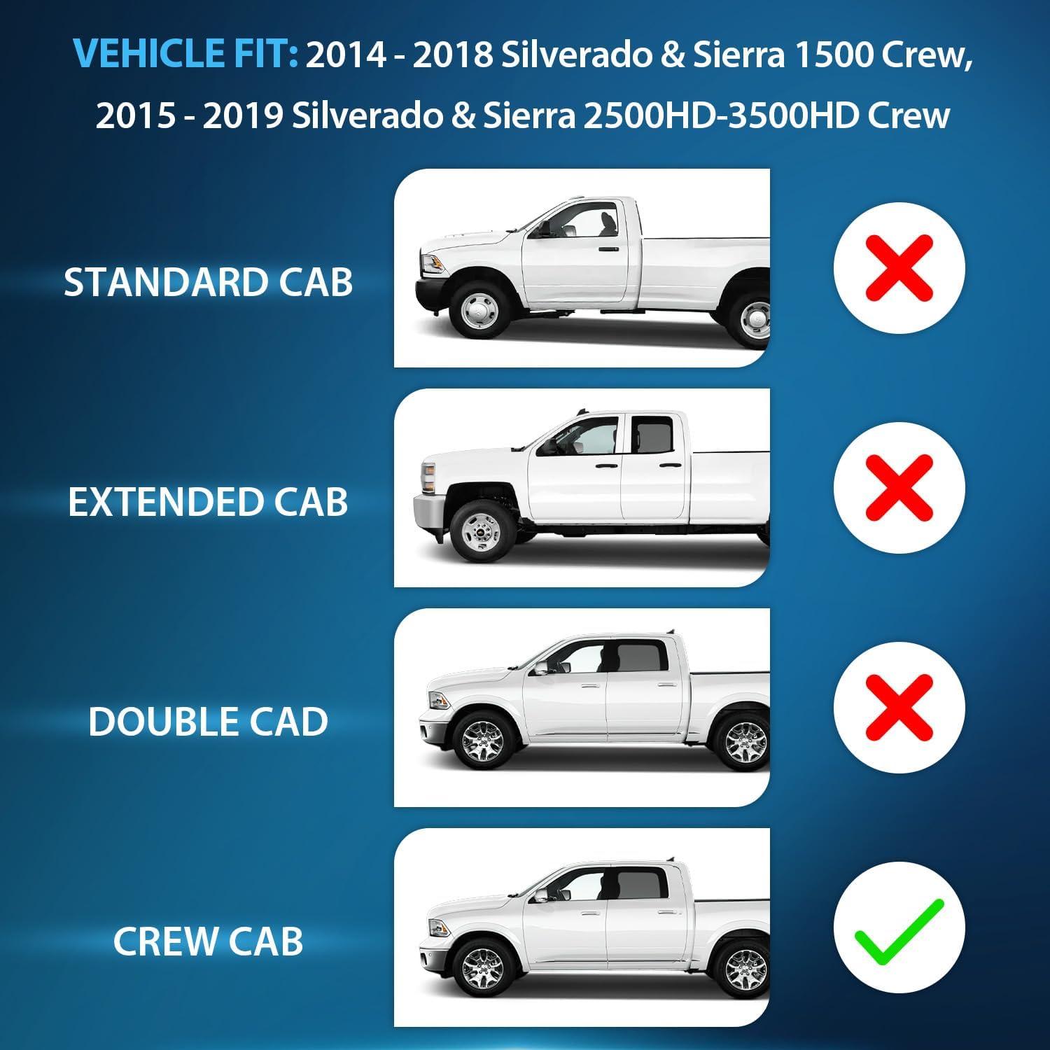Nilight Window Visor Compatible with Chevy Silverado 1500/Avalanche 2007 2008 2009 2010 2011 2012 2013 GMC Sierra 1500/Silverado/Sierra 2500-3500HD Crew Cab Yukon XL in Channel Rain Guards(Silverado/Sierra 1500 Crew Cab 2014-2018)