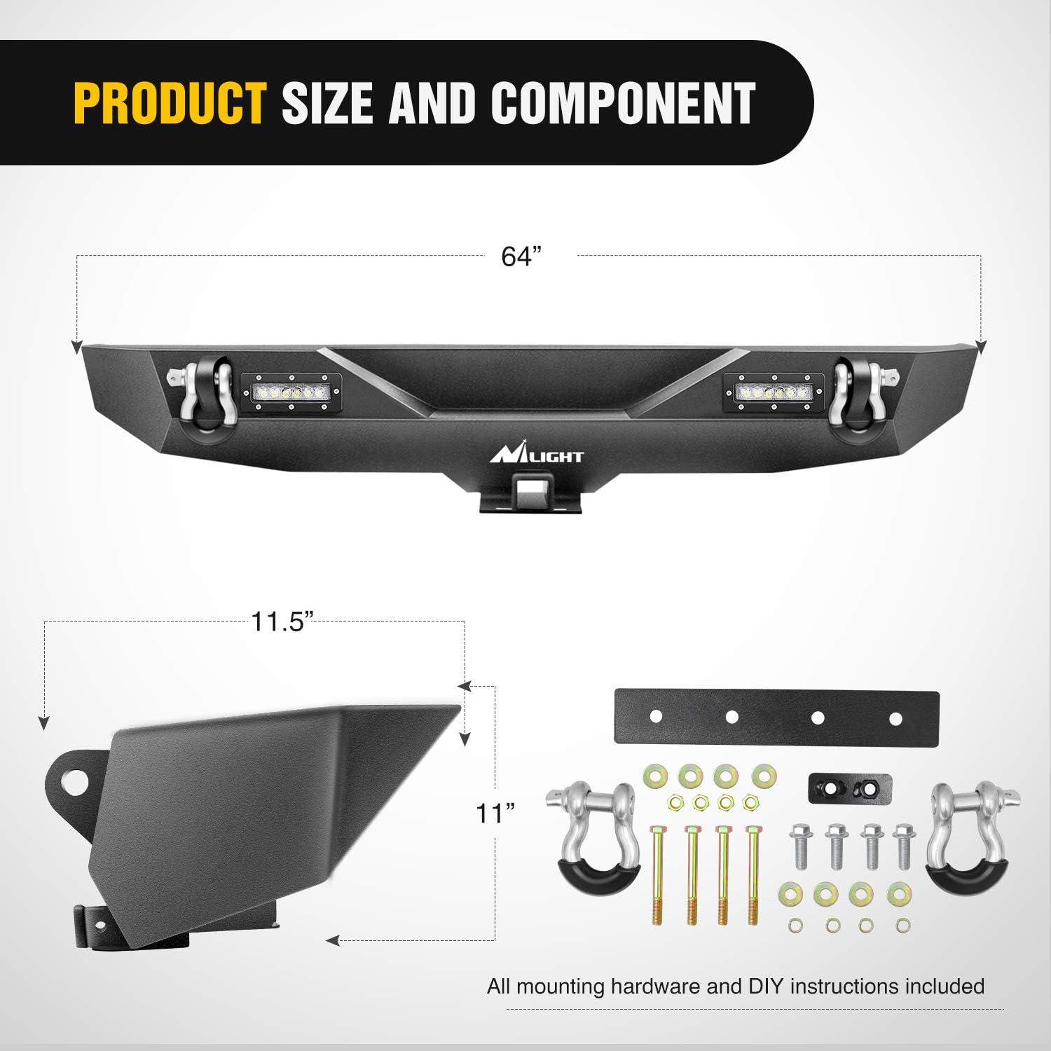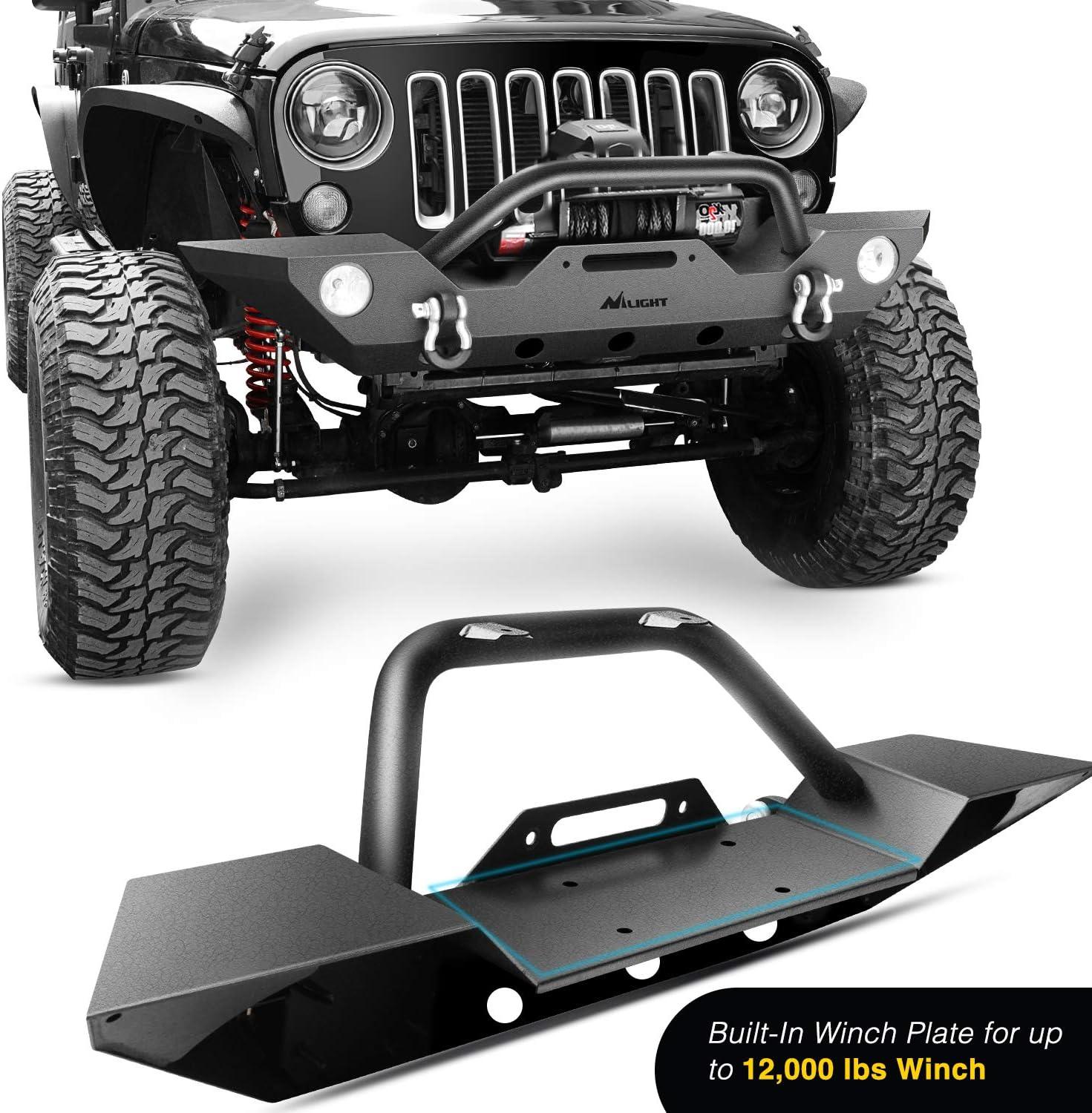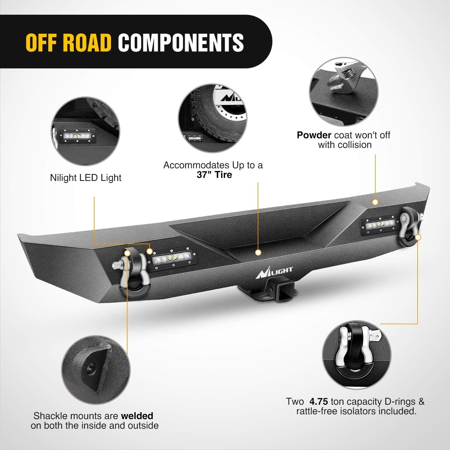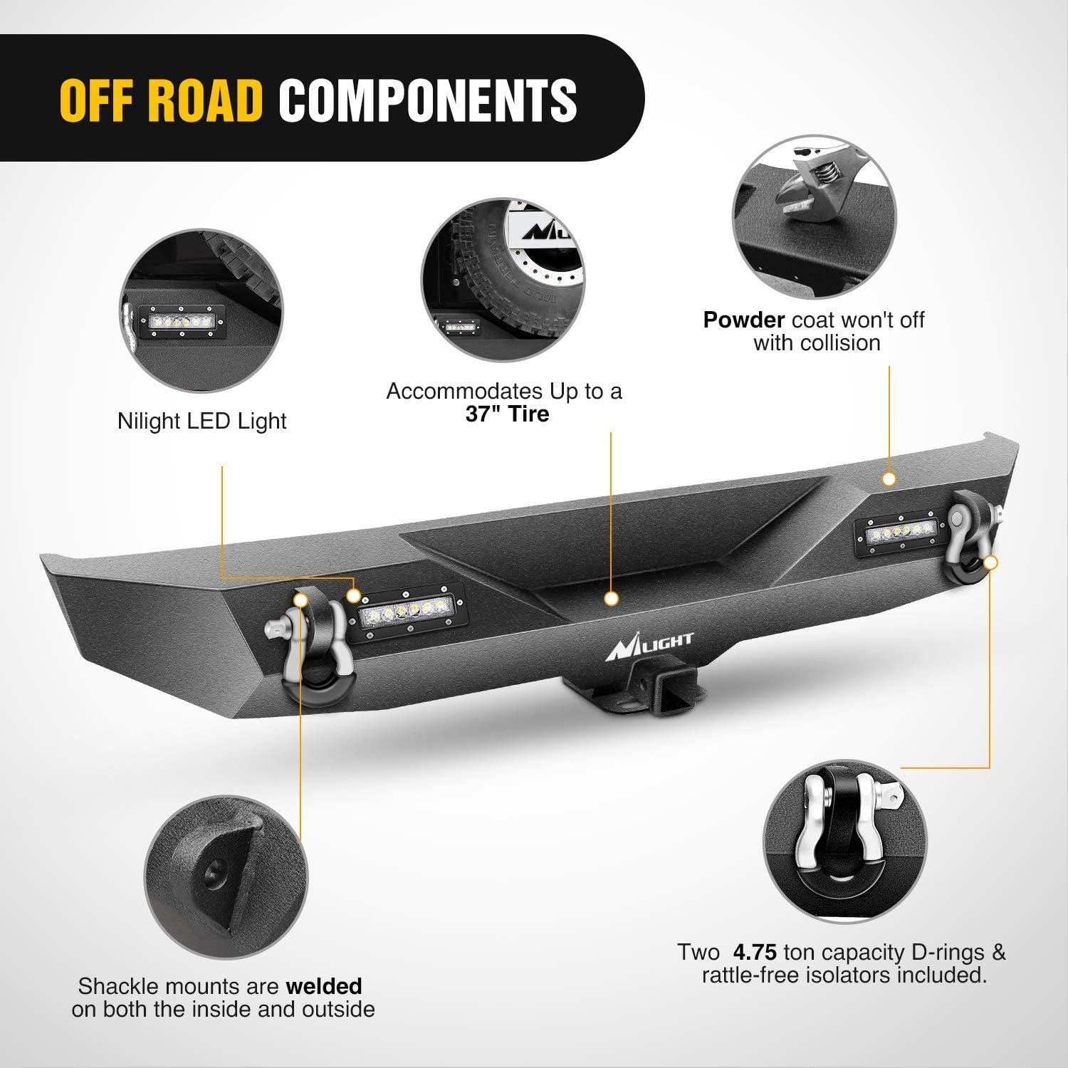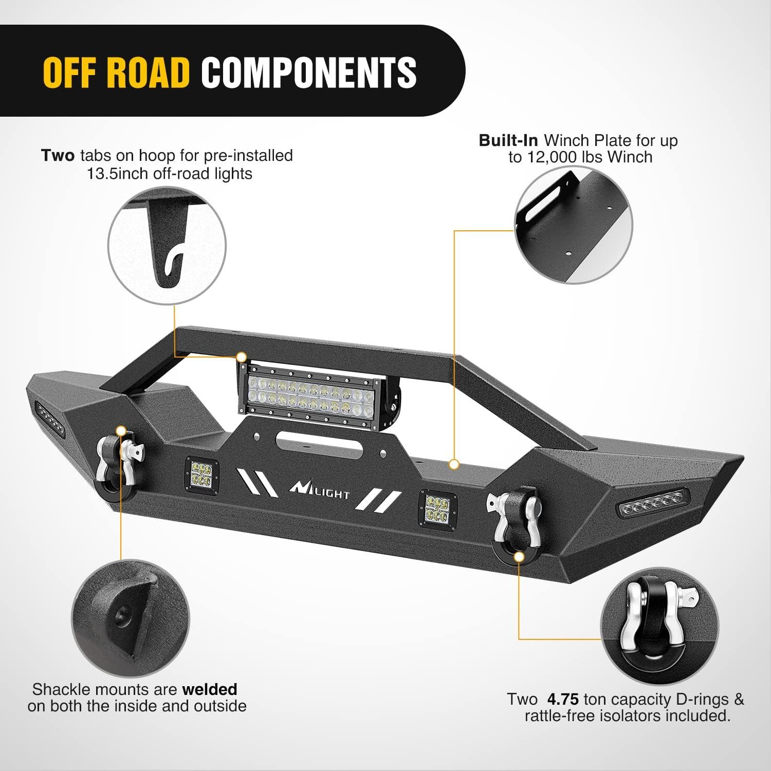 Nilight Front Bumper Compatible for 2007-2008 2009 2010 2011 2012 2013 2014 Toyota FJ Cruiser with Winch Plate Offroad 120W Light Bar 18w LED Pods 2 D-Rings