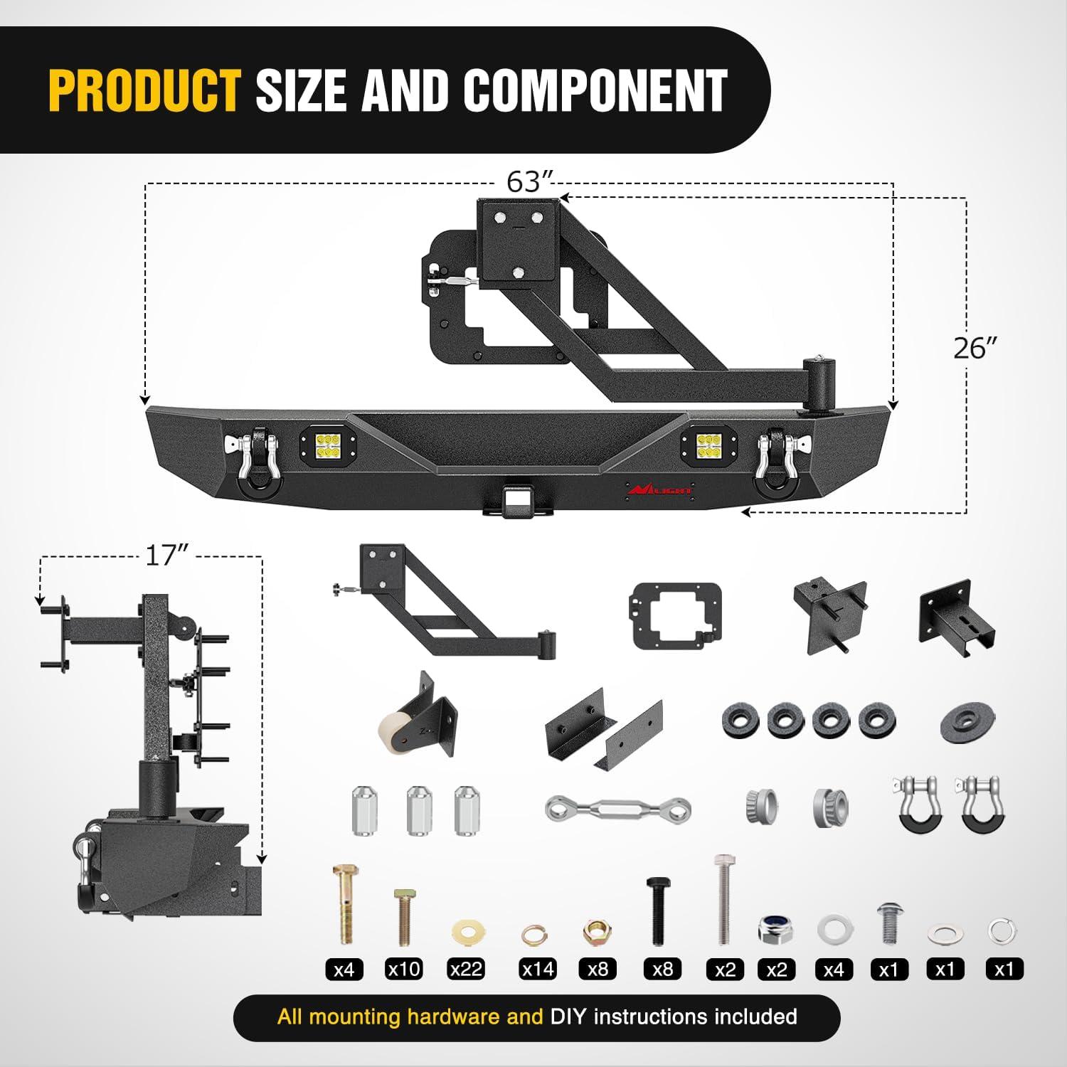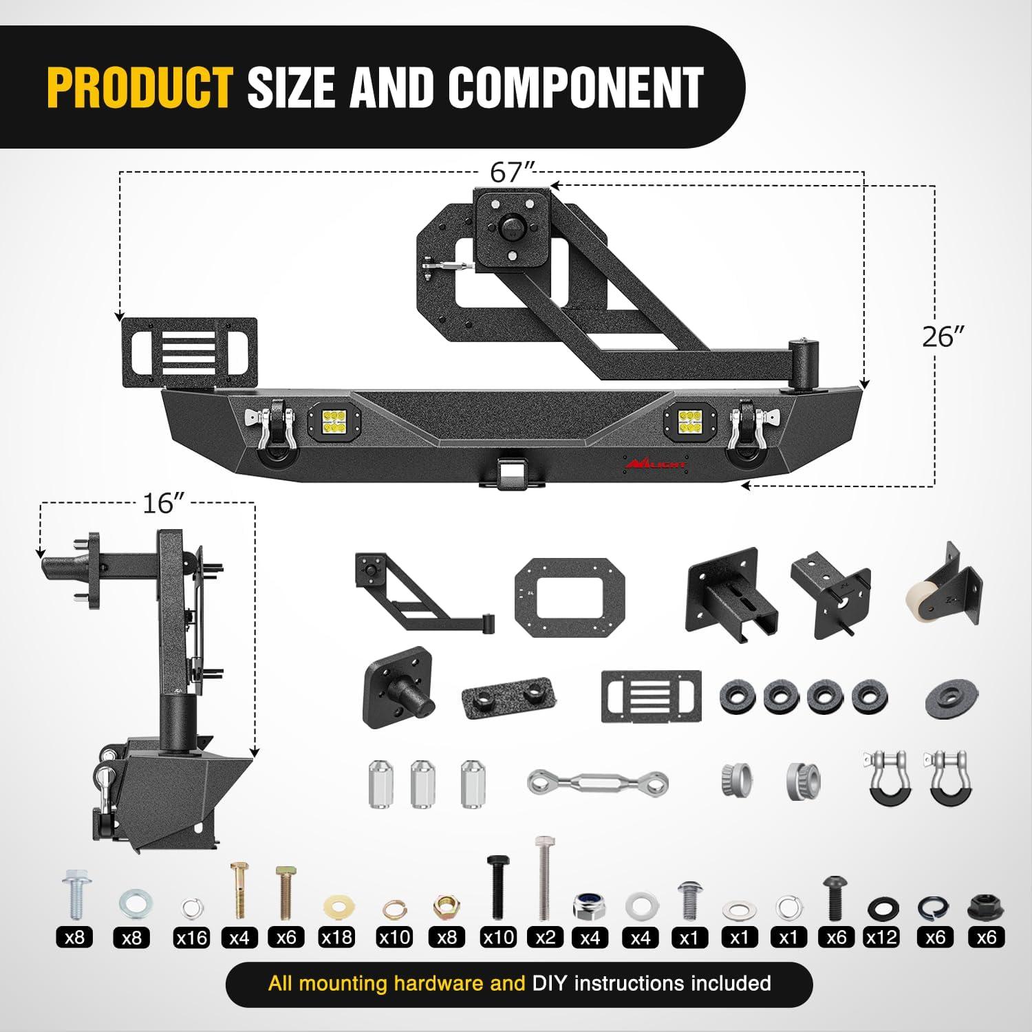 - For 2007-2018 JK/JKU, For 2018-2025 JL/JT, For JEEP, For Jeep Wrangler JK, Mounting Bracket, Rear Front Bumper