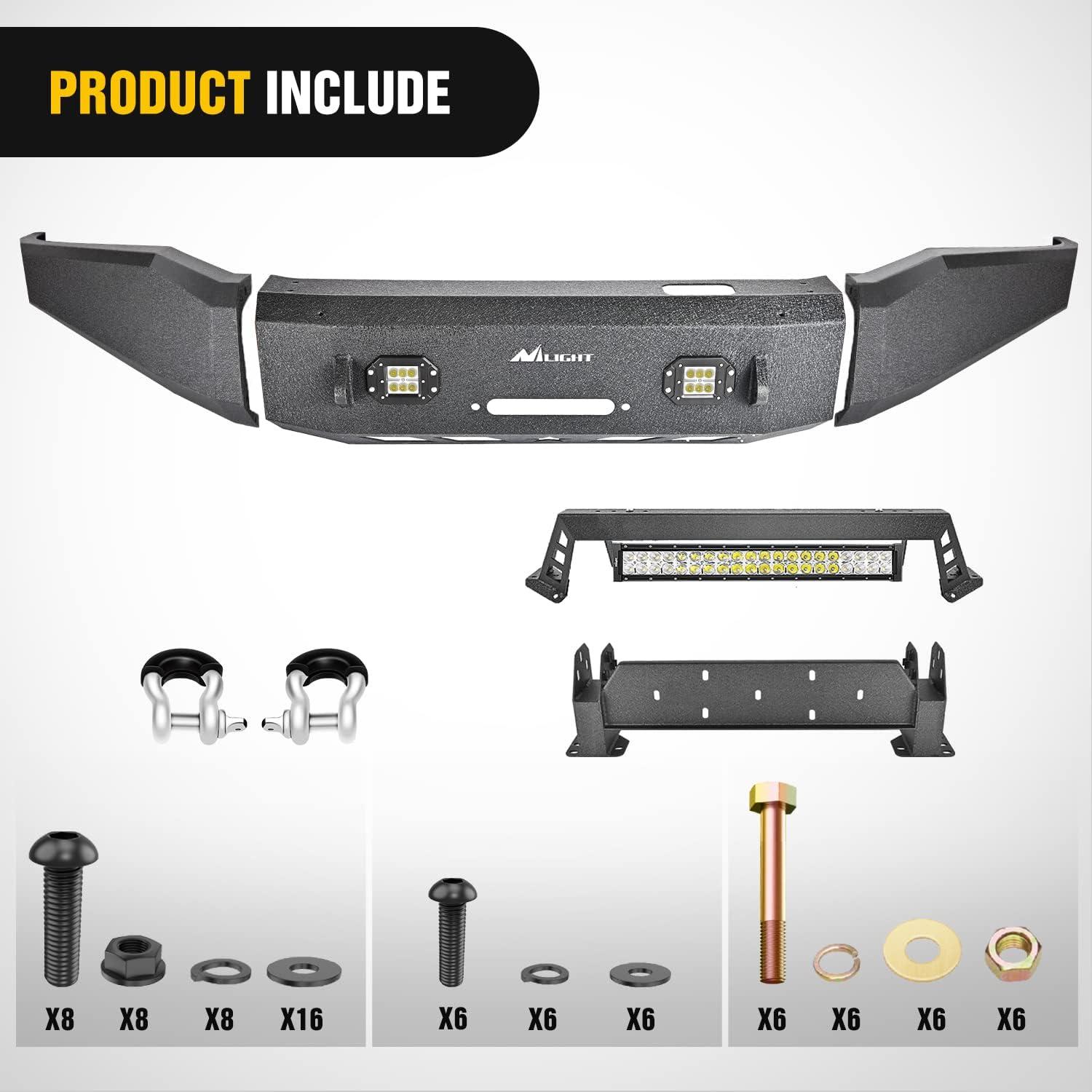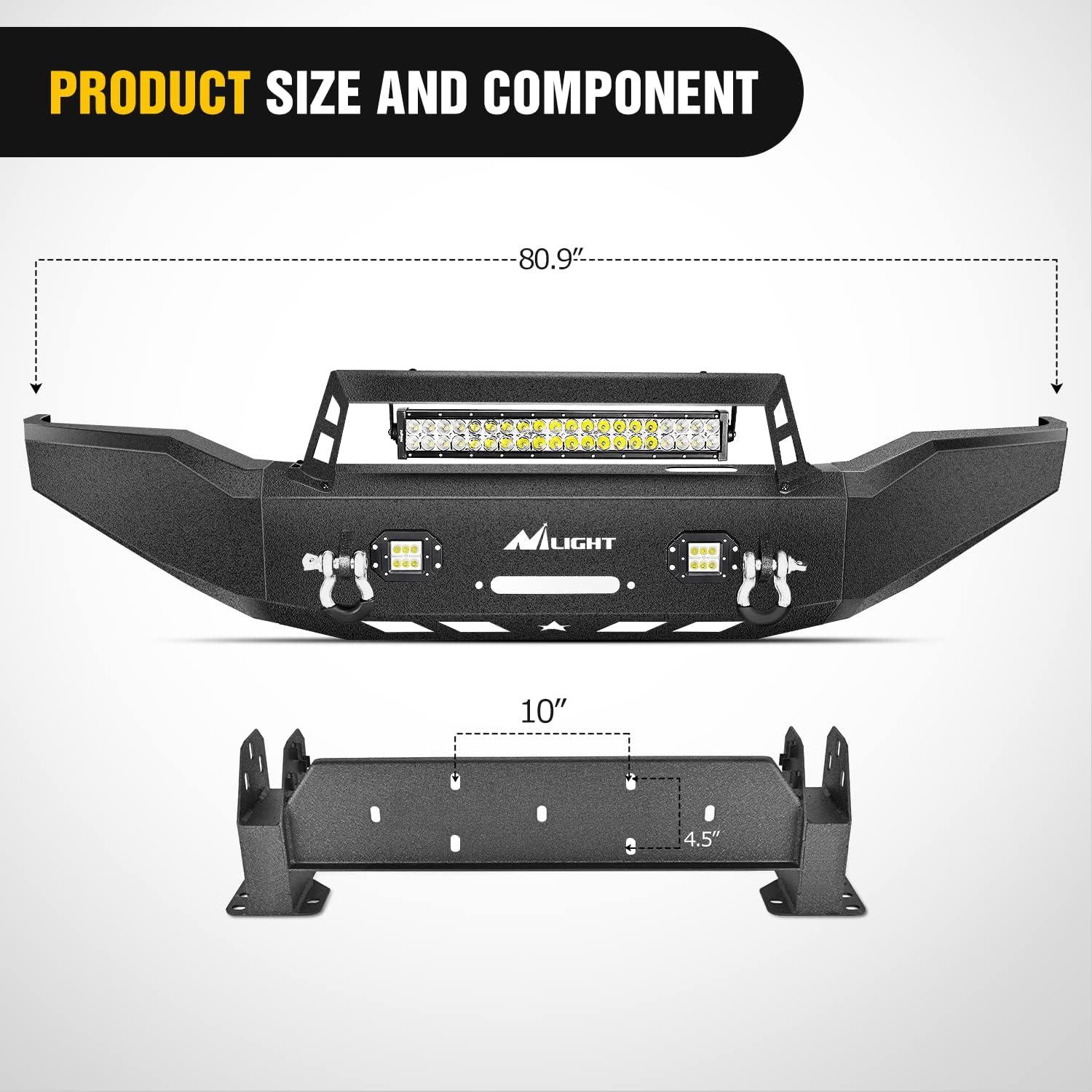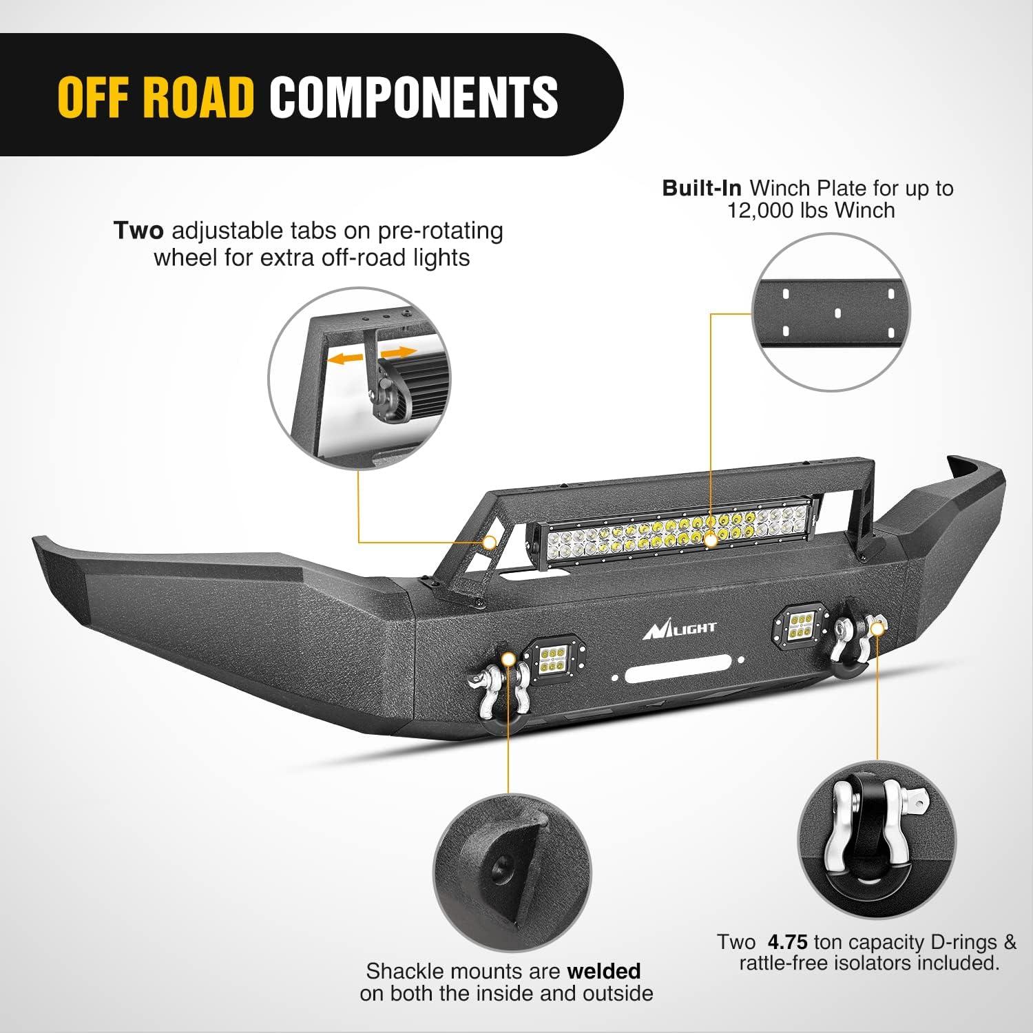 Nilight Front Bumper Full Width Steel Compatible for 2014 2015 2016 2017 2018 2019 2020 2021 Toyota Tundra Pickup Truck with Winch Plate Offroad 120W Light Bar 18w LED Pods