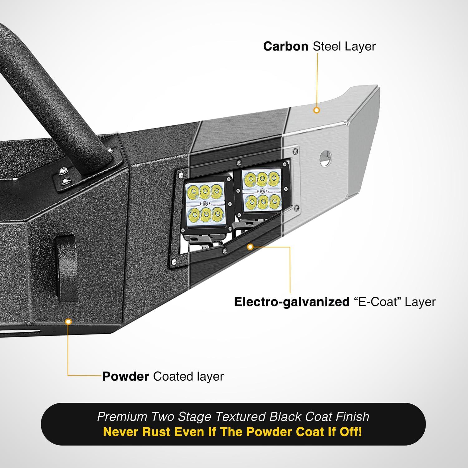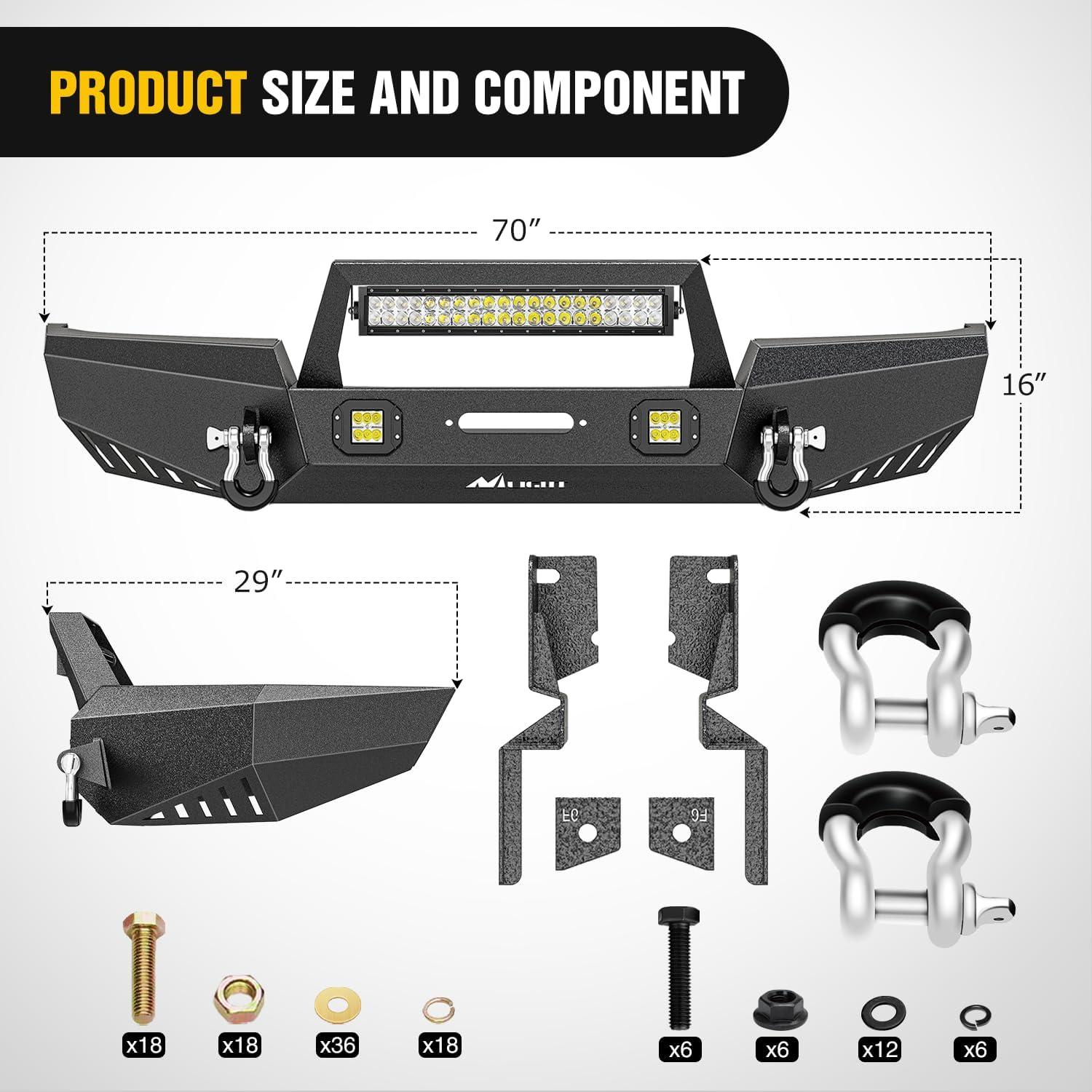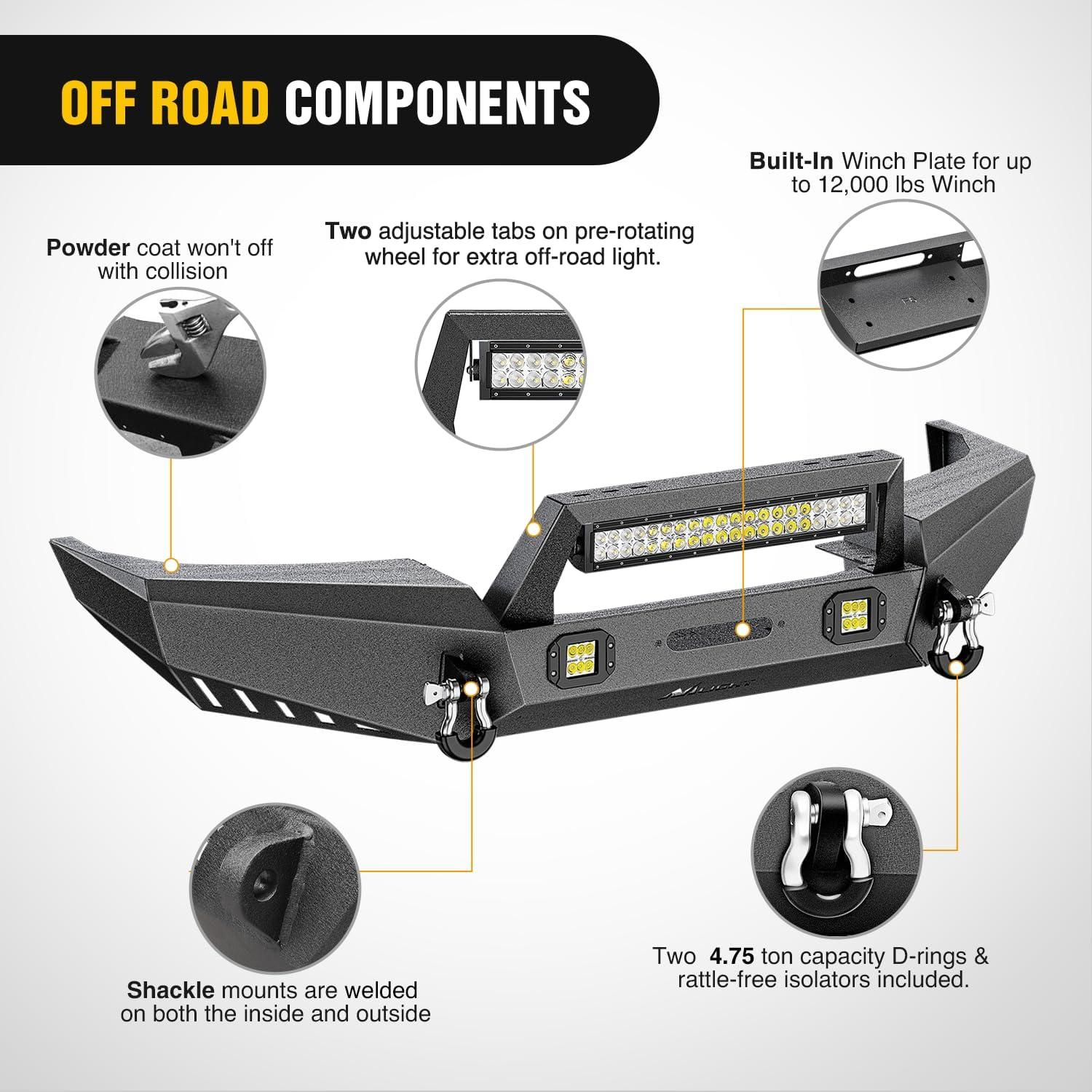 Nilight Front Bumper Full Width Steel Compatible for 2014 2015 2016 2017 2018 2019 2020 2021 Toyota Tundra Pickup Truck with Winch Plate Offroad 120W Light Bar 18w LED Pods