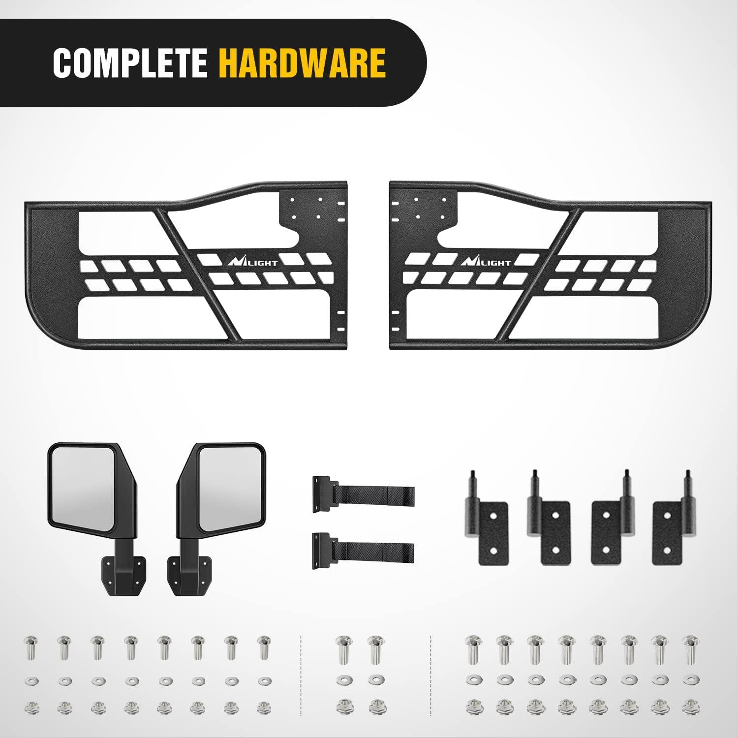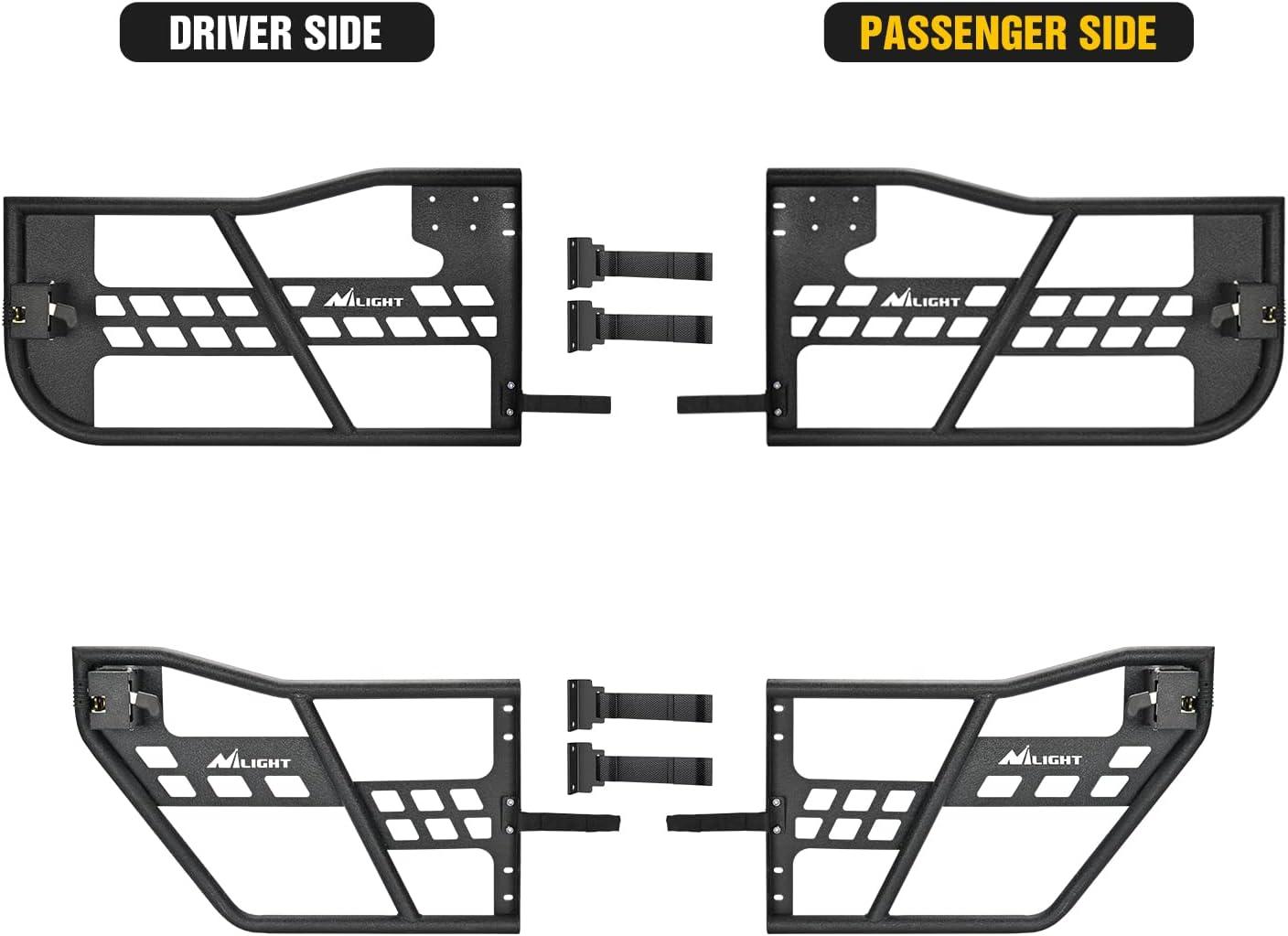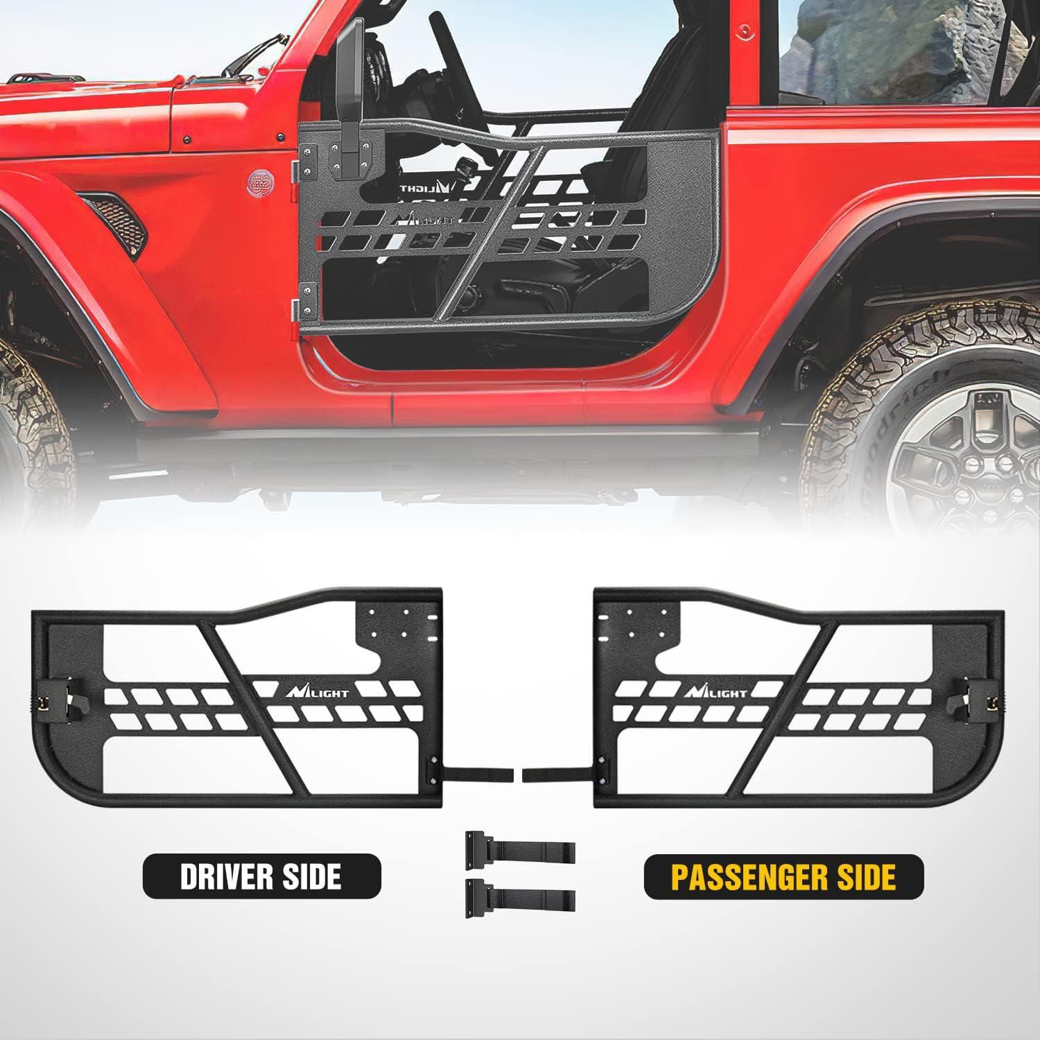 Nilight Off Road Front Rear Tubular Doors with Side View Mirrors Compatible with 2018 2019 2020 2021 2022 2023 Wrangler JL 2020 2021 2022 2023 Gladiator JT 4 Door Only, 2 Years Warranty(2 Front Tubular Doors 2018-2023 JL/JT)
